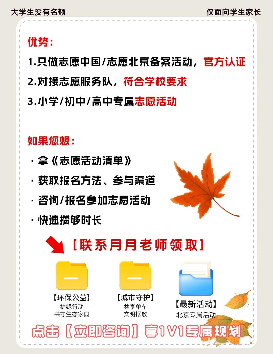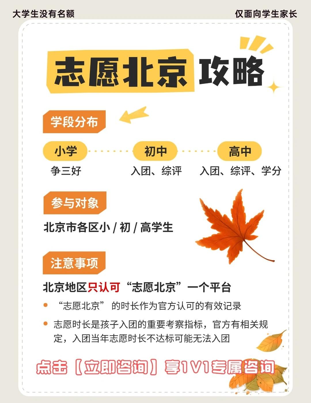 🔥北京家长必看!孩子的 “隐形资产” 北京家长别错过!娃参与【志愿北京】活动,不仅能攒志愿时长,更是孩子未来 “隐形资产”,普娃也能逆袭~ 选志愿北京备案活动才是王道,3 大优势让家长省心: ① 官方认证:只做志愿中国 / 志愿北京备案活动,学校 100% 认可; ② 学段适配:小学、初中、高中有专属活动,精准匹配需求; ③ 服务对接:直接对接正规志愿服务队,不用家长瞎折腾! 别慌!找对方法很重要~专属老师能帮你: ✅ 领《志愿活动清单》,明确参与方向; ✅ 获取报名方法和参与渠道; ✅ 1v1 规划,高效攒够时长! 点击【立即咨询】,联系老师领取~ 志愿时长 志愿北京时长 北京志愿者 志愿者活动 志愿者 志愿活动 志愿北京 志愿者证书 红领巾争章
