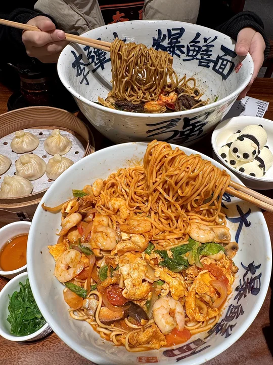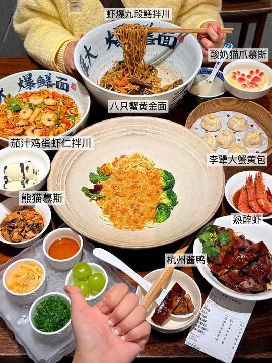 坐穿地铁1号线也要来吃的!!!就在西湖边上!和朋友5天吃了3次……私心舍不得让他太🔥的店! 虾爆九段鳝拌川好好吃啊😭鳝鱼先炸后烧再炒!外酥里嫩🤤黏糊鲜甜的酱汁裹满面条 入口充满嚼劲!不愧是非遗杭帮面!!我们还点了茄汁鸡蛋虾仁拌川~料也很足一口下去真的惊为天人的好吃!蟹黄包、杭州酱鸭、鸡汤河豚狮子头…各种小吃随便点点都不错!建议逛完西湖直奔这家!叫:李犟大📍)