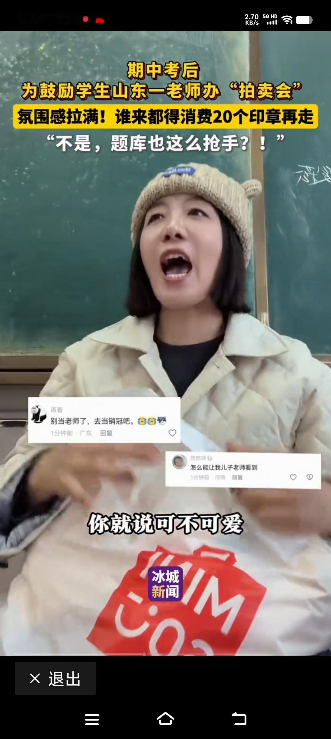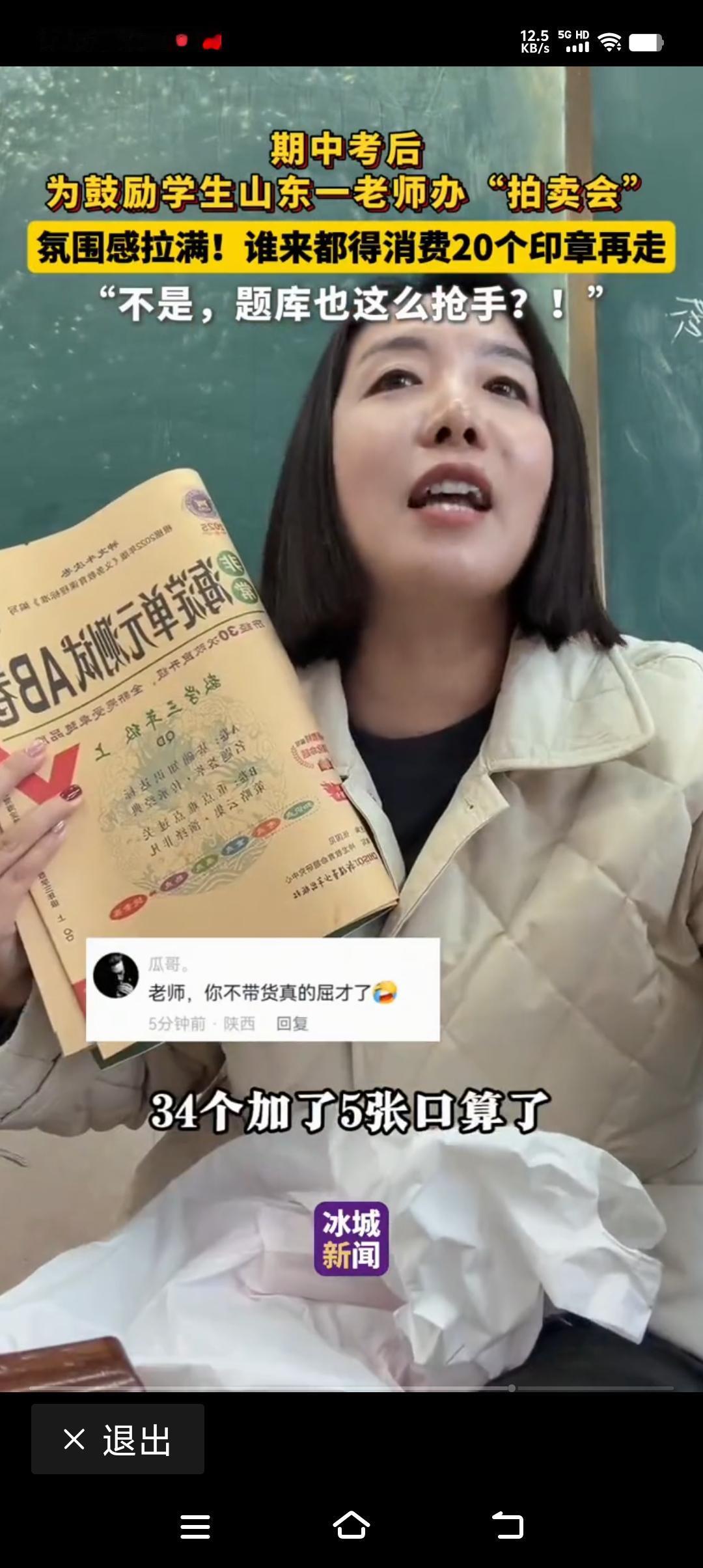 期中考试结束后,老师为了让同学们放松心情,老师当拍卖官搞一场拍卖会! 老师拿润唇膏拍卖,接下来就是变形金刚,还有冬天毛线帽子,题库大考卷! 拍卖现场非常好,同学们争相购买, 还什么特别放松! 这样的活动能够让拉近师生之间的亲和力,孩子们高兴着那! 可是大家担心的是拍到题库的学生,是不是过后有点后悔了,这一张张那大考卷什么时候能够做完啊, 都是后悔,当时自己脑瓜一热拍的这东西! 由此不禁联想到了亲戚家的孙子来奶奶家过过年奶奶送给他红包以外,又送给他了,几本大考卷, 孙子,当时就不高兴了,说奶奶红包我收下了,你送我的大考卷,还是留给你们学生做吧,我可不喜欢这样的礼物,你还以为我是你的学生啊! 看起来当爷爷奶奶的,要套孙子们的喜欢真的还是别提学习的事! 即便是当老师的爷爷奶奶也别自以为是了!