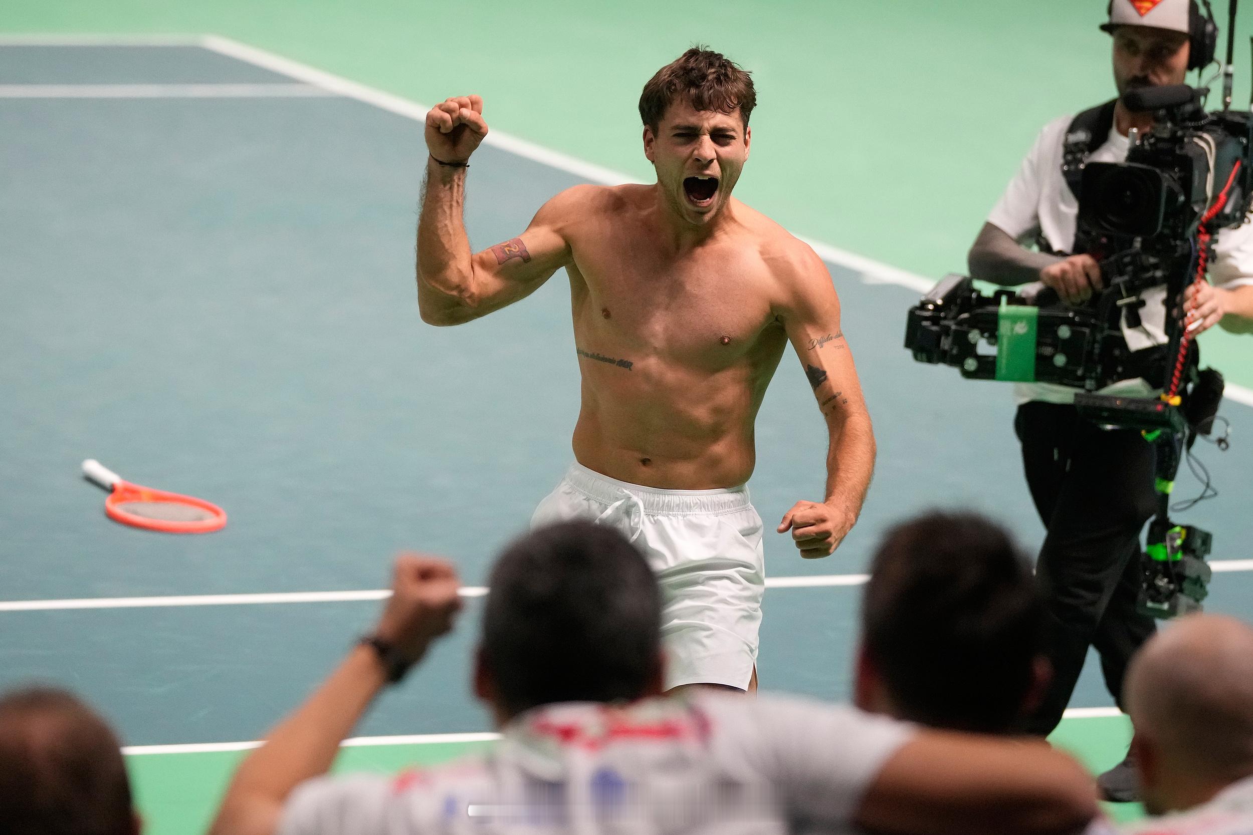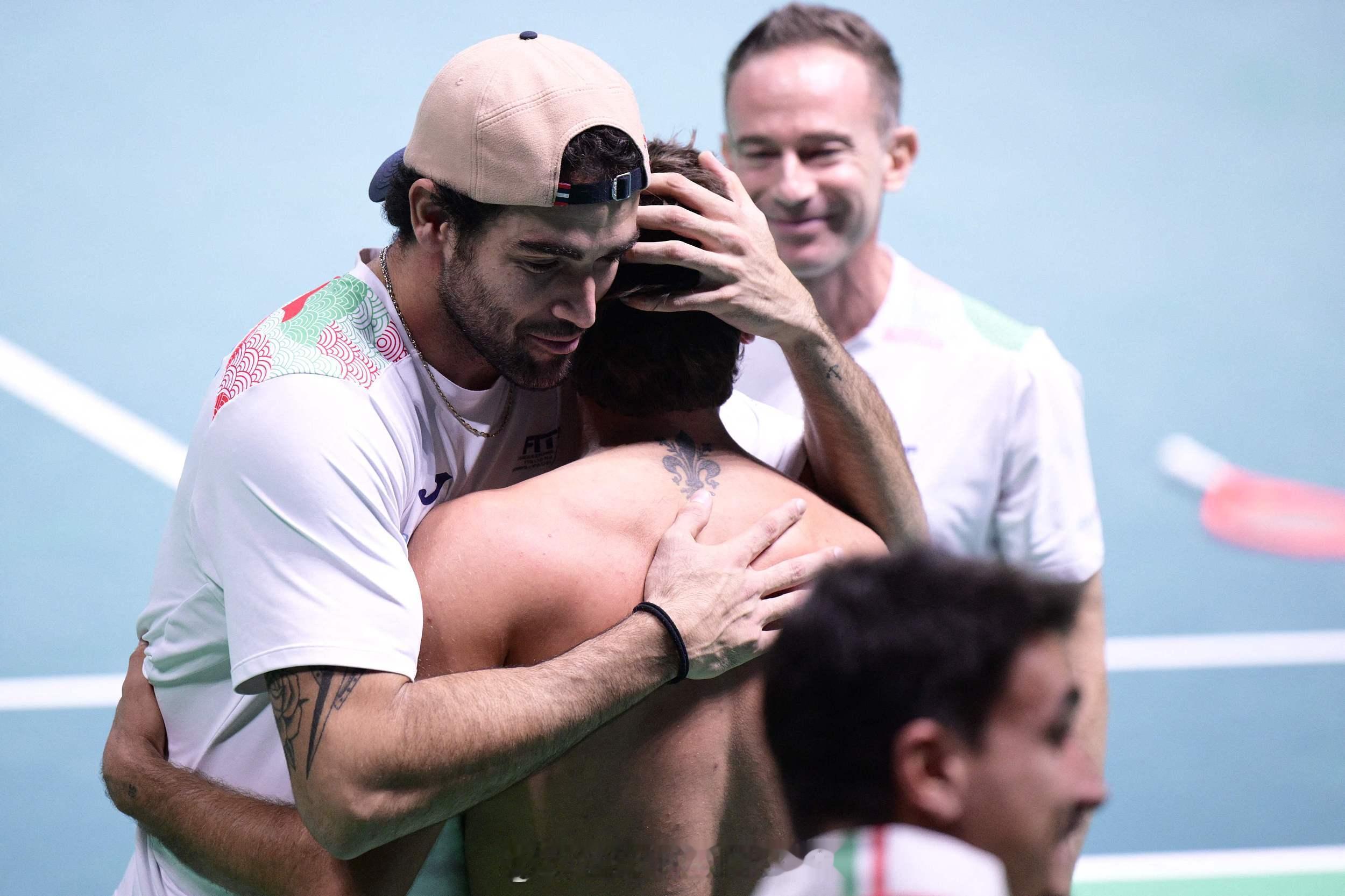 这对于今年的意大利队来说感受尤为深刻,过去两年他们以辛纳为头号主力在戴维斯杯豪取两连冠,而随着辛纳和穆塞蒂两位TOP10大将的相继缺席,年轻球员科博利与中生代名将贝雷蒂尼在今年挑起了为队伍完成“三连冠”的重任。尽管29岁的贝雷蒂尼与23岁的科博利存在6岁的年龄差,但早年共同参加青少年赛事的他们相识已久。“我14岁时去了罗马一家网球俱乐部,当时弗拉维奥(科博利)才8岁,我开始与他的父亲斯特凡诺以及文森佐教练训练,后者在后来成为了我长期合作的教练。”贝雷蒂尼回忆道。“我们就是在那里认识的,俱乐部时常会在周末组织一些小型赛事,我在罗马时参加过很多次。科博利和他的弟弟总在那里打球,我当时还会陪他们一起玩。现在我们能在同一支队伍里并肩作战真的很不可思议,他已经长成一个男子汉了,回想这些年我们之间的情谊,我真的会感到心潮澎湃。”在比赛的焦灼阶段,科博利带着为国家和团队而战的决心始终秉着一口气,赛后他表示贝雷蒂尼的精神力量深深影响着他:“对我来说团队里的每一位伙伴都很重要,我们是一支凝聚力很强的队伍,我们一直努力为彼此付出。但马泰奥(贝雷蒂尼)对我而言尤为特别、至关重要,他就像我的兄弟一样,今天这场比赛他给了我太多支持,最终取得胜利这份‘兄弟情’功不可没。”今年上半年,科博利遭遇了一波巡回赛八连败,而正是贝雷蒂尼的些许建议彻底改变了他的处境。“迈阿密大师赛的时候他状态低迷,我觉得或许我能和情绪低落的他说些什么,因为我也曾有过这样的困境,也曾经历过赢不了比赛的日子。”“我对他说,你现在是世界排名前30的选手,你的水平早就达到那个高度,只需集中训练两周,情况就会好转的,别担心。”在那之后,科博利在ATP250布加勒斯特站赢得职业生涯首冠,又斩获ATP500汉堡站的冠军,温网他迎来职业生涯重大突破——首度跻身大满贯八强,世界排名首度突破TOP20。“因为年纪稍长一些,经历得更多、看得更透彻,我以前也常常从比我年长的选手那里得到这样的建议。当然,每个人的成长道路都不同,但很多时候情况是共通的。”截至目前,科博利与贝雷蒂尼本周在戴维斯杯总决赛仍然保持着不败战绩,北京时间今晚22:00他们将共同带领意大利队冲击冠军。若能顺利击败西班牙队问鼎冠军,意大利队将成为自1971年美国队之后首支实现三连冠霸业的队伍。