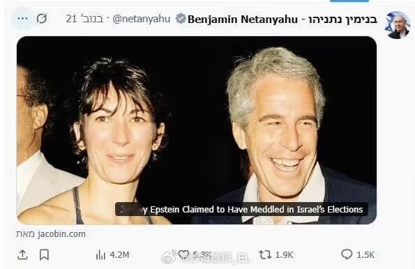 内塔尼亚胡干的一件蠢事,他用官方账号转发了《雅各宾》杂志的一篇文章,内容是爱泼斯