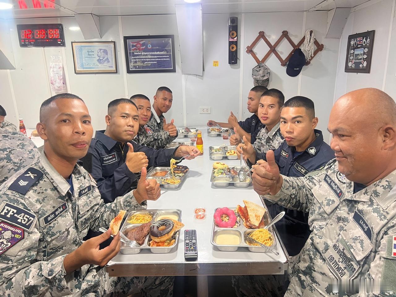 泰国海军457“甲布里”号护卫舰在泰国海军日提供的加餐,泰舰伙食相比泰国陆军还是相当可以的。“甲布里”号是中国造053HT型护卫舰三号舰,1992年服役,舰龄已经33年了。如果都能有这么好的伙食,泰国青年害怕被征兵吗?