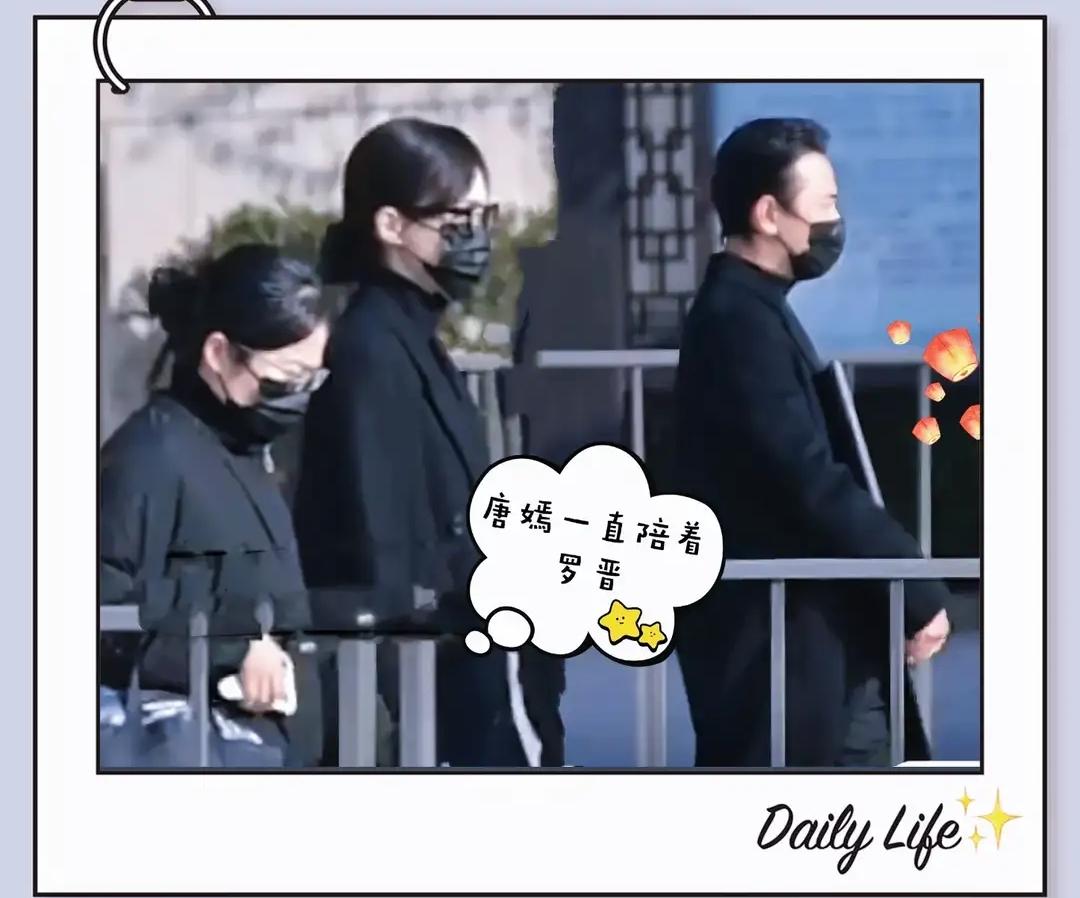 罗晋手捧父亲遗像与唐嫣说悄悄话,两个人的眼睛都哭肿了,神情憔悴。 唐嫣和罗晋手臂上的孝带是一样的,也终于打破了两人离婚的谣言。唐嫣的爸爸也有被拍到参加罗晋父亲的葬礼。 葬礼结束后唐嫣和罗晋乘同一辆车离开,圈内不少好友都去了,明道特意从台北赶到北京,也足以说明唐嫣和罗晋的好人缘。