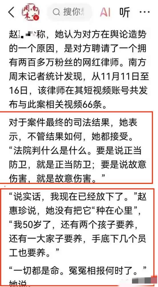 赵某珲的转换与年初有天壤之别,以前性格强势,面对申家的协商请求蛮横无理,脾气暴躁。当派出所工作人员打电话调解时还怒怼:“你们就等着接打架的电话吧!” 不就是条狗么,况且申家男孩被狗咬伤在先。狗咬人了不是受点疼痛和花两个小钱那么简单,一旦患上狂犬病后果不堪设想!赵某珲不想着冷静处理问题,硬要带领亲戚讨要说法,砸玻璃、踹门、一脚踢开大门。这早已把理智和冷静抛置脑后,而是赤裸裸的挑战住宅安全的底线。结果付出了惨痛代价。时隔十个月,赵某晖浪子回头金不换,清醒了很多,面对记者语重心长地说:“所有仇恨都放下了,法院怎么判都接受。”还表示,自己两个孩子要养,一大家子人要养,手底下几名员工要养。还说,一切都是命,冤冤相报何时了。