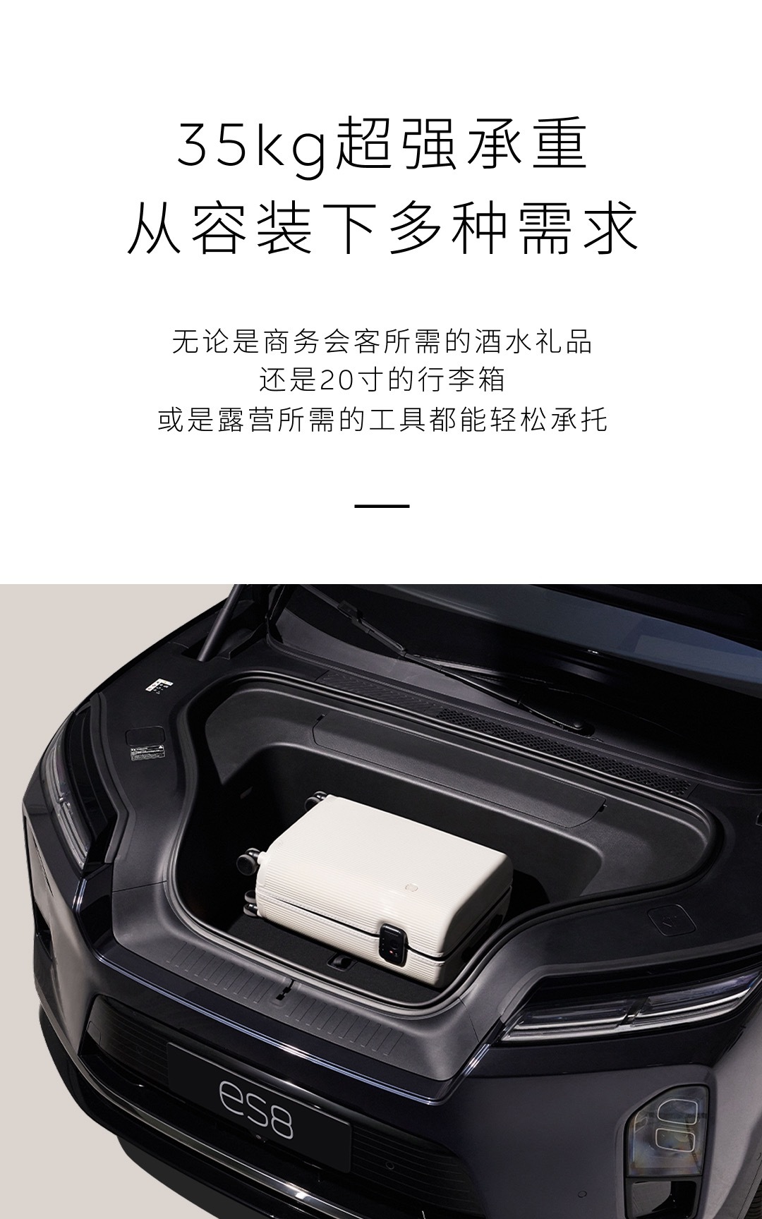 ES8 又上新配件了,这个前备箱是真的大,搞个下沉分隔仓了,还能放下个20英寸行李箱…准备搞个,给大家开个箱看看