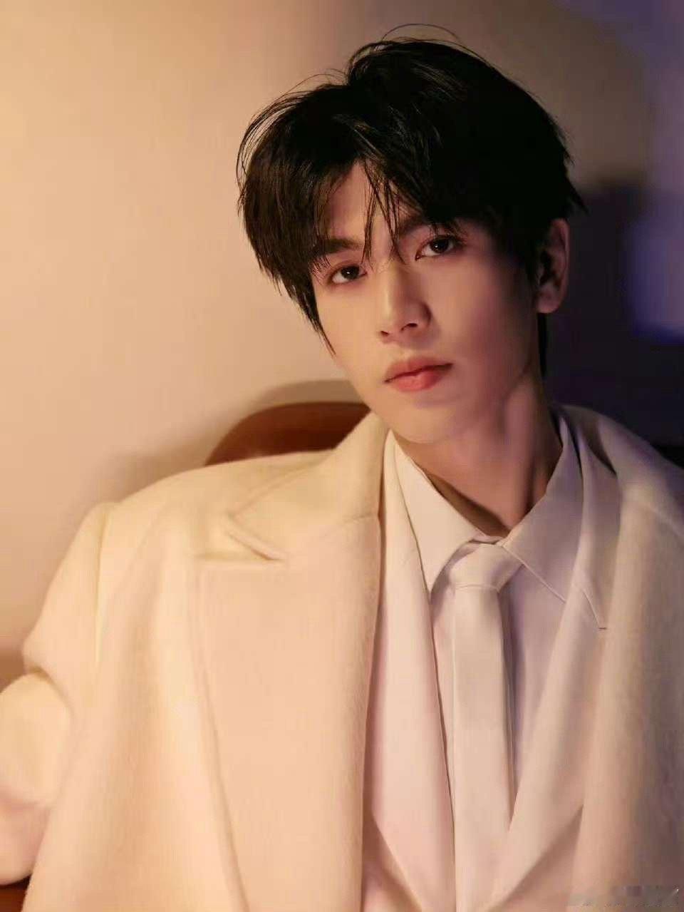 张凌赫暖光西装照,奶白大衣,