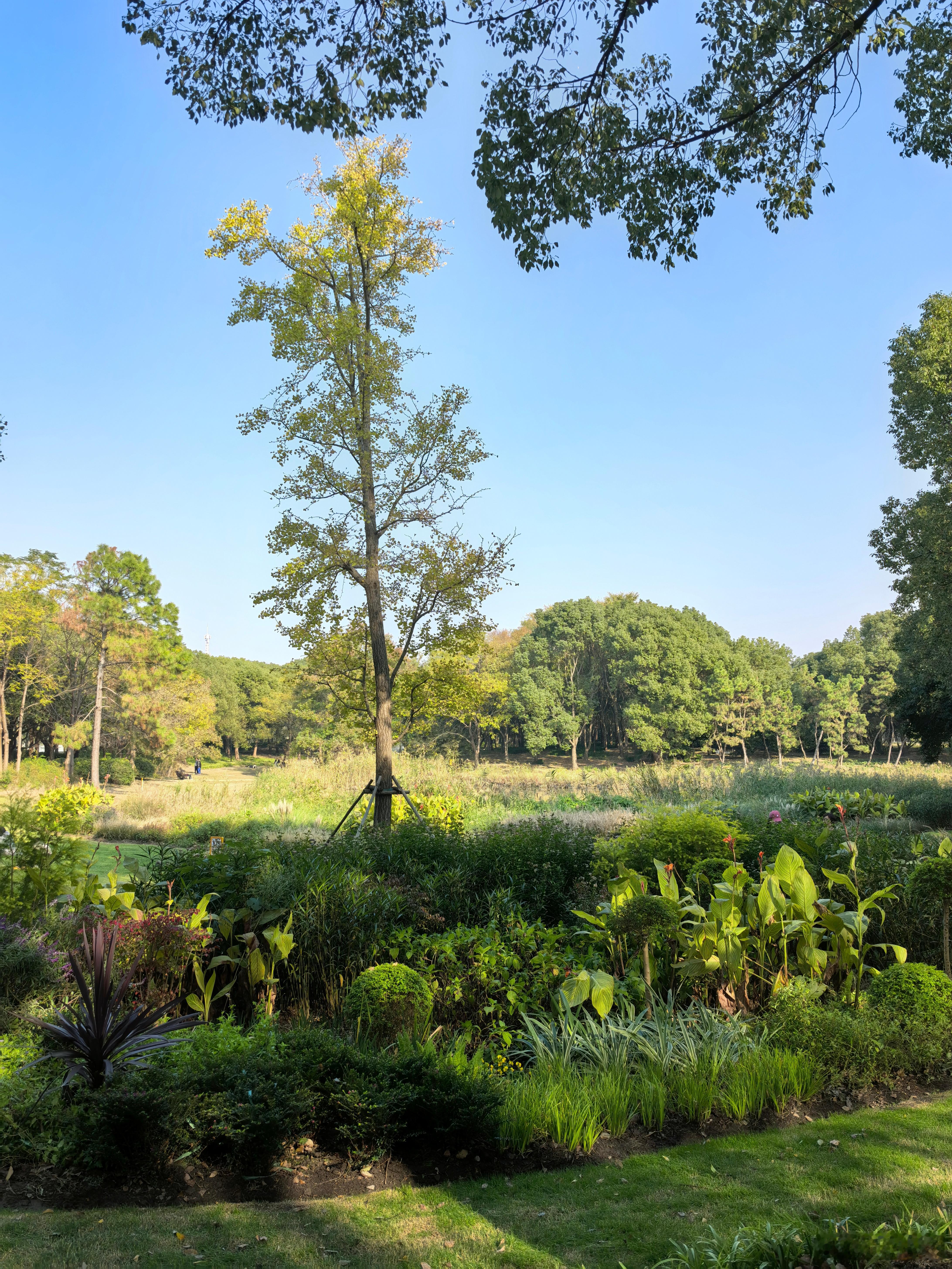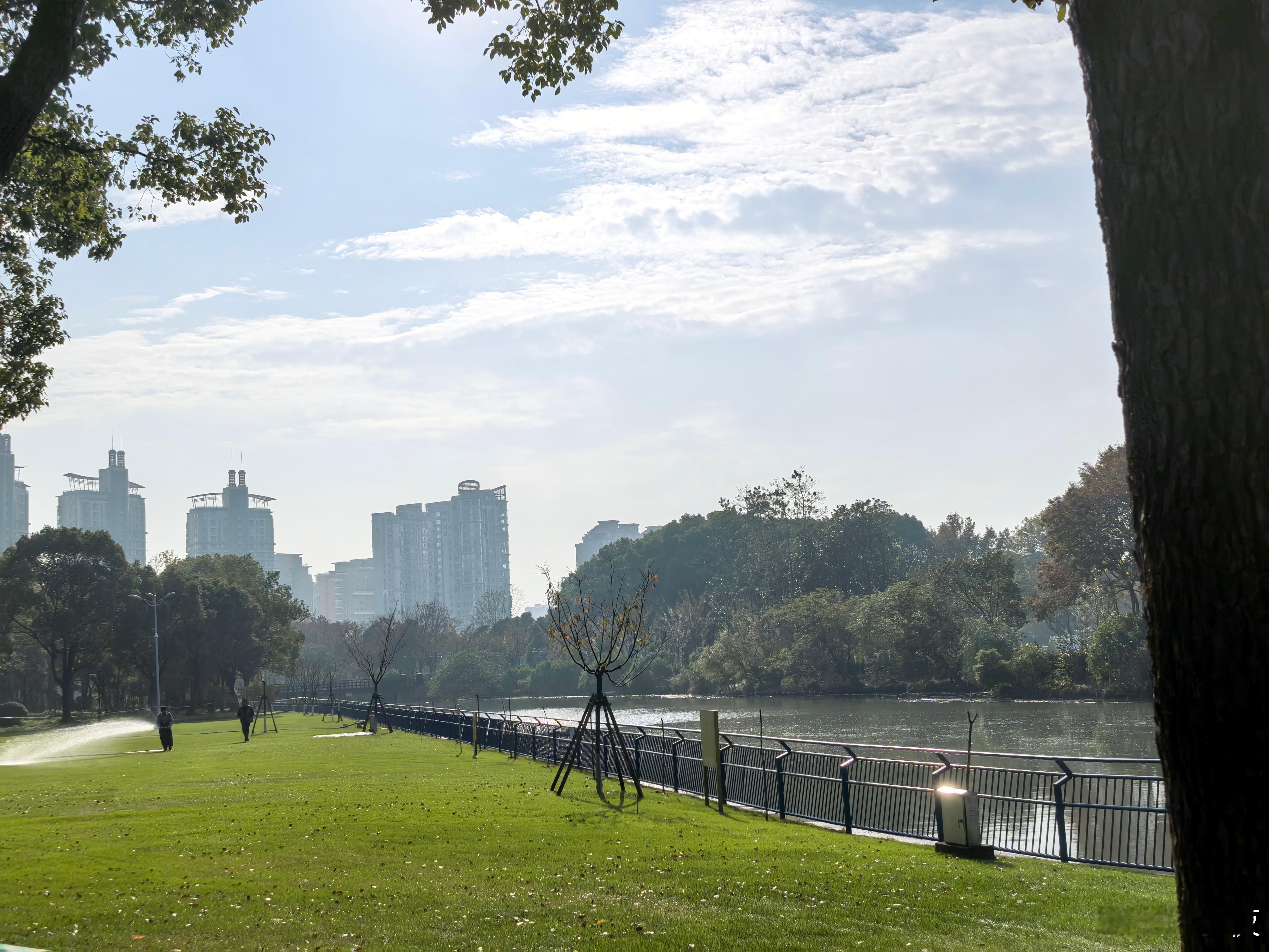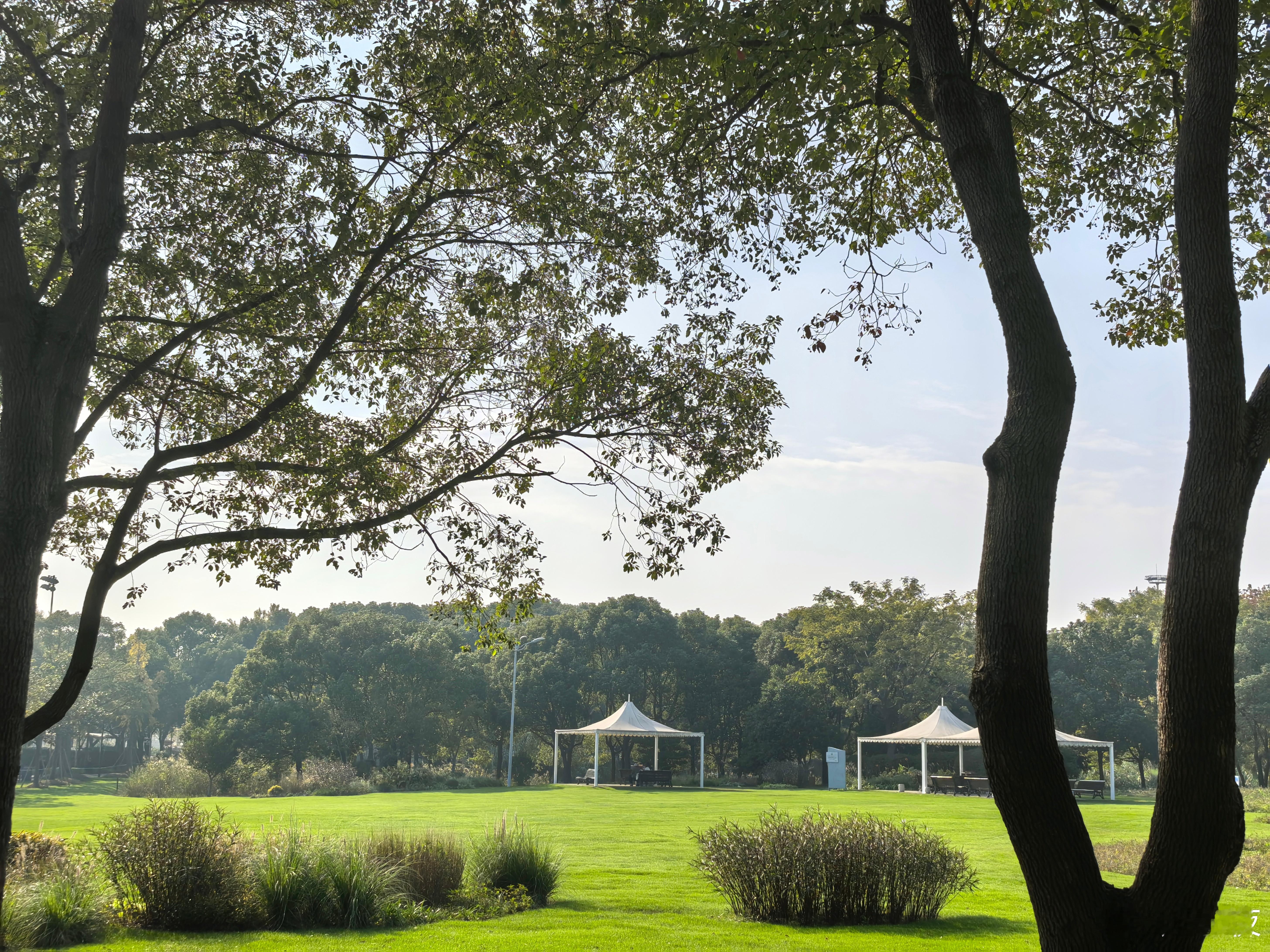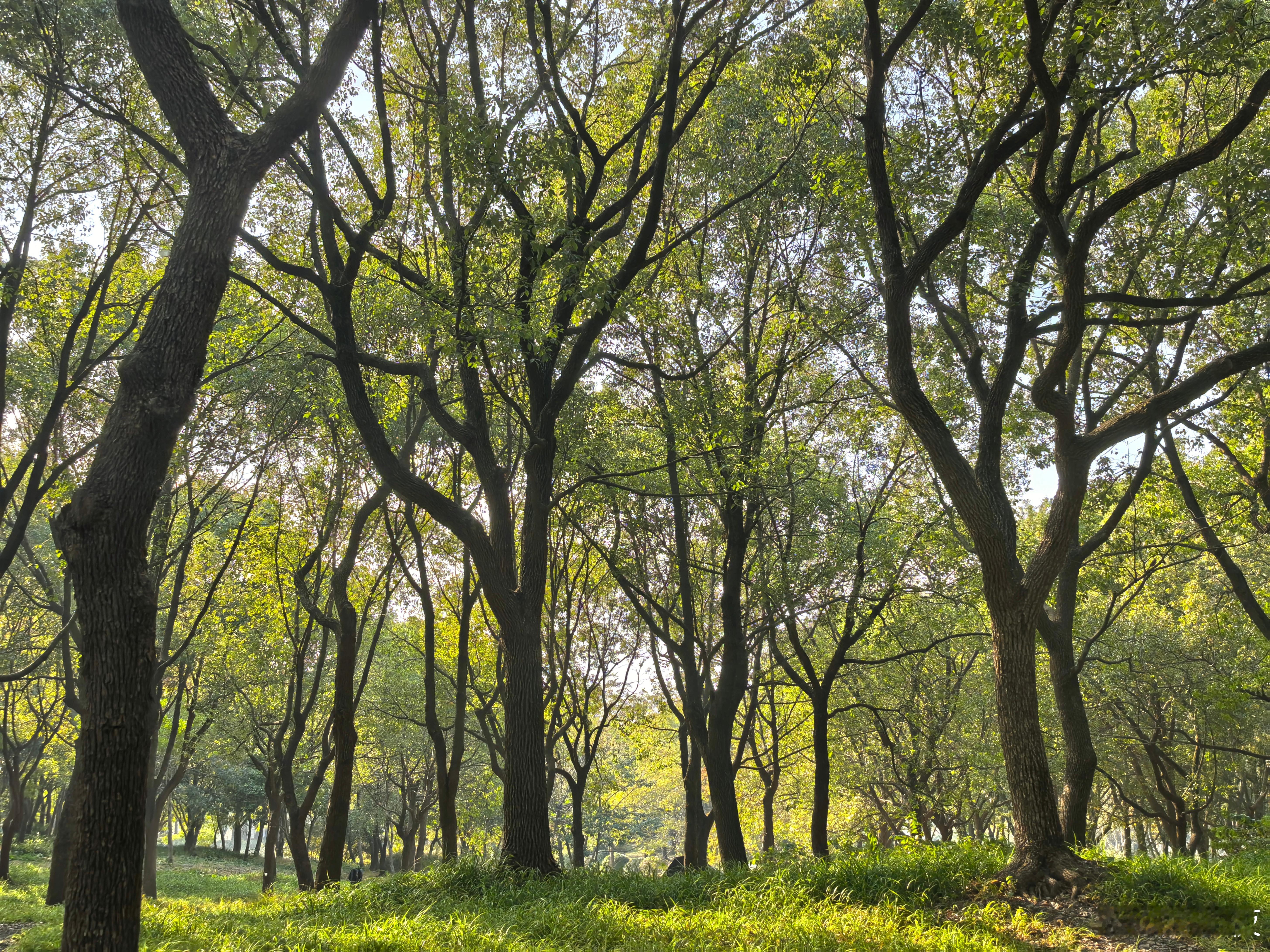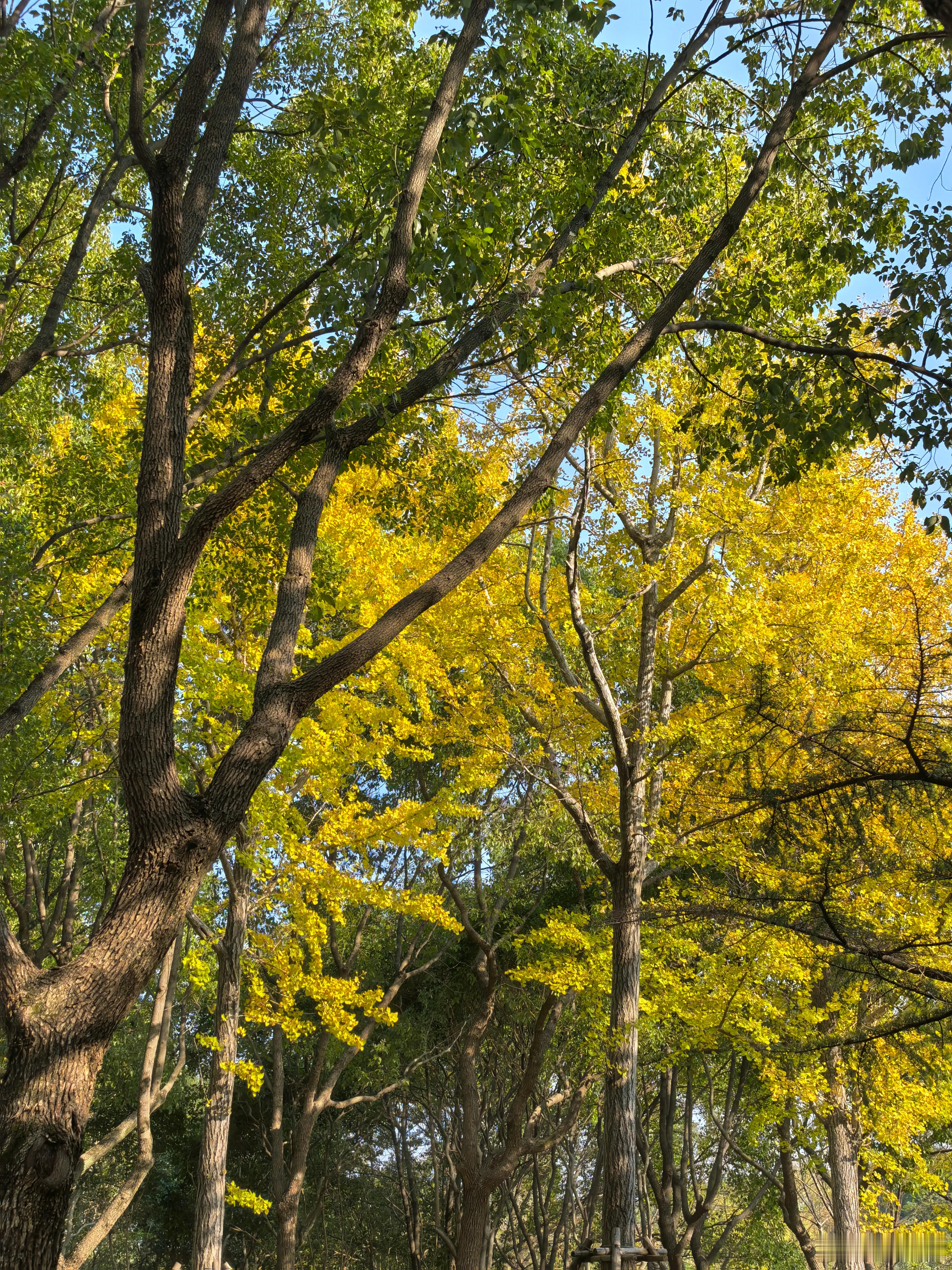 抓紧呼吸秋天的阳光、绿色、黄色。