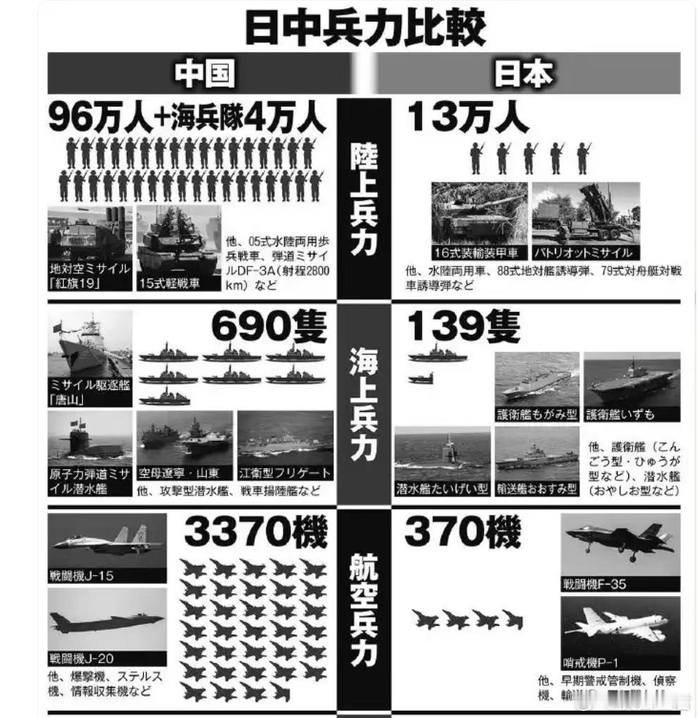 日本早已期待和解放军再打一仗!日军前参谋长:不考虑弹道导弹,7天全歼中国舰队近日,一段话在网络上广泛流传,那就是日本自卫队前参谋长、前自卫队陆将福山隆表示:不考虑弹道导弹,7天全歼中国舰队!这段话其实并不是最近说的,而是在2014年说的,当时日本购岛闹剧还没有彻底平息。日本自卫队前总参谋长夏川和也与另外两名海上自卫队前高级将领冈俊彦、保井信治出版《日中会爆发海战吗﹕中国进入海洋步伐加大和日本的对应之策》一书。在书中,夏川和也表示,如果中国主动和日本发生军事冲突,那么所有的一切都将成为日本海上自卫队和美国绝好的攻击目标。也就是说,早在十几年前,日本就已经期待和解放军再打一仗,只要中国主动对日作战,那么日本就有机会消灭中国舰队,从而再度成为亚洲第一大国,摆脱战败国的身份。而也正是这本书出版之时,日本陆上自卫队前任陆将福山隆也接受了采访,发表了以下言论:“如果不考虑弹道导弹,我们一周就能歼灭全部中国舰队。”他认为日本海上自卫队训练熟练度一流,强过中国,加上马上会引入F-35战斗机,潜水艇也会再增加两到三艘,还在开发巡航导弹、空对空导弹等。这段话除了暴露了日本军国主义的野心之外,夏川和也和福山隆虽然有些膨胀,但是在2014年这个时间节点来看。当时的中国虽然实力已经超过了日本,但是还并没有全方位压制日本的能力,再加上有美国的驻军,他们自信能够击败美国。不过中国军力发展实在是太快了,中国导弹力量、军舰力量以及战机的全速发展,正是从2015年-现在。在2015年的时候,中国6艘052C全部服役,加上14年服役的052D,中国海军的盾舰规模首次超过日本,同时标志着中国舰艇的技术水平和建造能力也超过了日本!加上批量服役的054A级护卫舰,中国海军在15年的水面舰艇实力已经压住日本一头。水下核潜艇,基洛基,039系列在质量和数量上也压制日本潜艇。所以16年,老美借所谓南海仲裁亲自下场,但是最后老美怂了,那时老美最后的机会我们可以仔细算一下,从2015年开始,中国军力是实现了怎么样的飞越:短短10年间,中国共服役了4批052D、共39艘,8艘055也服役了、而且中国还服役了4艘075;二是除了服役大量的039潜艇之外,093B战术核潜艇服役;三是鹰击18、鹰击20、鹰击21以及东风26、东风17等一批拥有非对称优势的导弹服役,大家不要小看了鹰击18,鹰击18作为全球首款亚超结合的舰载巡航导弹,可以说是中国首次在巡航导弹领域做到了领先全球,有着标志性意义。四是轰6K部署空射巡航导弹,而现在中国轰6K都可以挂载空基弹道导弹了,具备对美本土打击的能力。五是中国歼16、歼20的大批量服役而且中国造军舰的速度,现在仍然在不断加速,在2025-2035年这段时间来看,中国会实现003型航母的量产、新批次055的服役、076的批次化建造等等。那日本有多少艘盾舰,只有8艘,最多加上4艘直升机航母,可以说,就在这短短10年的时间里,中国不仅实现了对日本的全面碾压,甚至在多领域超过了美国。所以我们可以仔细看这段采访,夏川和也就明确提到了,如果时间越久,那么对日本就越不利:“如果冲突发生在10年后,日本可能很危险,因为中国素质正在赶上。日本无法扩充军备,日本领土、人口规模也远小于中国。未来日本主要依靠日美安保和国际社会来胁制中国。中国造了航母,以后可能最少有3艘,的确对我们是巨大威胁。”所以夏川和也认为,日本日本购岛风波时,是日本海自最后的机会,如果错过这次,日本很难实现彻底击败中国的目的,不得不说夏川和也还是有一定战略眼光的。但是现在日本已经彻底没有机会了,即使加上美国,在西太想要战胜中国,也是一个不可能实现的目标。不过,日本到现在为止还没有放弃成为亚洲第一大国的美梦,明治维新后,日本通过“脱亚入欧”迅速跻身帝国主义列强之列。在这一过程中,其国力膨胀与思想嬗变同步发生,逐渐形成了一种以自我为核心、兼具侵略性与使命感的亚洲观。这套观念体系在本质上可被视为美国门罗主义的东亚变体与异化——它效仿“美洲是美洲人的美洲”这一口号,提出“亚洲是亚洲人的亚洲”,但其内核却偷换为“亚洲是日本的亚洲”。日本自命为区域的天然领导者与保护者,而将其他亚洲国家与民族视为其附庸与奴仆,构建了一套严密的“中心-边缘”等级秩序。而这一思想的形成与日本特有的天皇制度和神道信仰密不可分。天皇作为“万世一系”的象征,不仅是国家统一的标志,更在意识形态上被塑造为神圣不可侵犯的存在。神道教则进一步强化了这一叙事,将天皇统治与民族命运紧密相连,构建出一种日本民族具有特殊使命的集体认知,那就是日本是要成为亚洲的主人,是亚洲第一国。而这种思想在日本社会深入人心,并最终发展为军国主义的国家意志,这也是为什么当前军国主义为什么会在日本复燃的原因。日本自始至终都认为,并不是败在了中国的手上,要不是美国的介入,今天日本就已经是亚洲的主人。正是这种想法,伴随着日本战后几十年。而中国在日本战败后,并没有对日本进行彻底清算。总认为,日本会自我反省。但一个拿起屠刀屠杀别人的人,自己家却没有尝到被复仇的滋味,他们必然会再次杀人。所以日本不甘心,从而战结束以后,日本就一直在想要摆脱战败国的身份,而在当今日本经济不断恶化的当下,日本明白,要是