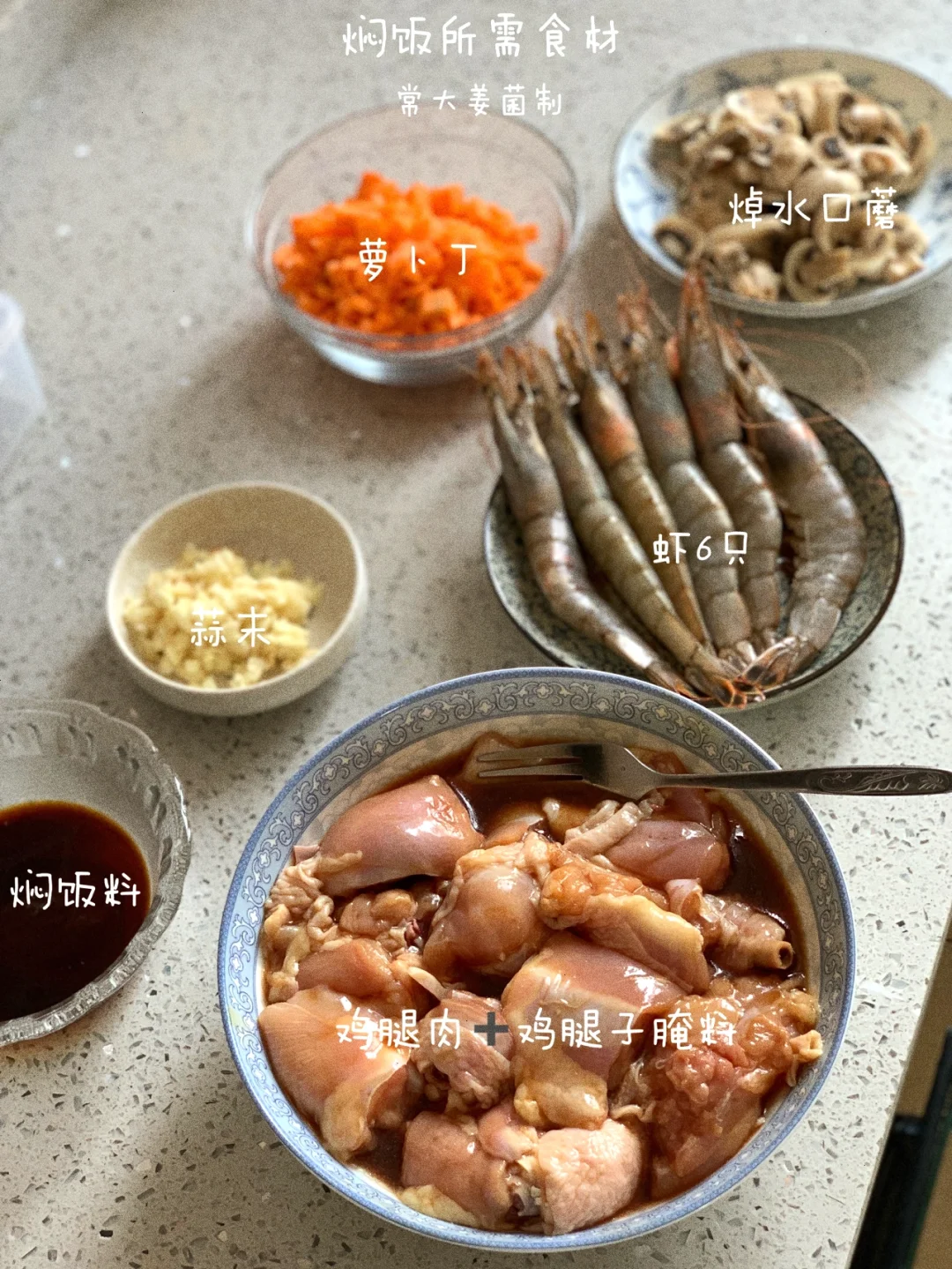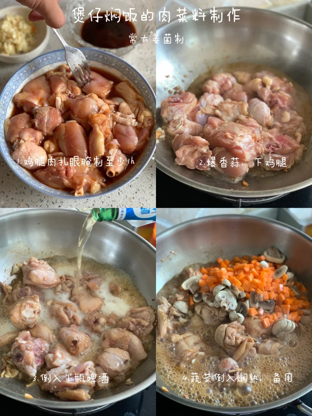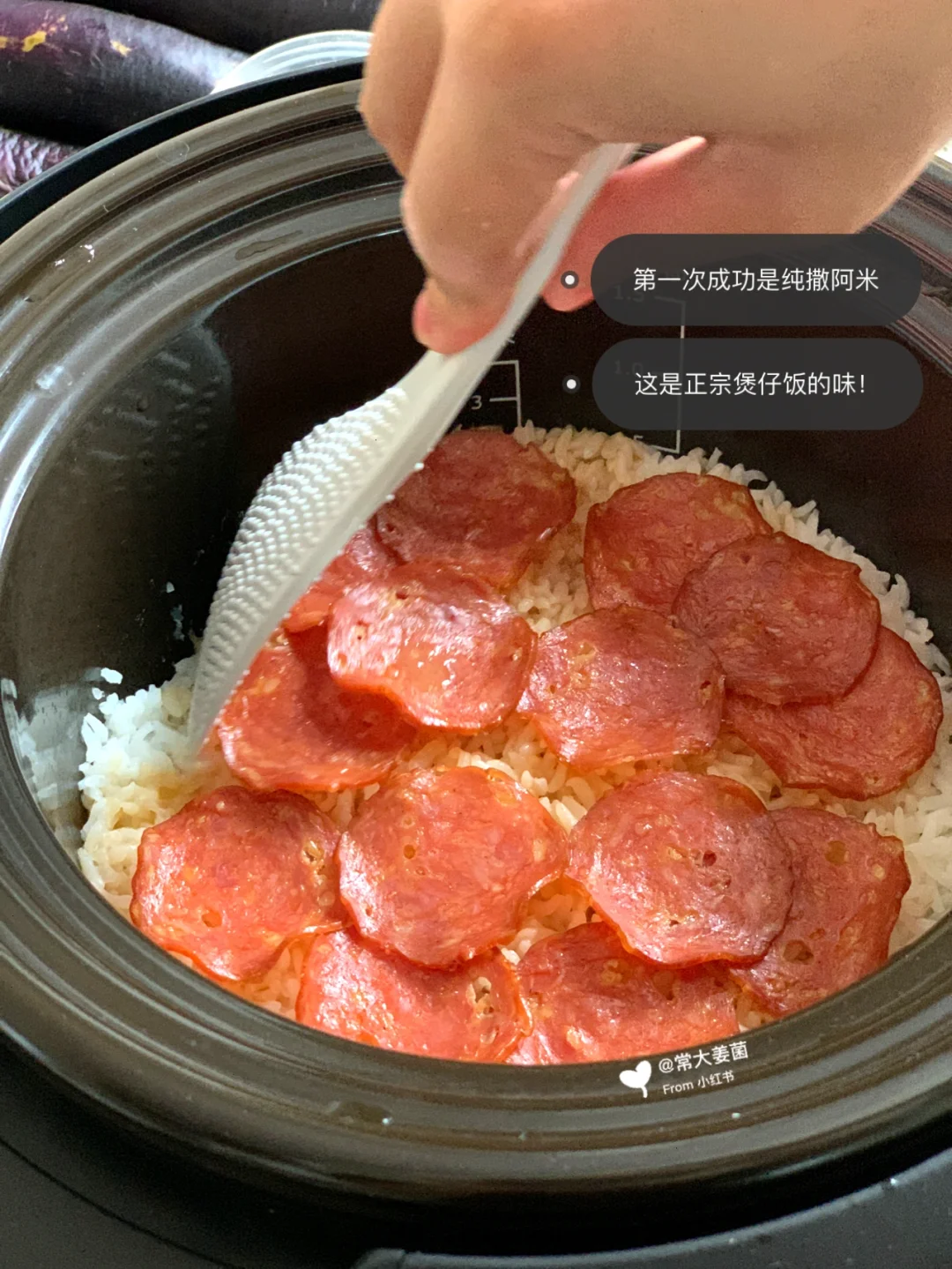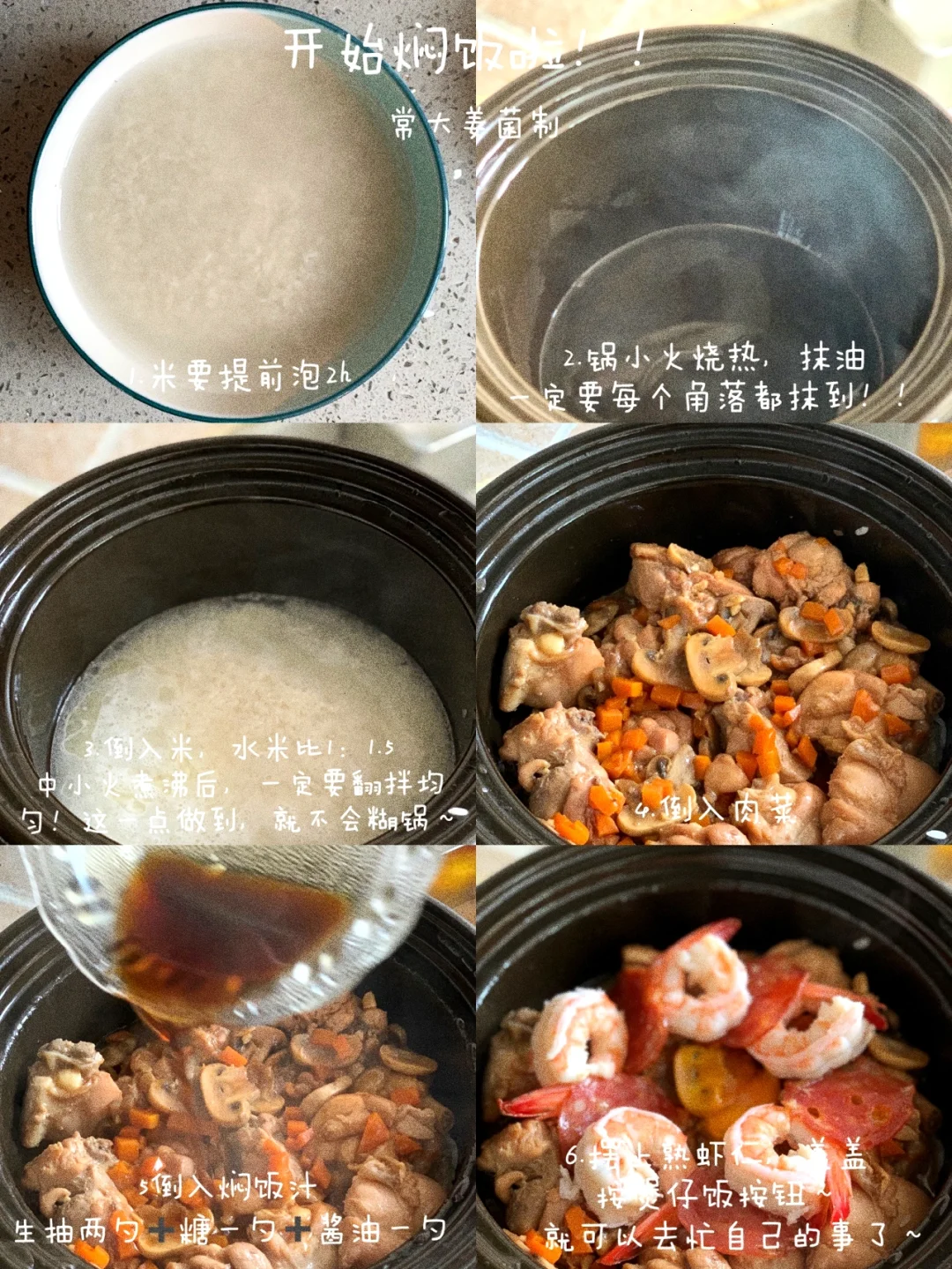 ④把所有肉和蔬菜覆盖在米饭上之后我就放在sezze陶瓷内胆电饭煲里开启👉🏻煲仔饭模式~最后几分钟浇上酱油,再焖5分钟就完成了!