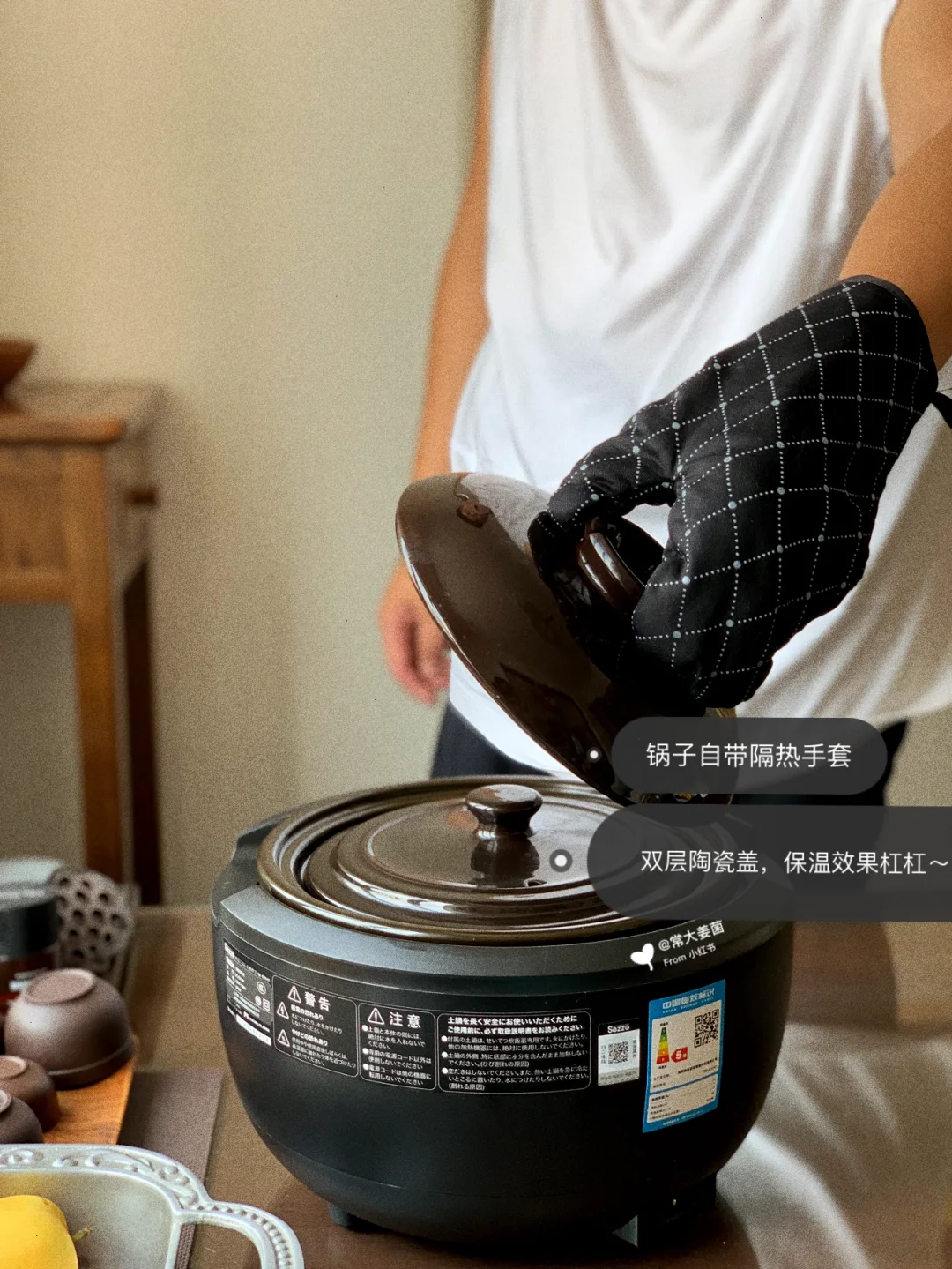 这只来自日本的西哲sezz土锅内胆是日本国宝级材质伊贺烧;锅身模拟柴火煮饭360度立体加热,受热均匀后的米饭愈加Q弹饱满;煲、炖、焖、煮样样💯
