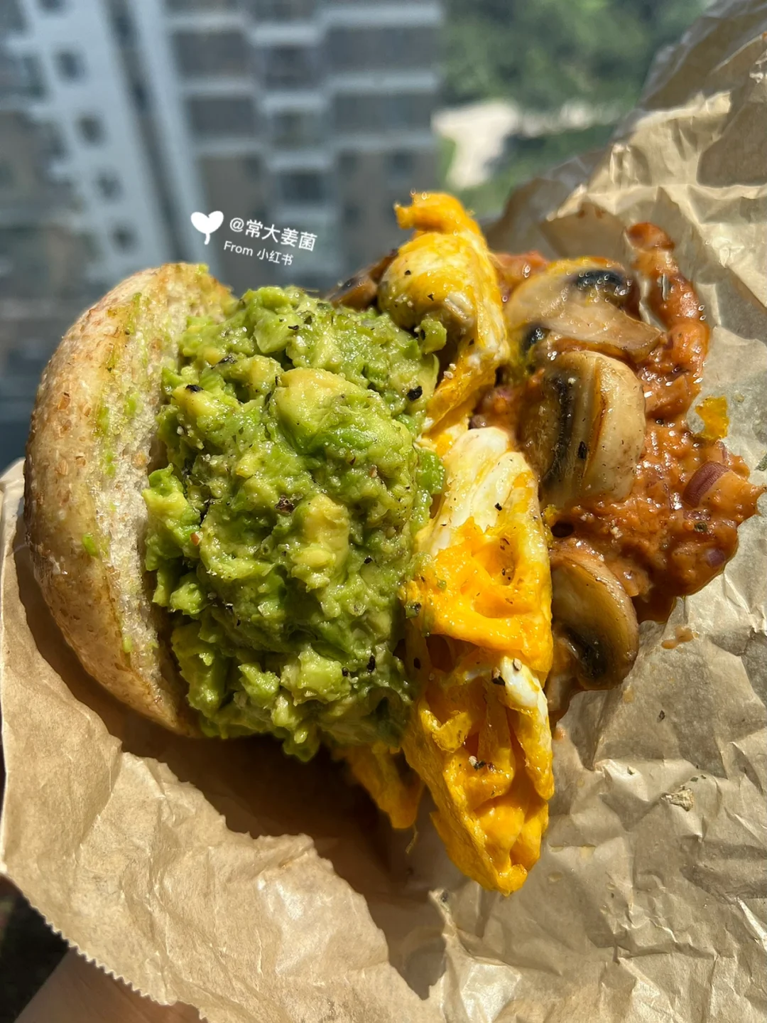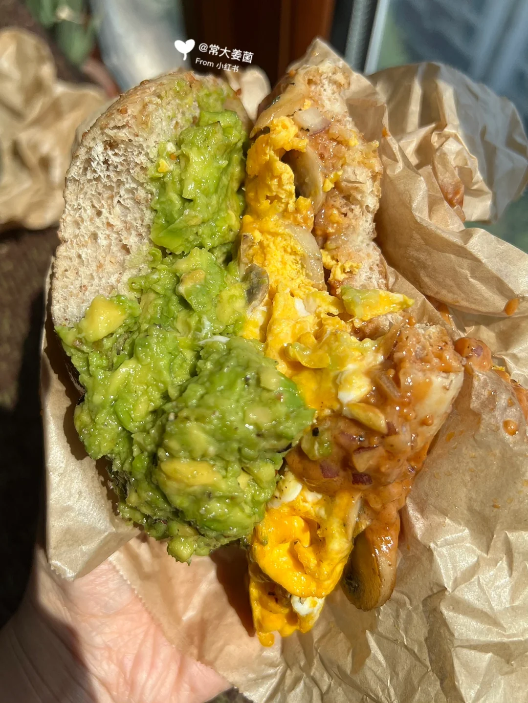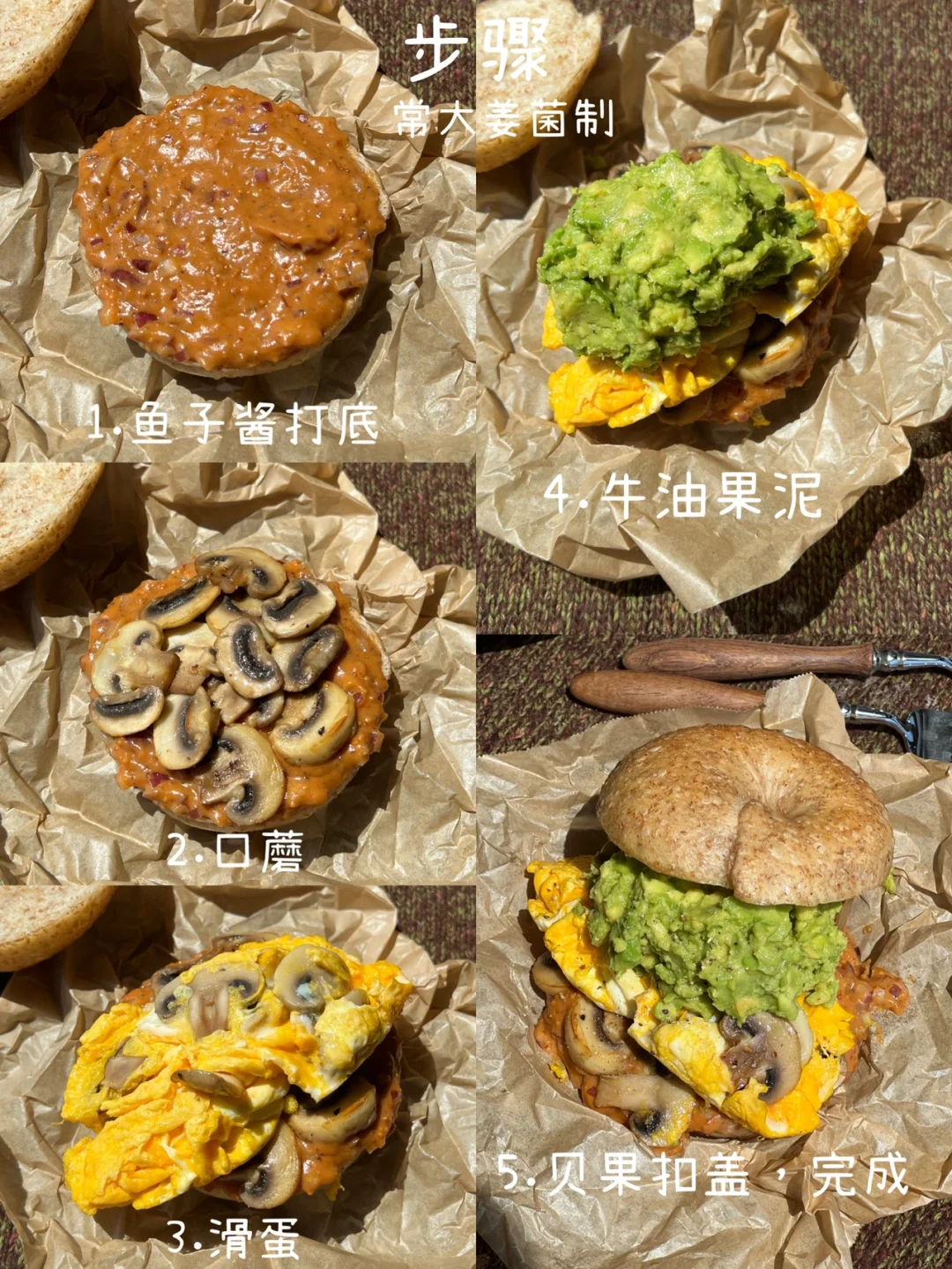 不愧是经典的贝果搭配:牛油果、鸡蛋、口蘑🥯🥚🥑