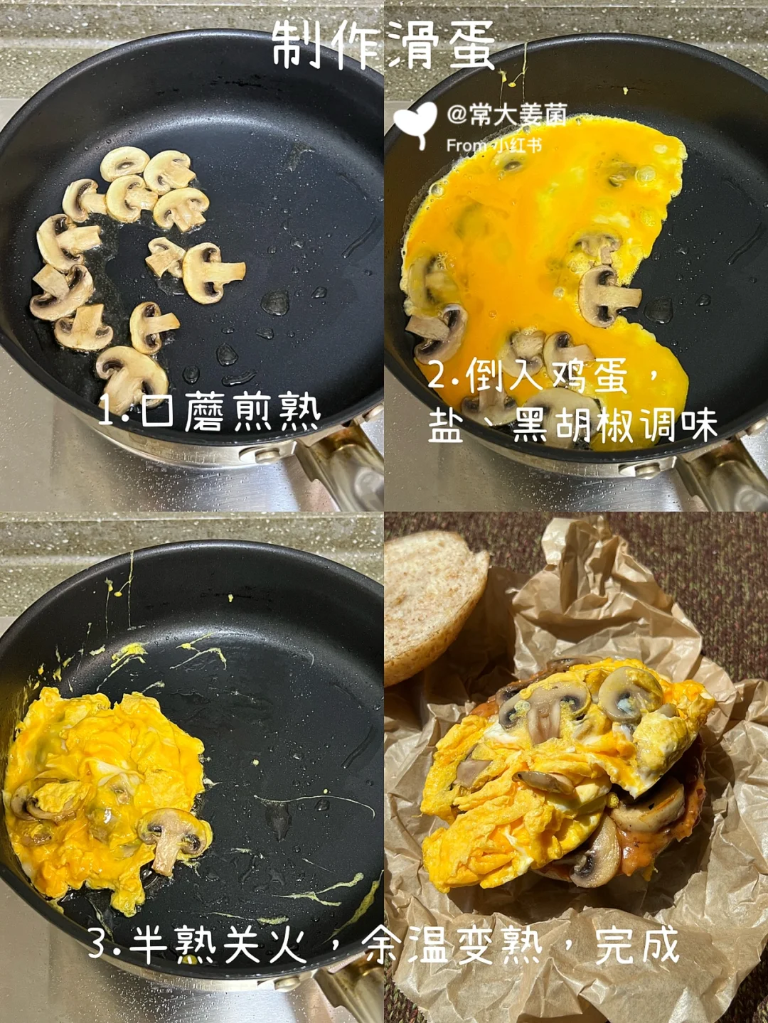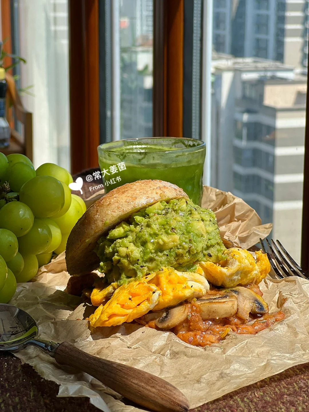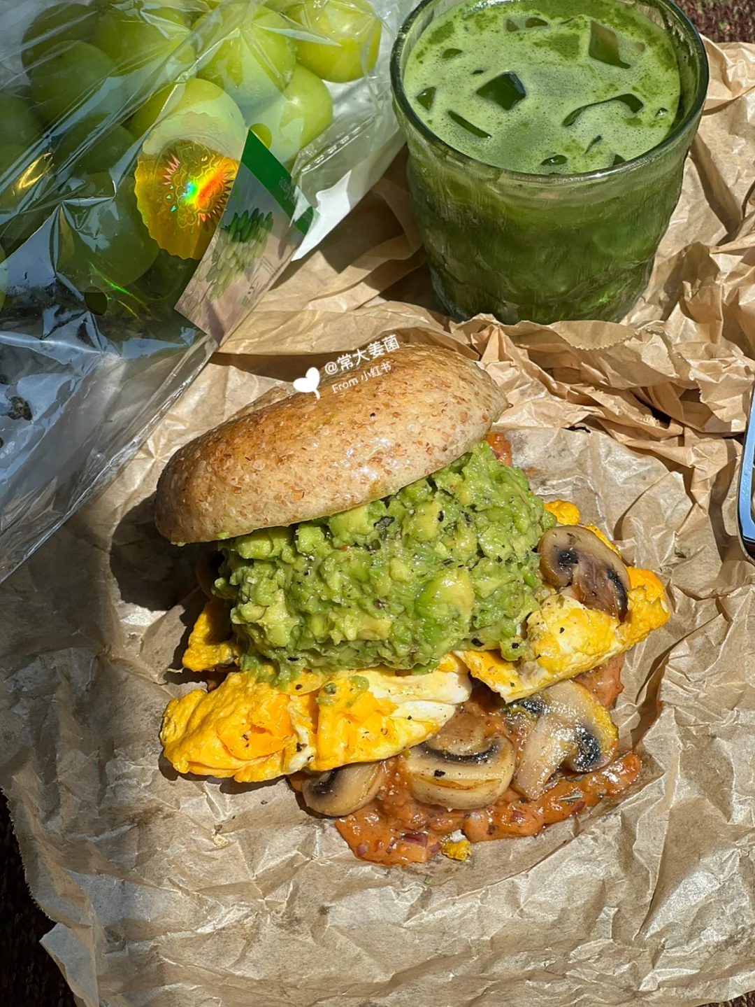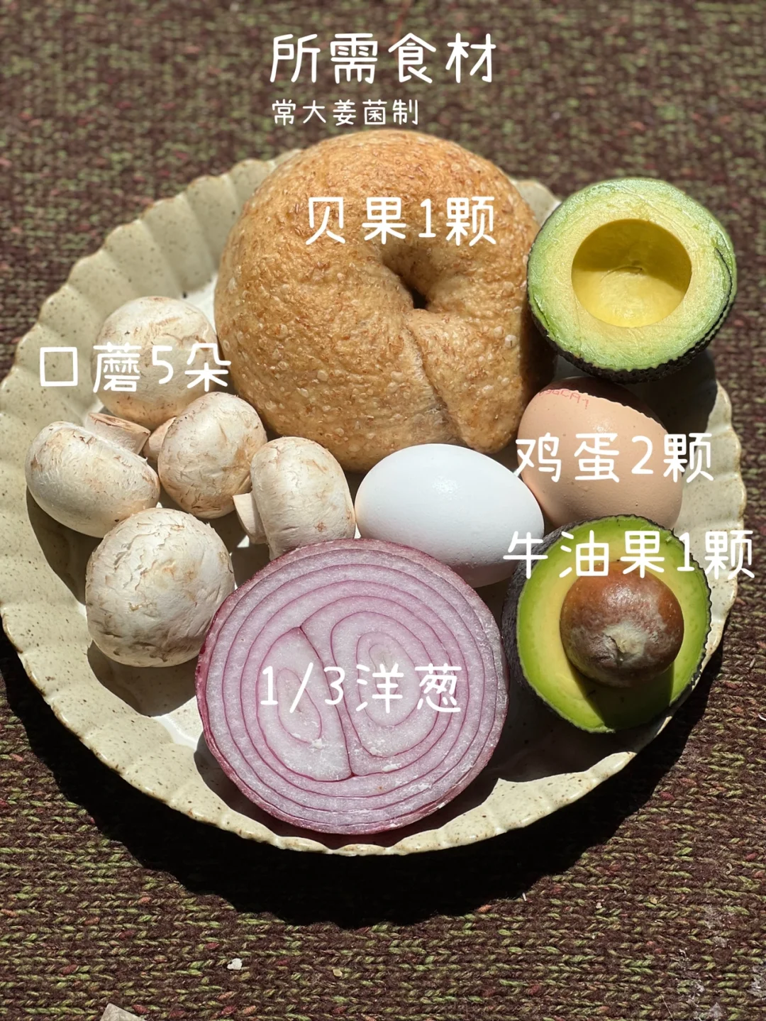 不愧是经典的贝果搭配:牛油果、鸡蛋、口蘑🥯🥚🥑