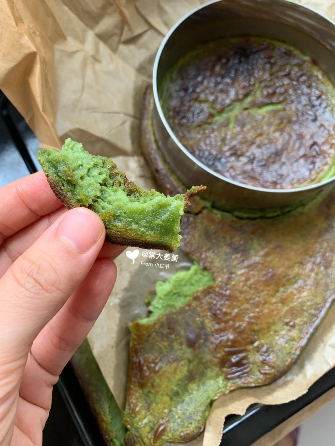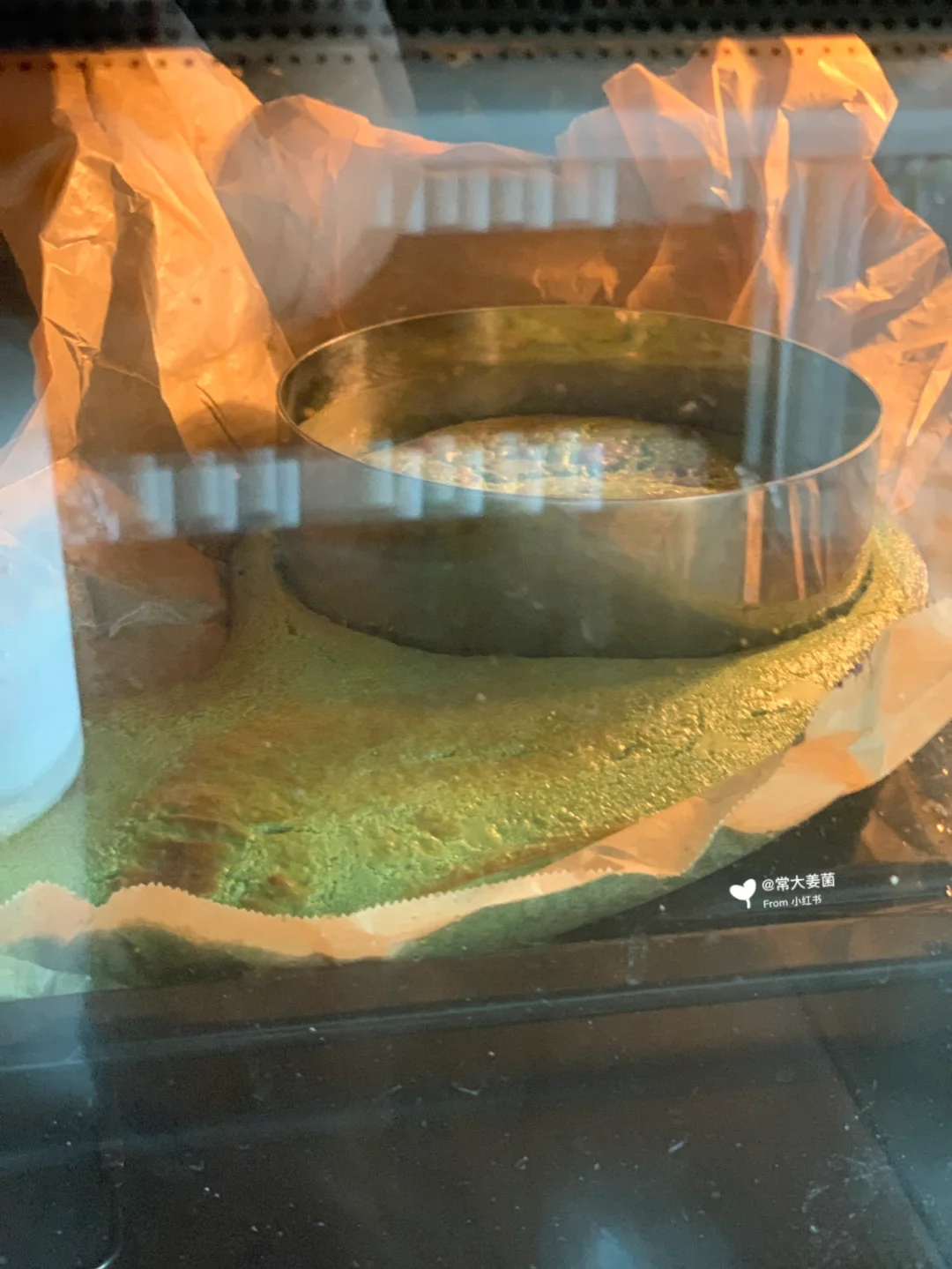 本来开开心心的把抹茶巴斯克液送进烤箱。