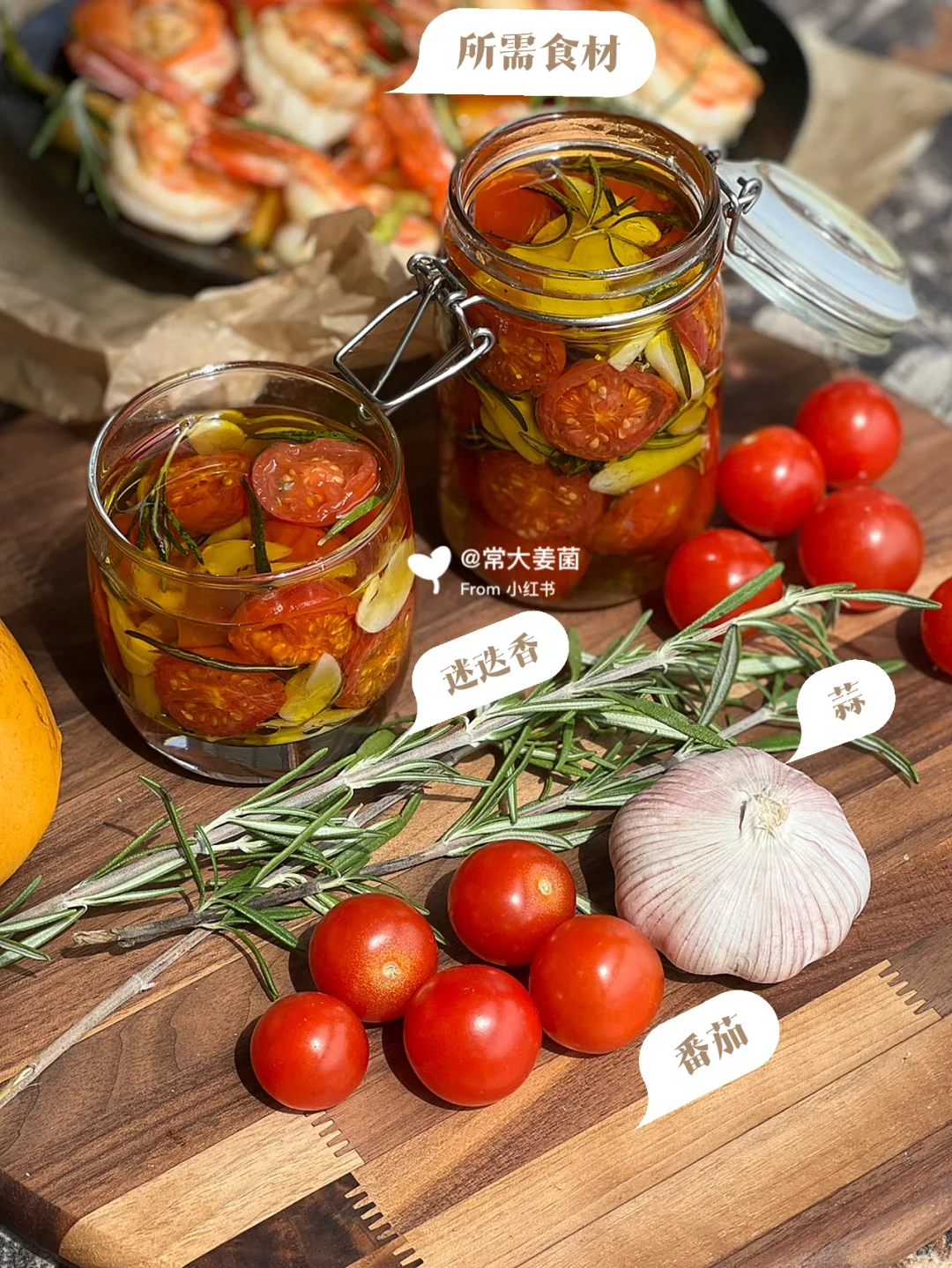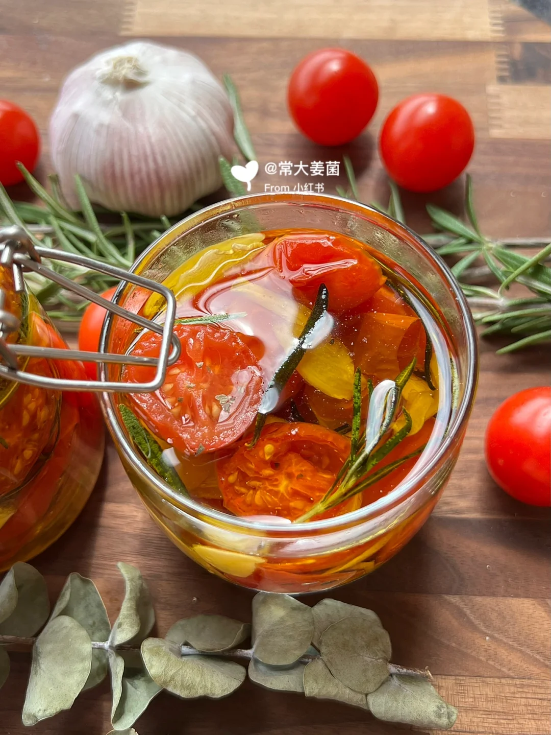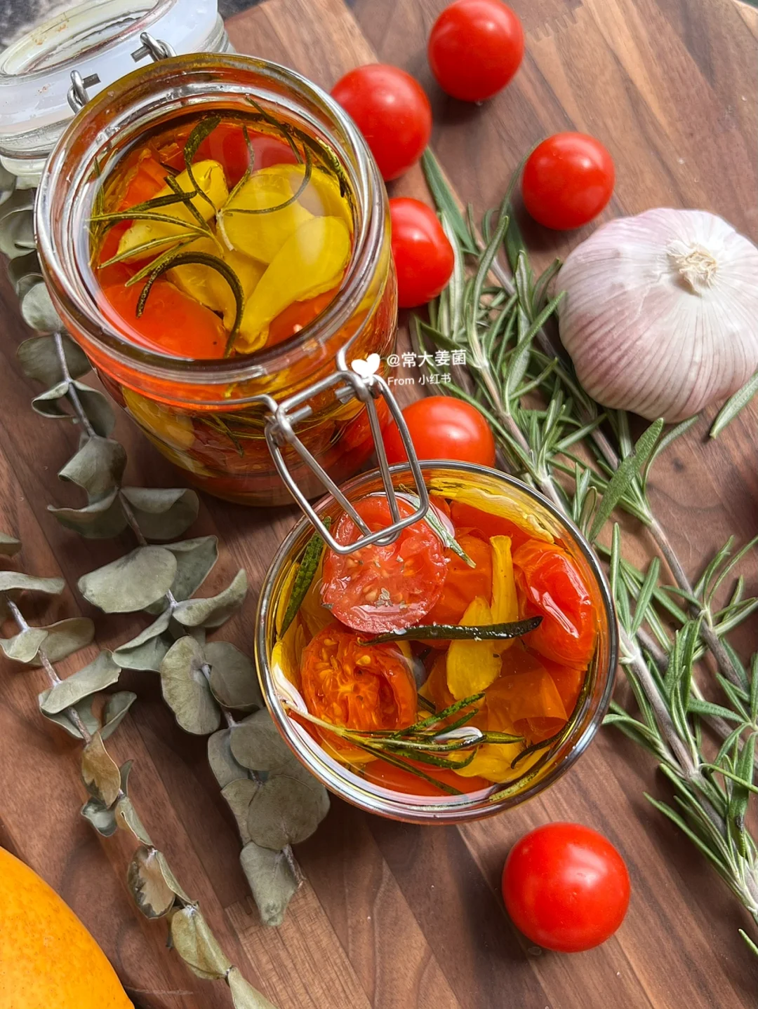 🍅油浸番茄干是🇮🇹意大利人民早期在寒冬到来前保存番茄的一种方法~👏🏻迷迭香和蒜瓣🧄🌿经过高温的香气,充满整个屋子!