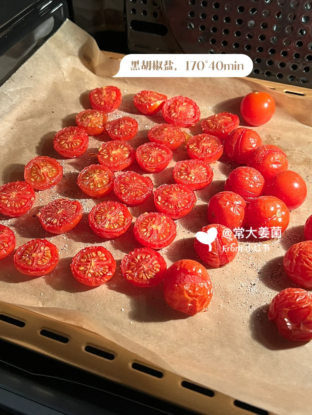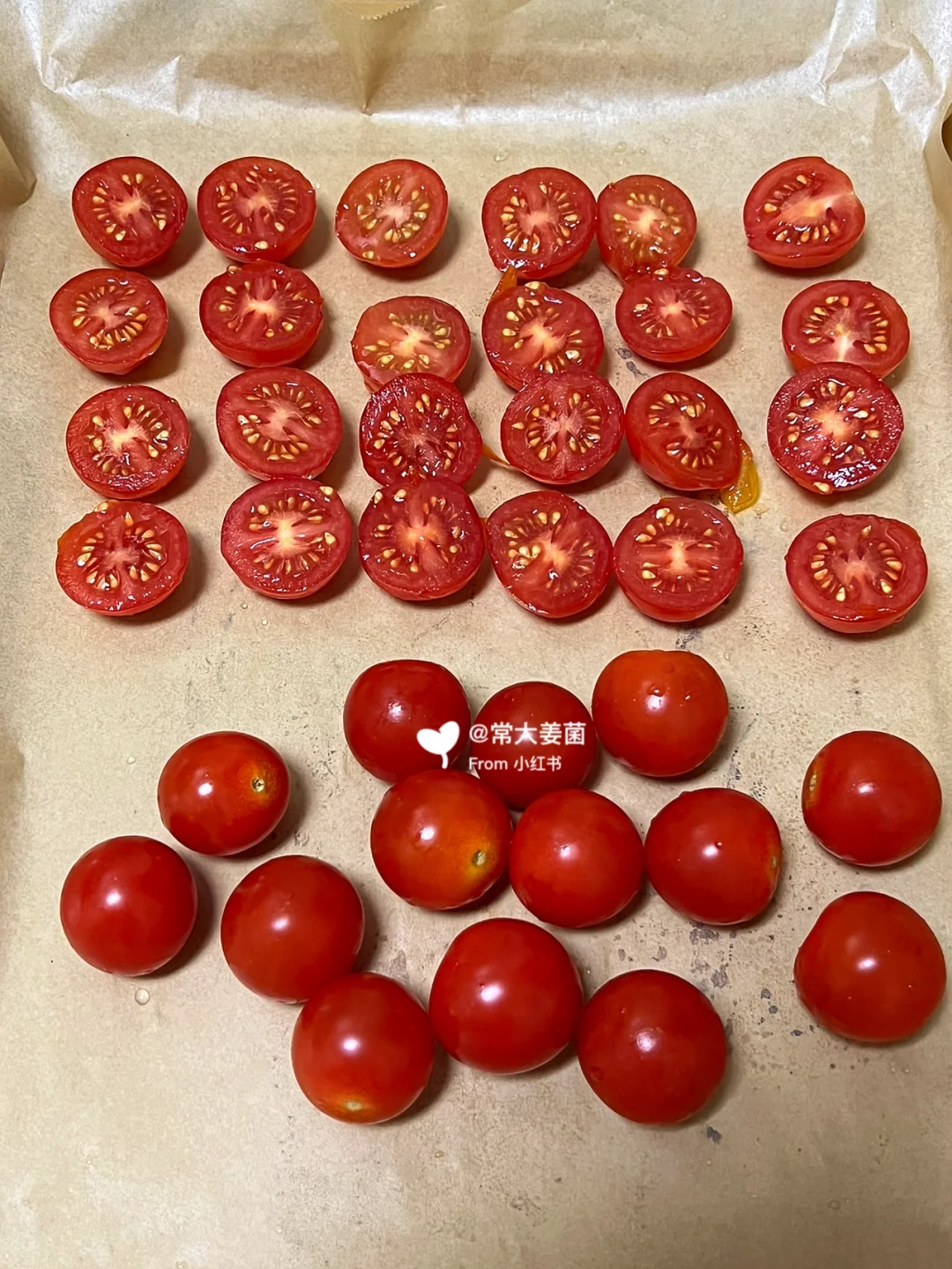 1.番茄对半切撒盐➕黑胡椒(个人喜好吃整颗番茄)