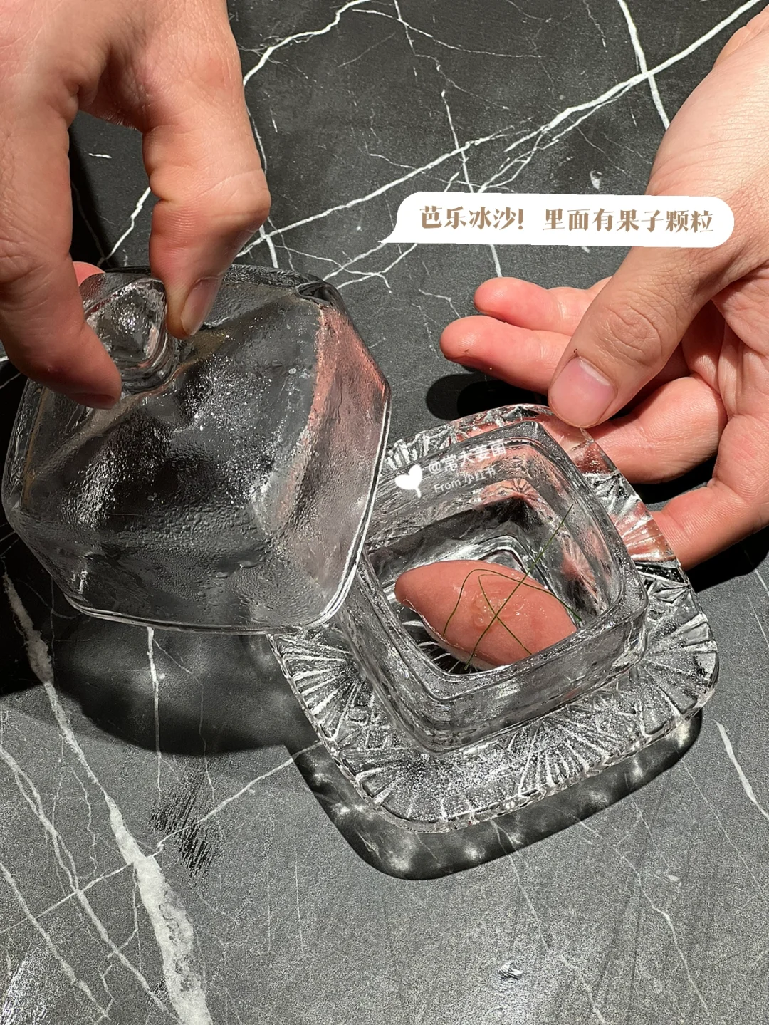 沙冰是芭乐口味,里面包裹着芭乐的果粒,口感非常细腻而且自然不甜腻,吃起来的温度不冰牙。