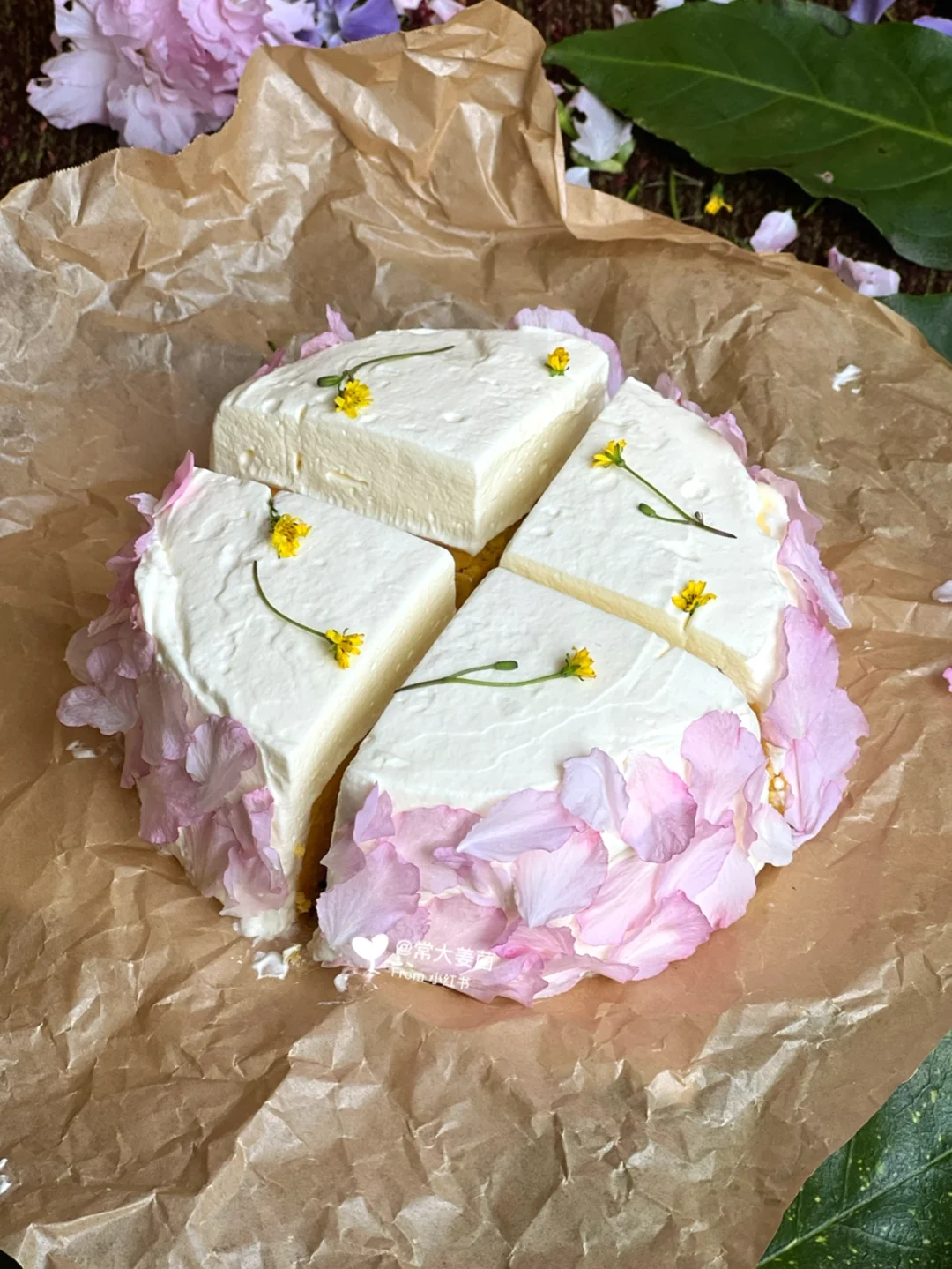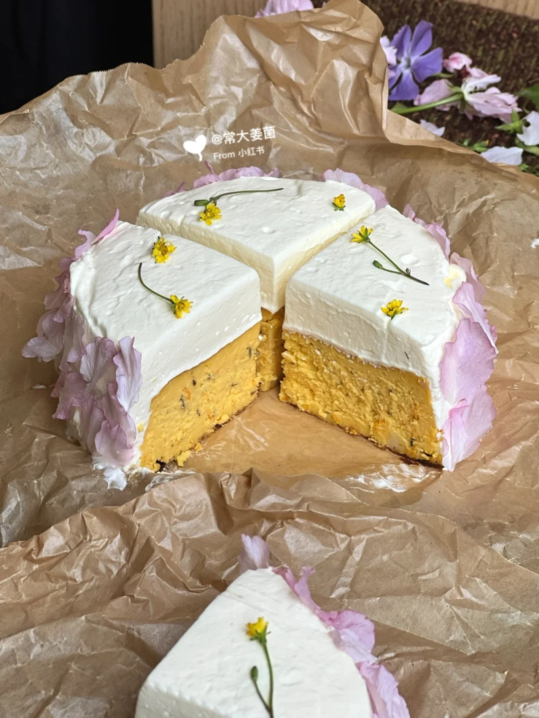 做了这道美丽➕美味的巴斯克鲜花蛋糕🧀🍊🌸