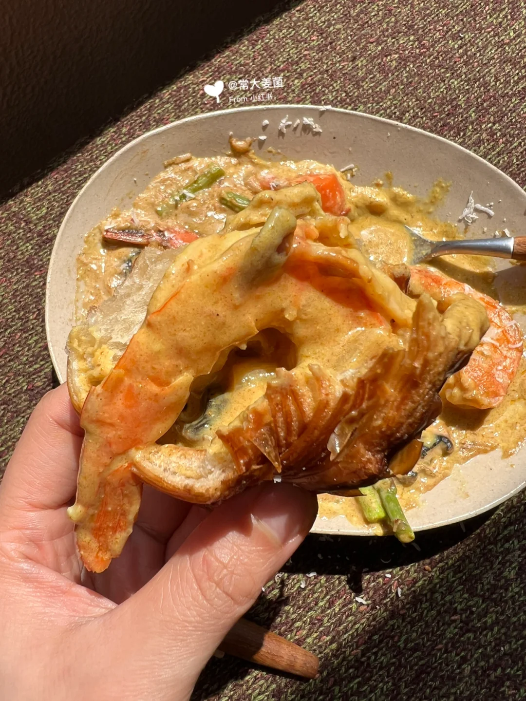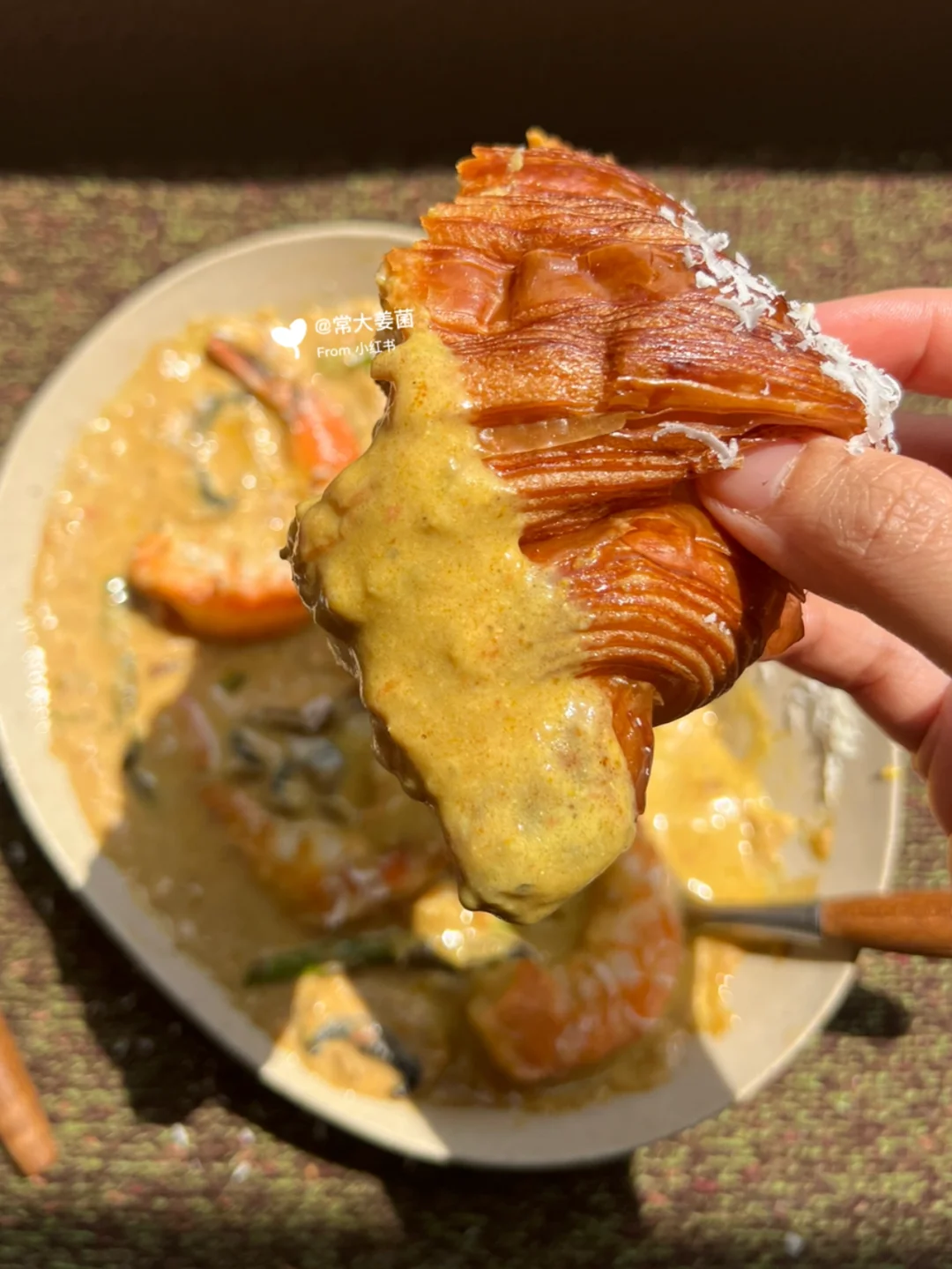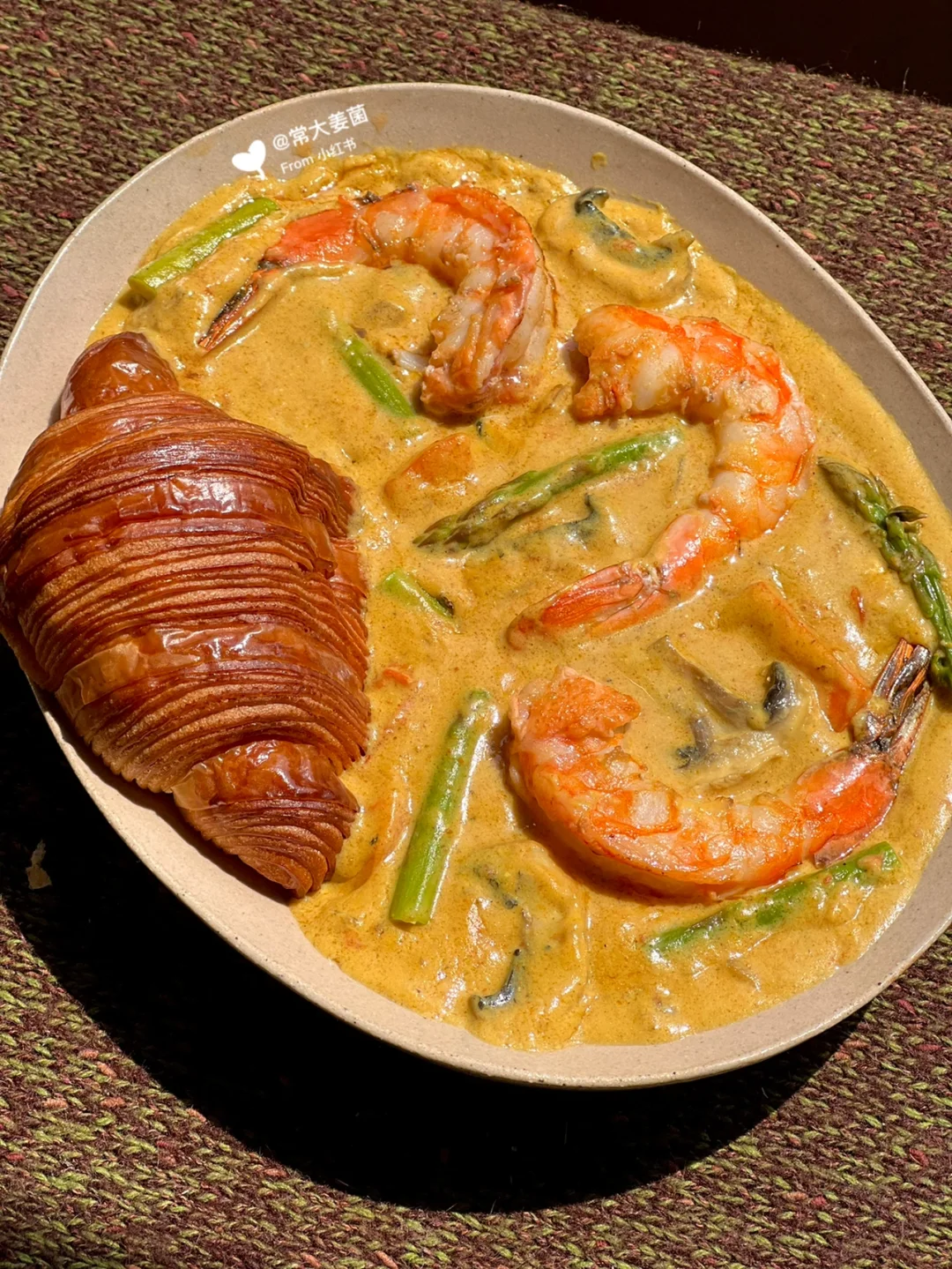 我在nya酱原配方里额外添加🍄口蘑➕🍤大虾,鲜甜更上一层楼!用香酥奶浓的可颂蘸着吃!简直无敌!!!