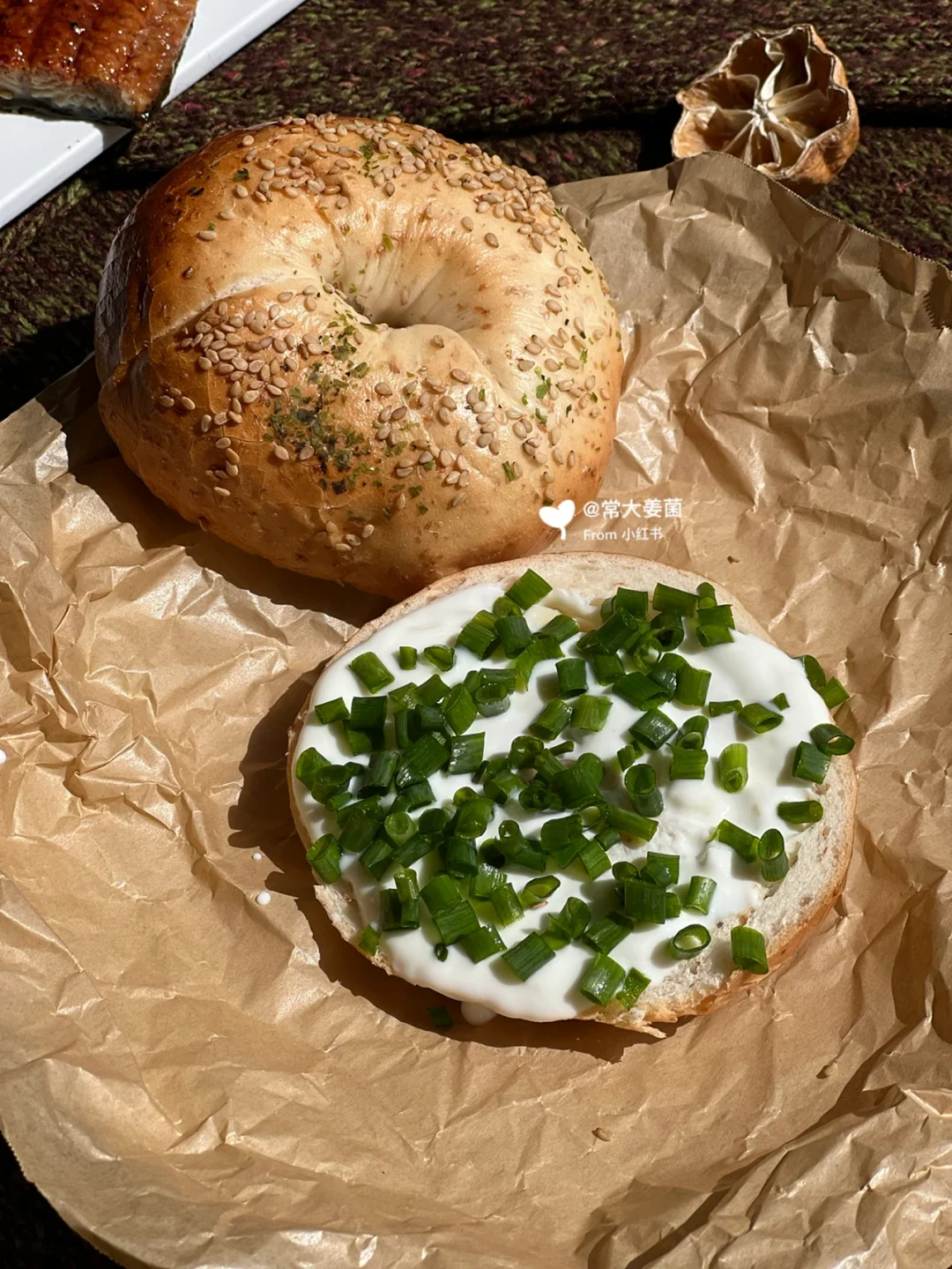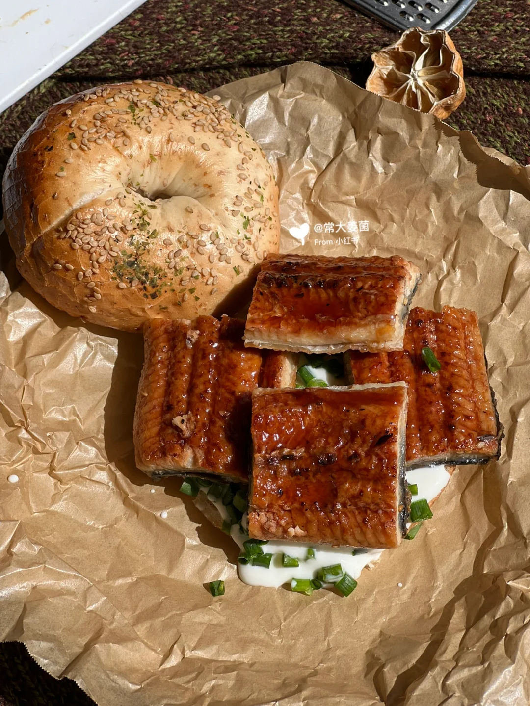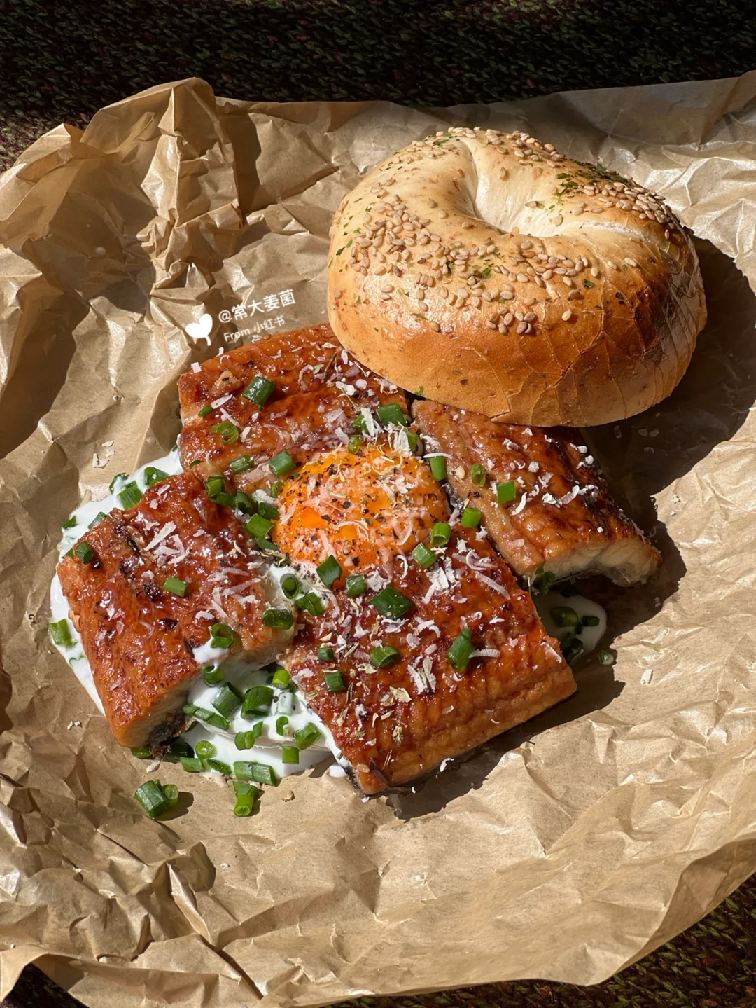 无敌好吃鳗鱼窝蛋&香葱奶酪酱🥯贝果三明治