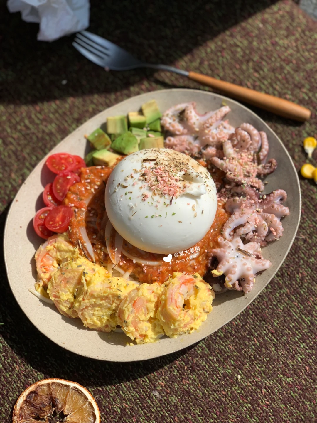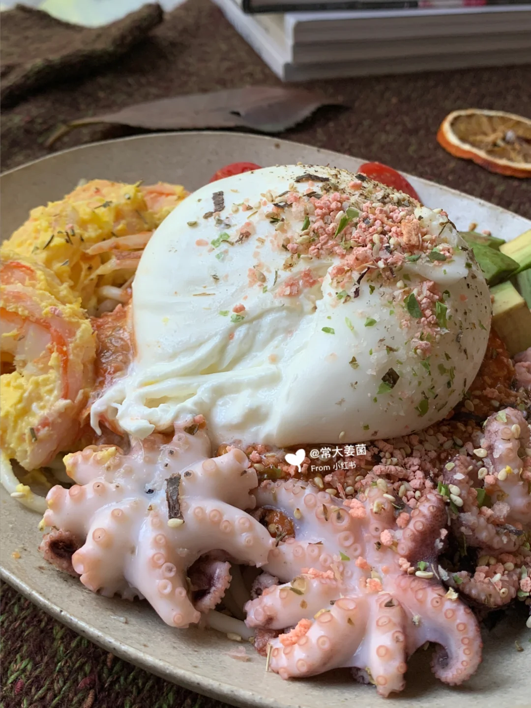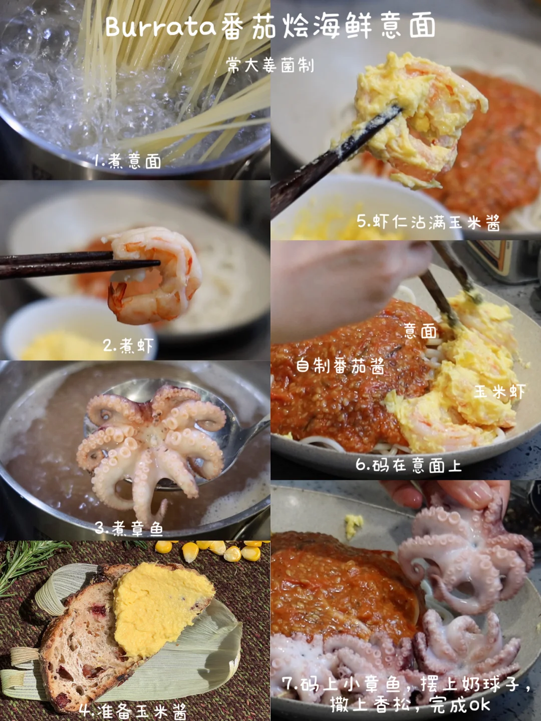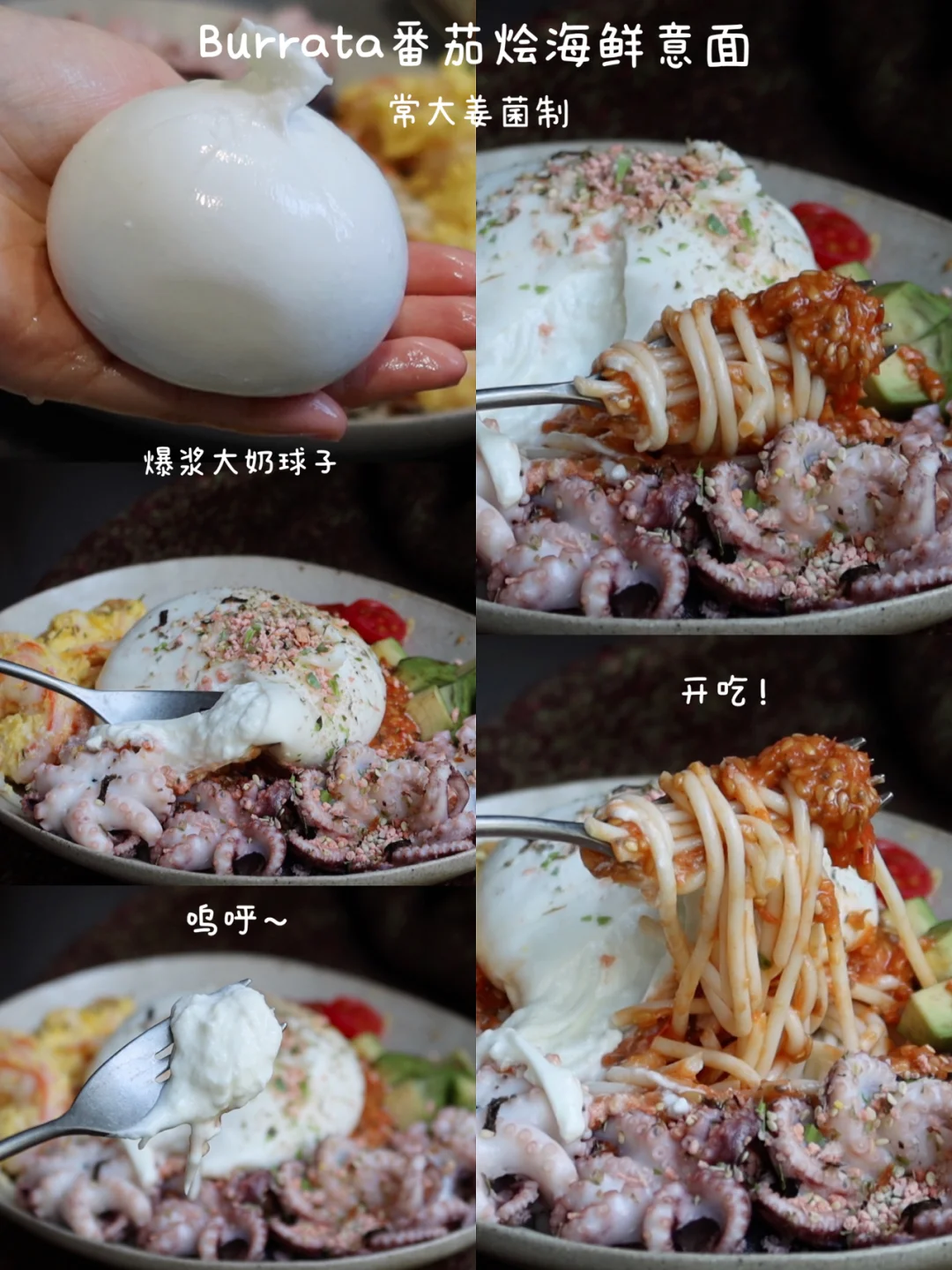 Burrata章鱼芥黄大虾意面🍅🍝奶球子新吃法