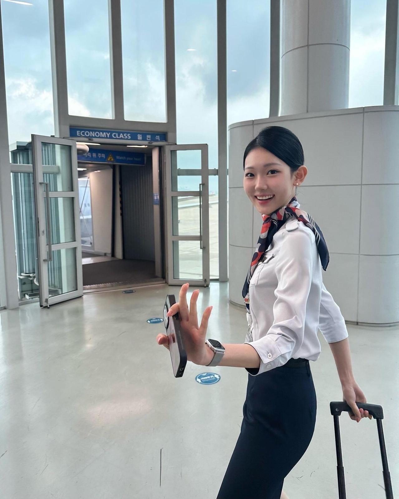 机场候机女,微笑如花美。
