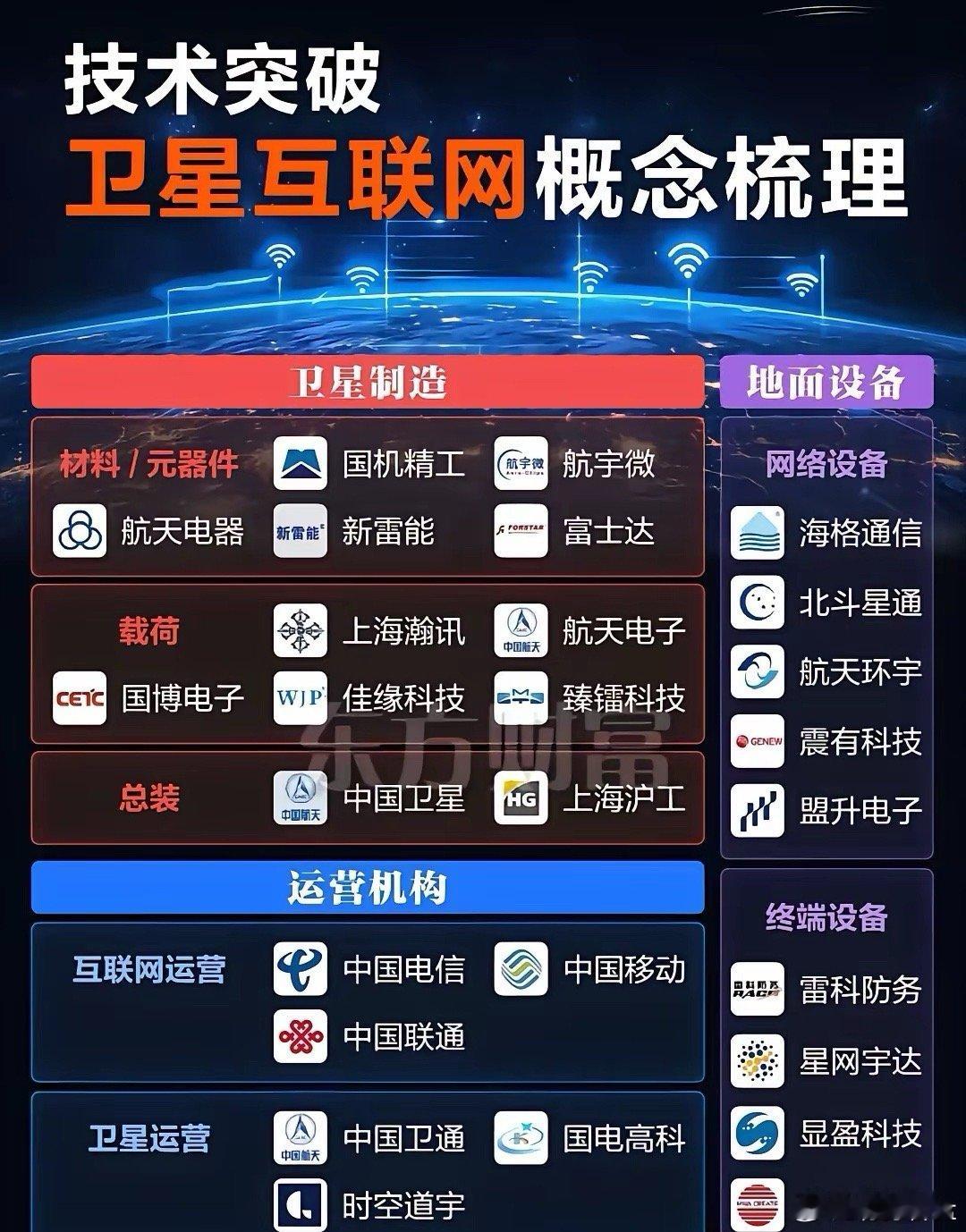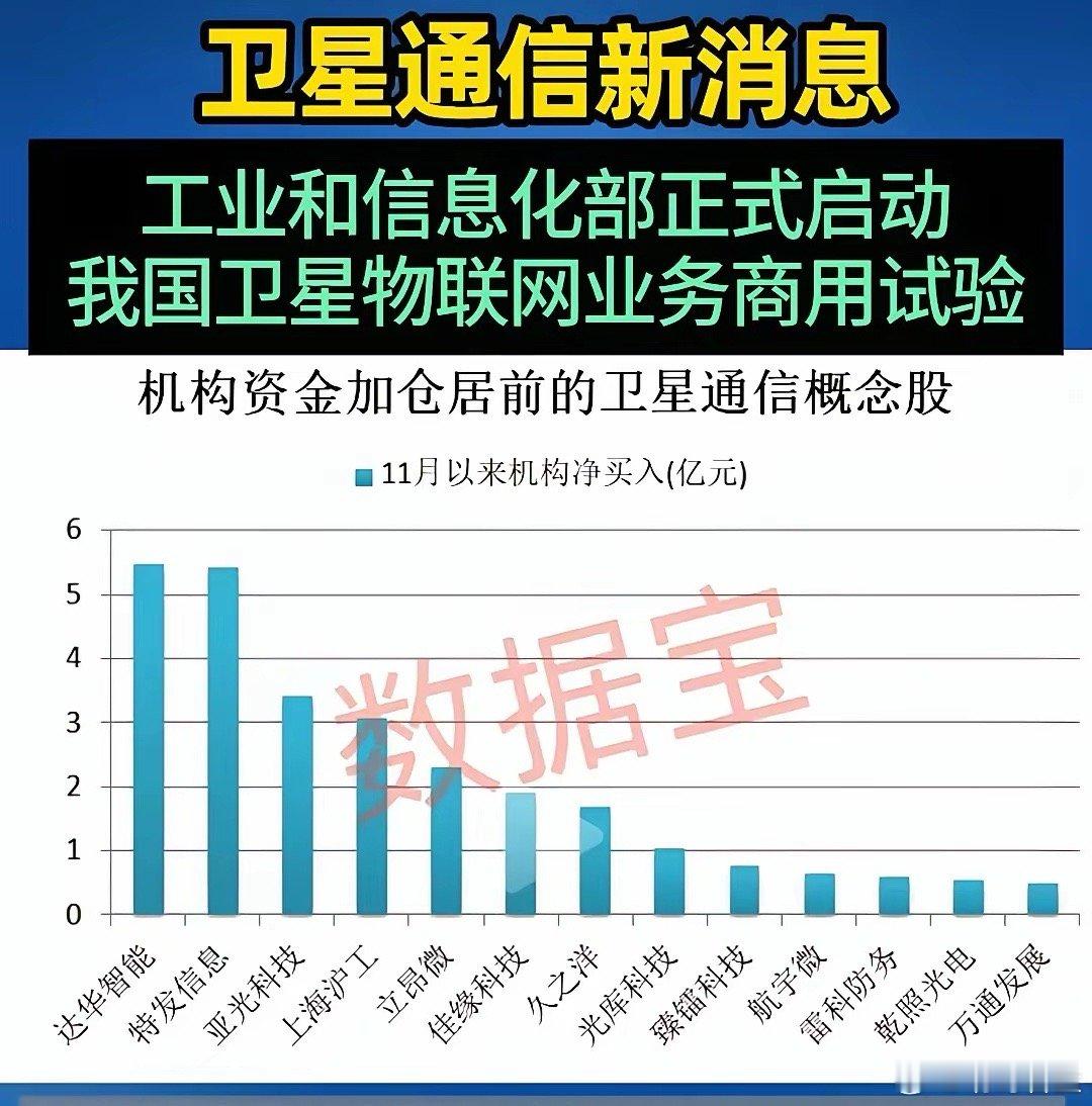 卫星互联网概念利好来袭!周末重磅利好,工信部启动卫星物联网业务商用试验,11月22日,工信部在2025中国“5G+”工业互联网大会上正式启动该商用试验,试验期为两年。卫星通信相关概念龙头代表有哪些?卫星互联网产业链涵盖卫星制造、核心部件、运营服务等多个环节。卫星通信行业各细分龙头代表:卫星制造龙头中国卫星、卫星芯片龙头铖昌科技、卫星运营龙头中国卫通、地面设备龙头海格通信……11月份仅供重仓的卫星互联网概念代表有航宇微、上海护工、亚光科技等等。资料取材网络仅供参考不能作为投资依据。