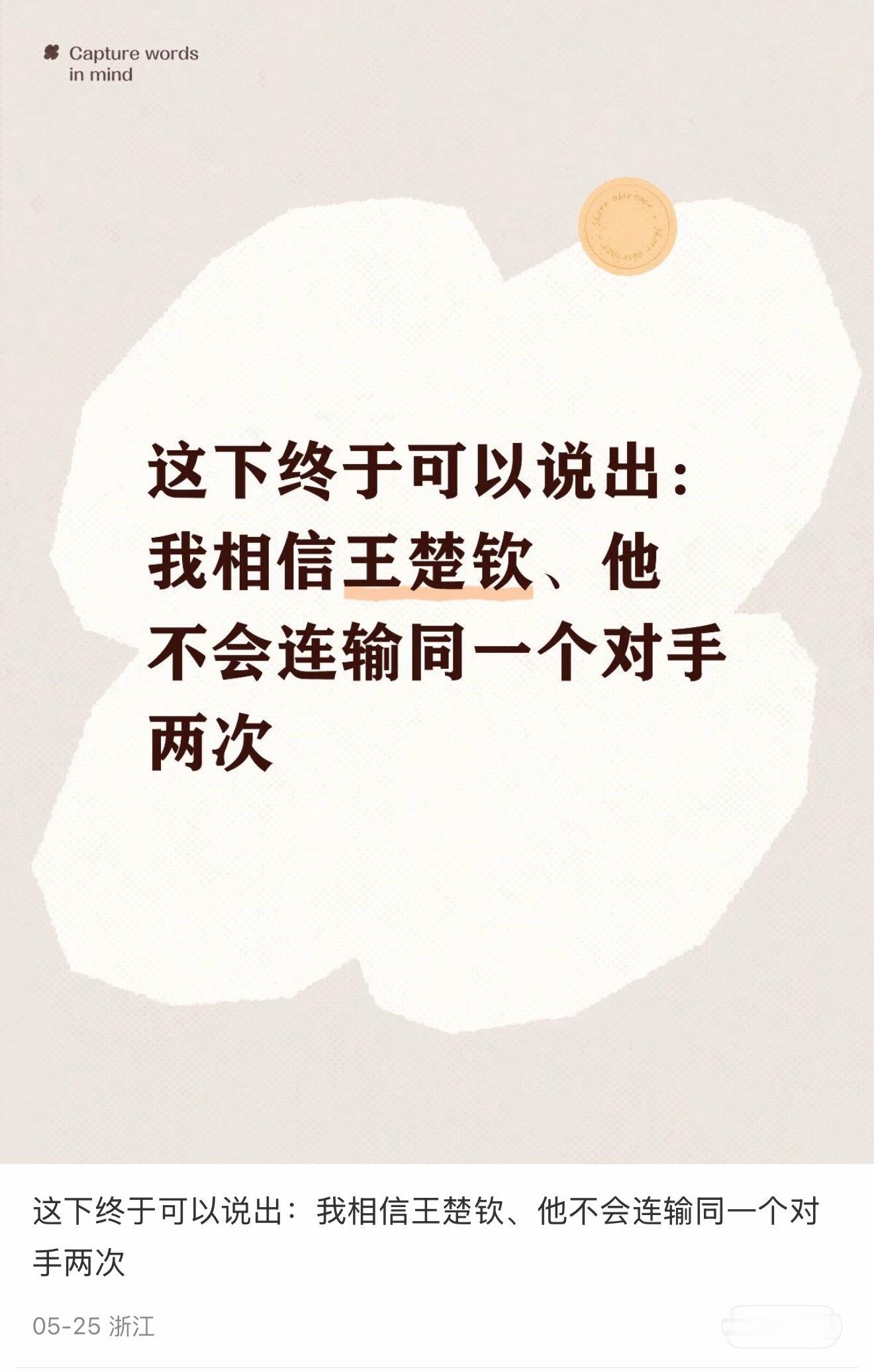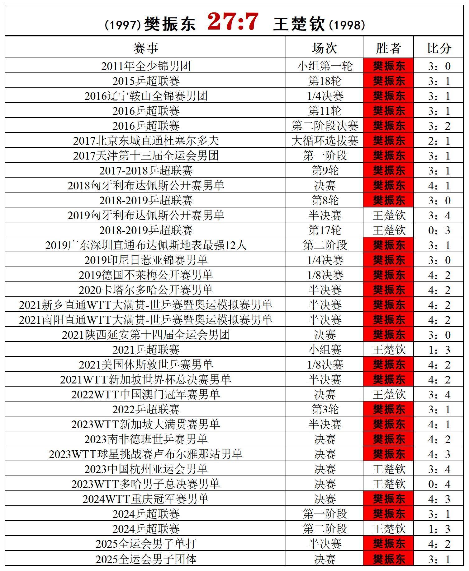 “王楚钦从不连输同一个对手两次”