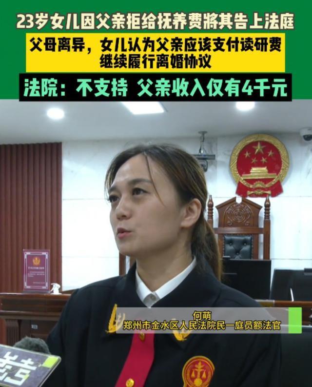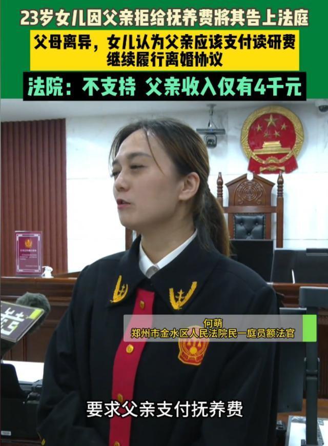 寒心!郑州父亲10几万供女读大学,考研没钱续供被起诉,法院判决亮了 夜班结束,月入4000出头的郑州中年男人攥着法院传票,指尖泛白。让他沦为“被告”的,不是别人,正是自己含辛茹苦养大的女儿——23岁的研究生小琳。法庭上,父女俩相对无言,曾经的温情早已被一纸诉状冲淡。 故事要从四年前说起。彼时,男人与妻子离婚,调解书上明确约定:女儿大学四年的全部学费,外加每月2000元生活费,均由他独自承担。这笔合计十几万的开支,他一分没少兑现。在他朴素的认知里,供女儿读完本科,她便能自立自强,可现实却打了他一个措手不及。 研究生录取通知书寄到后,小琳只给父亲发了一句话:“学费生活费照旧。”看着女儿期盼的眼神,男人咬牙扛下了第一年的开销——卖掉了唯一的摩托车,压缩日常开支到极致,连常年吃的花生油都换成了廉价调和油。可当第二年的缴费单送来时,这个月薪仅够维持基本生计的中年男人,再也拿不出多余的钱。 多次沟通无果后,小琳直接点开了诉讼服务小程序,几分钟便完成了立案,将父亲告上法庭。她的诉求很简单:要求父亲继续支付研究生期间的学费和生活费。这一举动,让原本就拮据的家庭彻底陷入僵局。 案件曝光后,网友们炸开了锅,评论区形成两大阵营。一方怒批小琳:“23岁已经成年,不会申请助学金、助学贷款?啃老啃到法院,太寒心了!”另一方则辩解:“孩子只想安心读书,父亲有能力就该多支持,毕竟读研是为了更好的未来。”争议的核心,终究是对“父母责任”与“子女独立”的边界认知不同。 事实上,男人的困境并非个例。河南省人社厅2023年报告显示,郑州私营单位职工月平均工资为5144元,他4000出头的收入处于中低水平,扣完房租水电后所剩无几。而研究生三年的学杂费和基本生活费,保守估算近十万元,这对普通工薪族而言,已是难以承受的重担。 法院的判决最终给出了明确答案:驳回原告小琳的全部诉求。判决书里写得直白:被告已履行法定抚养义务,原告身体健康,具备劳动能力,完全可以通过申请奖学金、国家助学贷款或勤工俭学等方式完成学业。判决下达时,距离开学仅剩两周。 这起案件的背后,除了家庭矛盾,更暴露了制度层面的空档。我国现行助学贷款本息全免期限最长至22岁,而不少硕士新生起步年龄就是23岁,恰恰错过这一政策红利,贷款门槛陡然提高。法律上父母无强制抚养义务,金融支持又存在短板,类似纠纷便容易被推向家庭道德法庭。 或许有人会问,小琳真的没有其他收入来源吗?其实,她大四时曾参与国家奖学金评审,因综合测评排名不足落选;研究生阶段的助研、助教津贴每月600至800元,但需依赖导师经费,今年高校项目缩减,并非人人都能享有。在这样的现实下,父亲似乎成了她眼中最“可靠”的提款机。 但亲情从来都不是无底线的索取。父母的爱深沉而伟大,却不该被当作理所当然的依赖。人到中年,身体机能下降,一场小病可能就耗尽积蓄,父母老去的速度,往往比子女想象中更快。23岁的成年人,早已具备独立规划人生的能力,读研深造是值得鼓励的追求,但更应学会体谅父母的难处,通过自身努力解决困境,而非将压力全部转嫁到疲惫的父亲身上。 这起案件不仅是一次家庭纠纷的裁决,更是一堂生动的成长课:父母的责任是扶上马送一程,而不是包办一生;子女的独立,从理解父母的不易开始。愿每个年轻人都能明白,真正的成长,是在追求梦想的同时,学会为自己的人生负责。