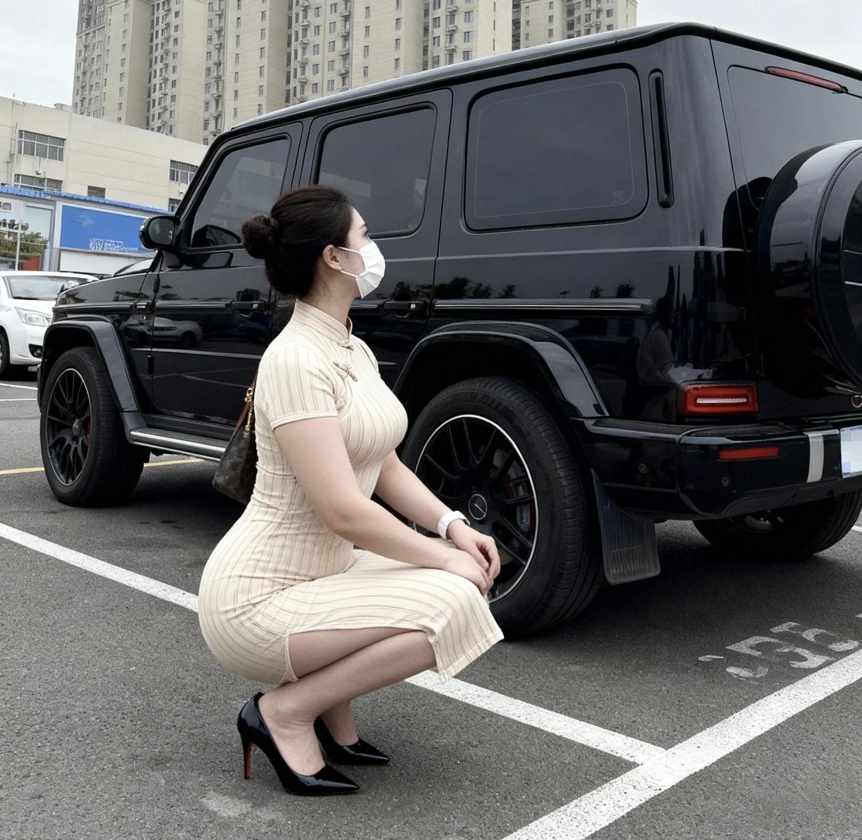 风情万种的女人是什么样的?车旁美人立,风姿绰约间。