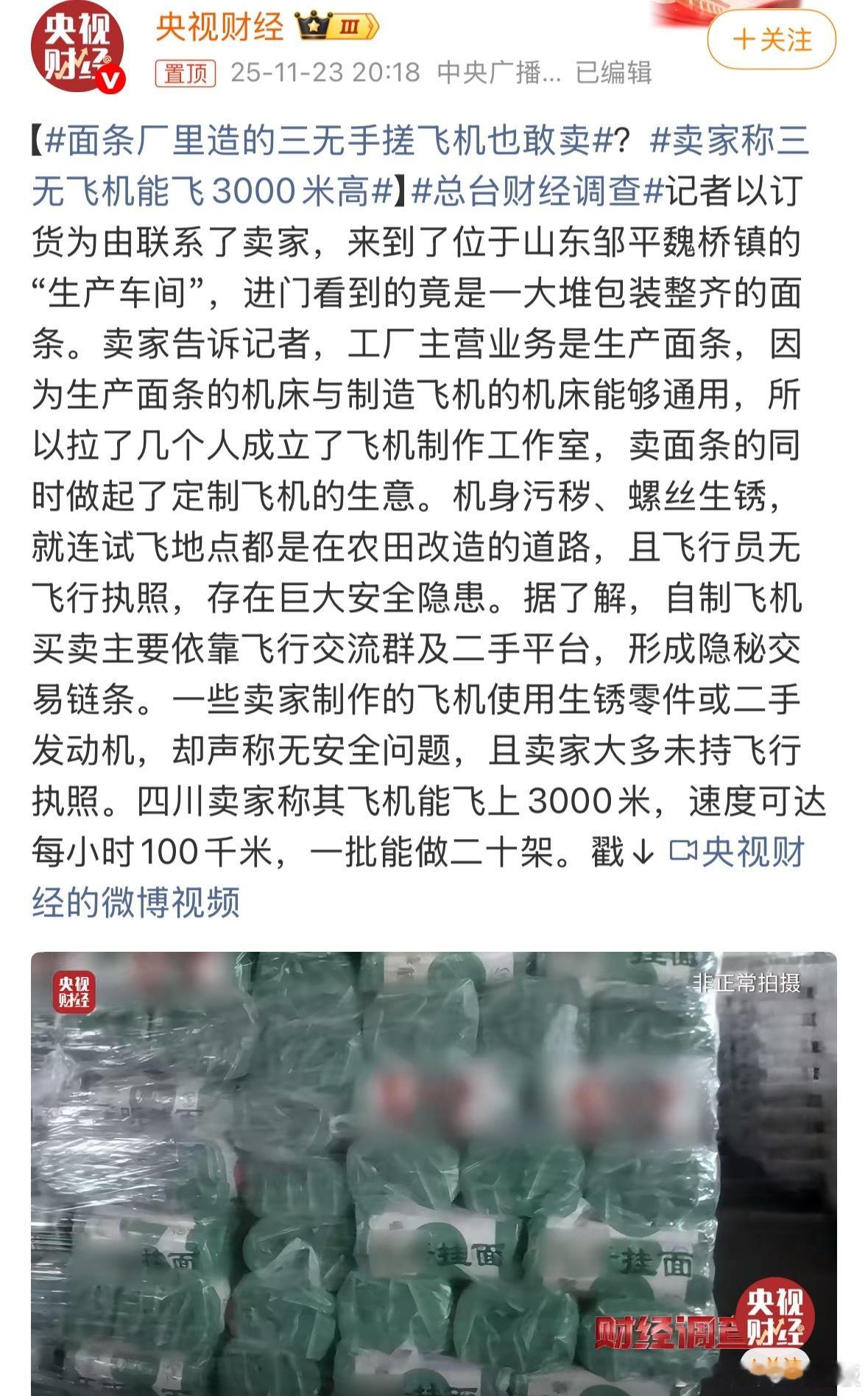 看到给我惊呆了!卖家宣称这类飞机能冲3000米高空、时速100公里,可机身污秽、螺丝生锈,甚至用二手发动机凑数,生产车间竟是山东邹平卖面条的厂子制作而成!这飞的不是梦想是玩命!空域安全不能赌,必须严格禁止啊!