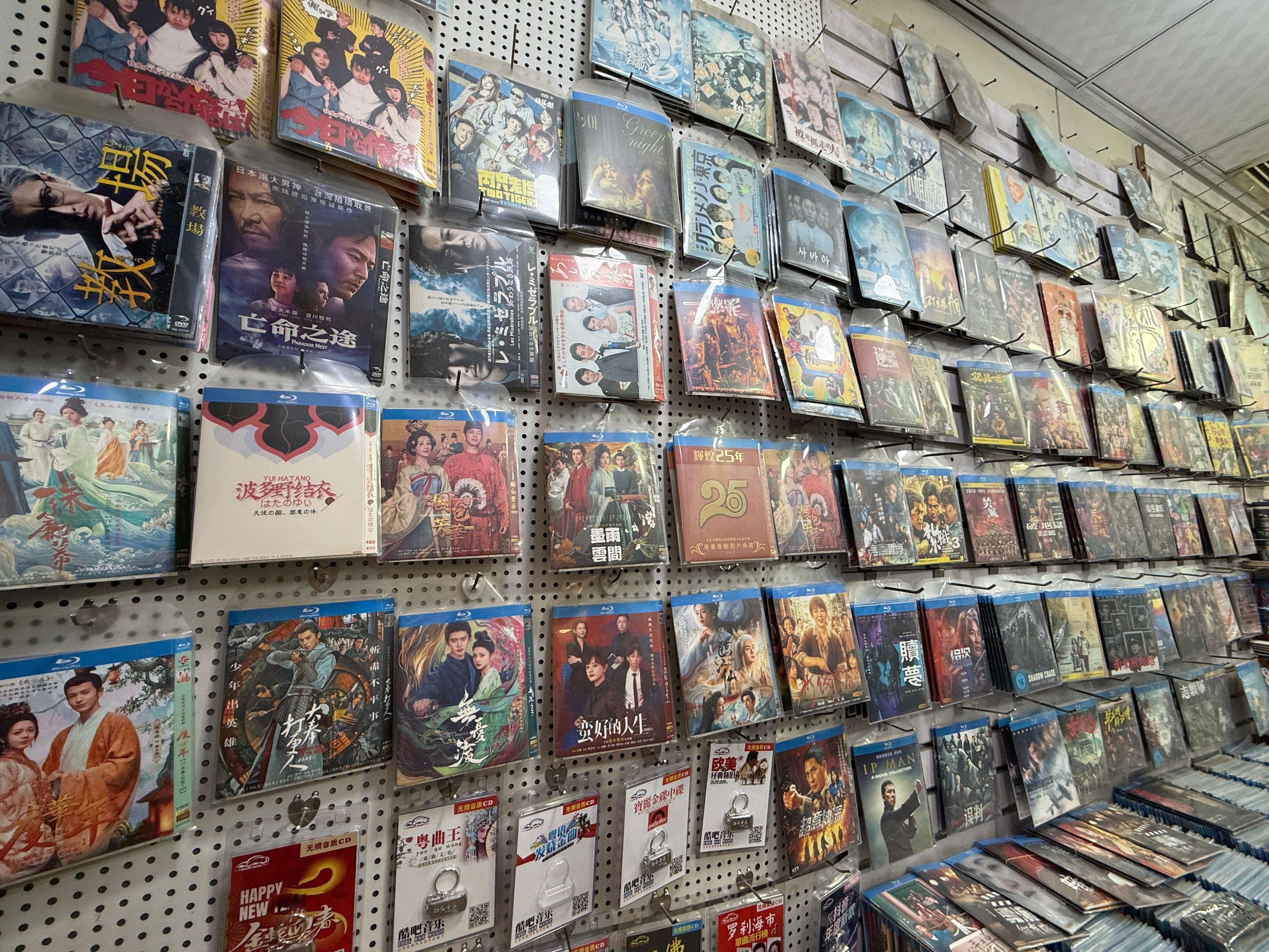 在拱北口岸的商城里竟然还能看到有卖光盘的,大家看看这都是什么片子,估计都是澳门那边的人来买吧,互联网数字电视已经让DVD彻底消失了,10后的小朋友可能都没见过DVD机了