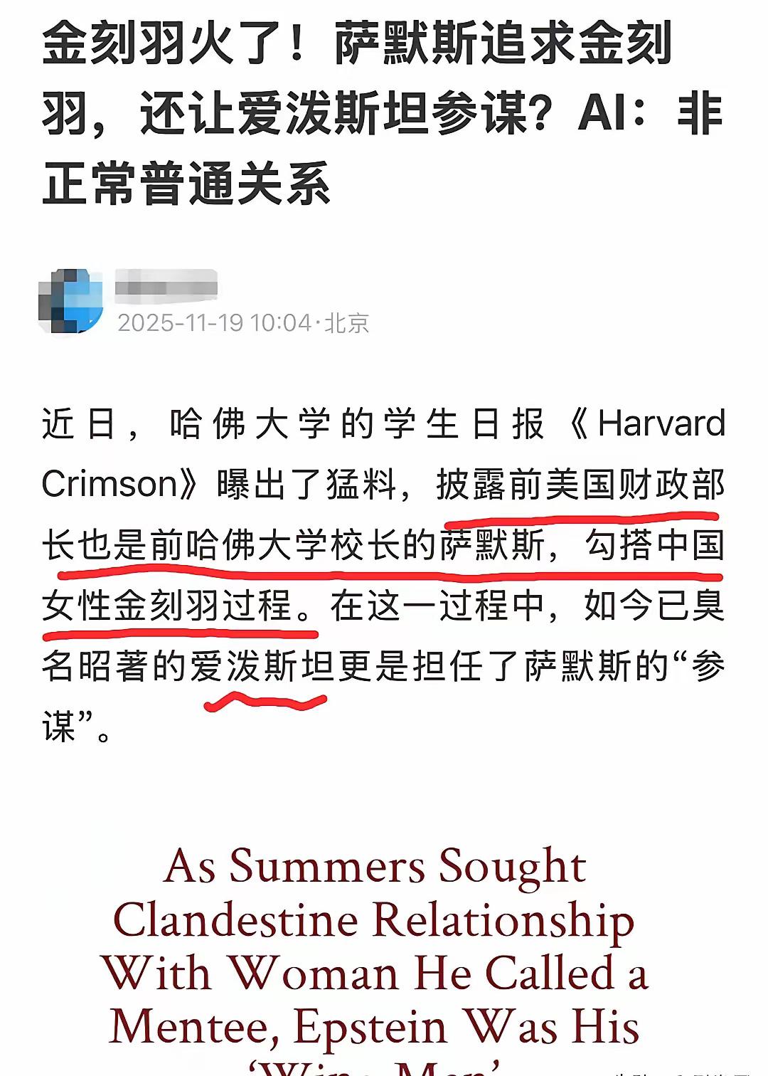 金刻羽事件:西方精英圈层的遮羞布与污秽场 爱泼斯坦邮件曝光的何止是金刻羽的“完美人设”,更是欧美精英阶层的道德溃烂。 光看这一句,很多人心里的那根弦一下就紧了。以前大家都把欧美精英包装得漂漂亮亮,动不动“自由”“文明”“开放”,好像那是人类社会的天花板。结果一封封曝光出来的邮件,像把窗帘猛地扯开,让人看到背后那堆灰尘、那股味儿,恶心得连呼吸都想停一会儿。 外面你看他们西装革履,在台上讲价值、讲伦理、讲公平,讲得跟圣人似的。可关上门后是什么样?圈子里那点玩法,普通人想都不敢想。说白了,那不是道德高地,那是有钱有势的人才能进的“上流游乐场”。别人看的是光鲜,他们玩的是规则以下的另一套东西。 很多人说金刻羽“长得好、读书好、会说话”,把她当励志偶像。可现在再回头一看,才明白什么叫资源铺路、什么叫圈层托举。有些人生来就在起跑线前面一百米,你以为她跑得快,她只是车比你豪。 这些“精英”最擅长的一件事,就是把自己的污泥巴用漂亮词汇包起来,让人误以为他们真是什么道德灯塔。可一旦纸包不住火,一个个原形毕露。你越往里瞅,越觉得那不是“文明世界”,那是权力叠加的温床,是名利滚出来的深坑。 普通人最难受的是什么?不是看到别人成功,而是突然发现自己过去相信的那一套被狠狠甩脸上。那些把欧美精英奉为榜样、奉为风向标的人,现在估计都沉默了。不是他们没话说,是话说出来都嫌丢人。 想想看,这些年多少人对西方那种精英教育、精英文化顶礼膜拜,觉得那才是未来方向。可实情摆在眼前,他们玩的不是知识,是关系;不是能力,是资格;不是公平,是圈内默契。换成普通人,哪能进去?门槛是金的,地毯是人脉铺的,台阶是背景堆的。 就像这次事件,越看越明白一个道理: 他们从不是靠“更优秀”站在高处,而是靠“更会互相护短”牢牢抱团。 这才是最让人心寒的地方。不是堕落,而是“习以为常的堕落”;不是偶然,而是“系统化的护犊子”。他们可以彼此遮羞、互相洗白、一起把脏水往外面泼。圈子越大,人越难看。 而普通人呢?只配听他们讲道理,只配看他们竖旗,只配相信他们的“自由价值”,却永远进不了他们真正的房间。 这就是现实。 这就是差距。 这才是无数人如今的愤怒来源。 这事不是金刻羽一个人的崩塌,而是整套精英叙事的裂口。以前大家不敢相信,现在被迫相信。以前觉得那是文明灯塔,现在看见那是遮羞布。布越大,底下藏的东西越吓人。