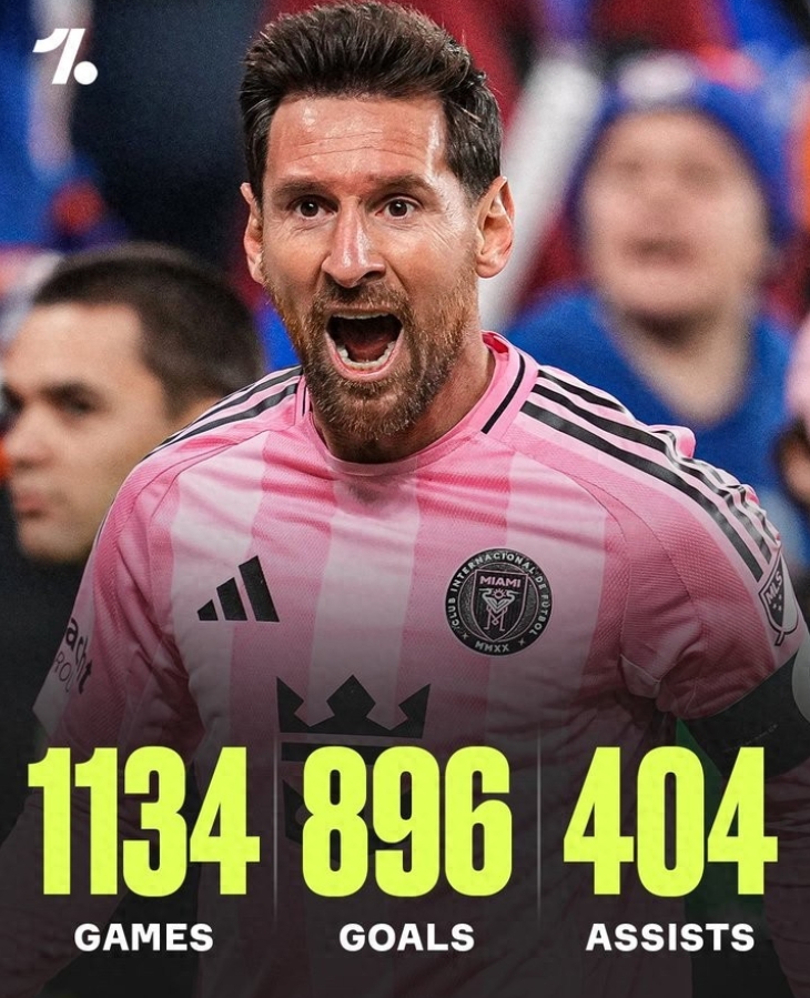 美职联1/4决赛,迈阿密国际4-0战胜辛辛那提,梅西在本场比赛贡献了1球3助攻。本场比赛过后,梅西职业生涯直接参与进球已达到1300粒。 梅西在其职业生涯中达成了直接参与1300粒进球里程碑,在1134场比赛中共打进896球并送出404次助攻。 在今晚的美职联季后赛关键比赛中,梅西为迈阿密国际贡献了三次助攻并打入一球。