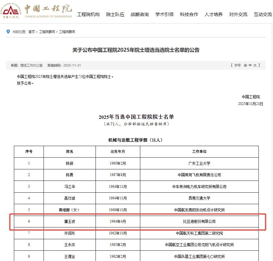恭喜廉(玉波)总,比亚迪集团首席科学家、汽车总工程师、汽车工程研究院院长、中国工程院院士,院士是我国科学技术方面和工程科技领域的最高荣誉称号