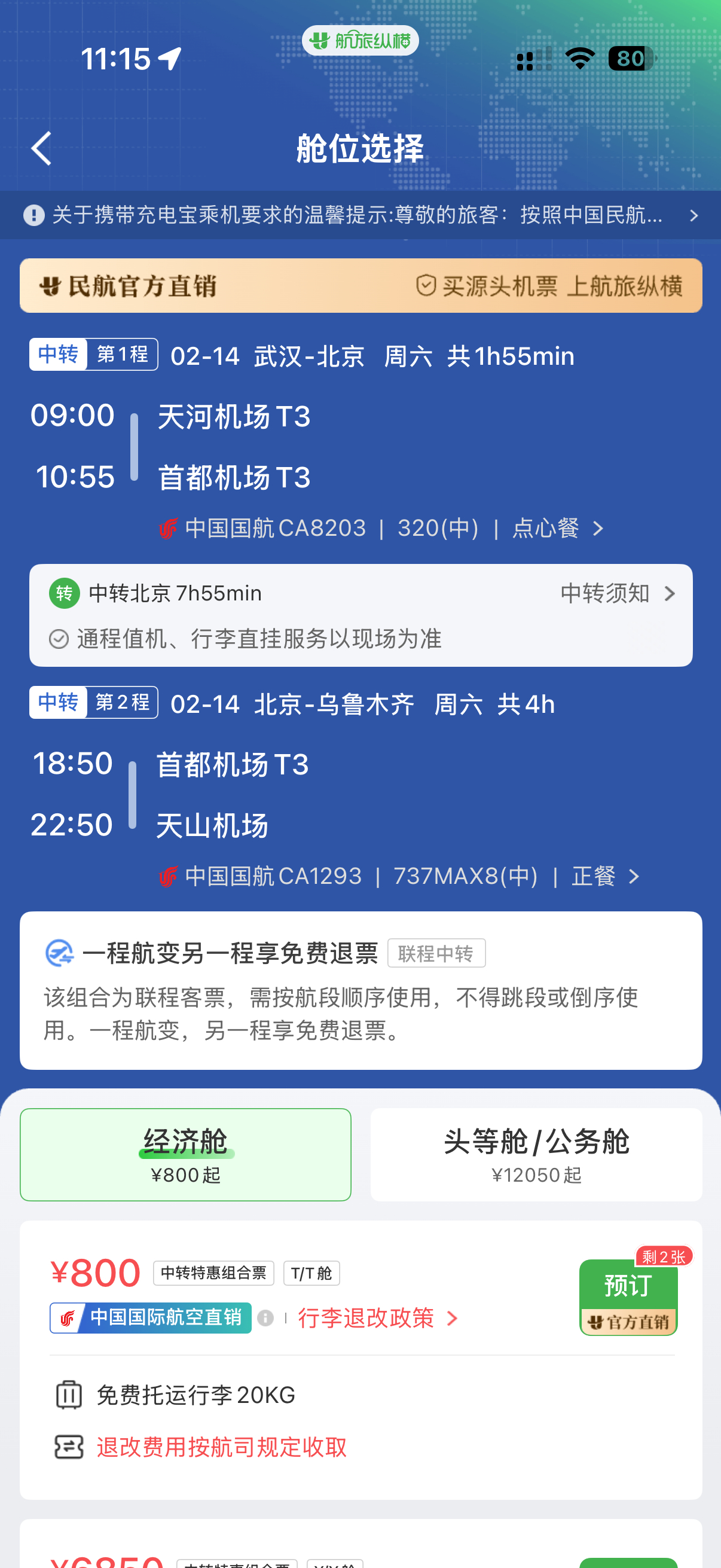 最近发现一个买机票的小技巧过年那会准备去新疆转转航旅纵横上面飞新疆都是原价经济舱