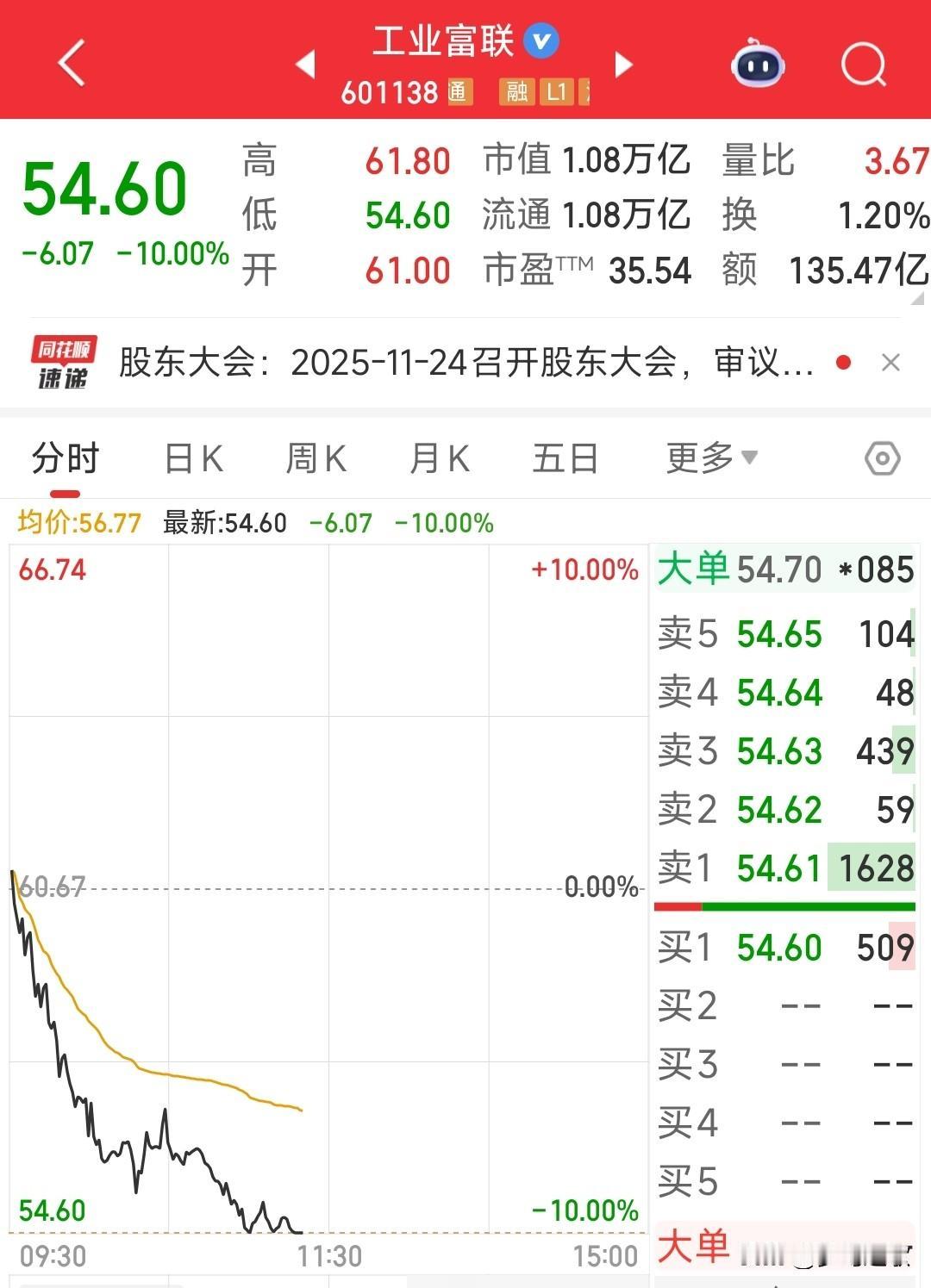 今天的A股真的是没有想到的走势,再次回到了原来的德性 全球资本市场都因为周末的利好在反弹,港股都反弹了1.3%,只有A股还在跌。 跌的最狠的就是跟AI有关懂王概念股,曾经的3倍股今天跌停了,工业富联通过AI服务器涨了起来,跟英伟达有关又涨了一轮,现在又因为这两个原因又跌了下来。 关键是科技股遭到重锤,别的板块也没有起来,就连今年没有涨的券商和白酒都不涨,这也是奇观。 从今天的盘面看,如果下午还拉不起来,那反弹就会减弱了,反弹了的力度也会减弱,可能还得往下跌。