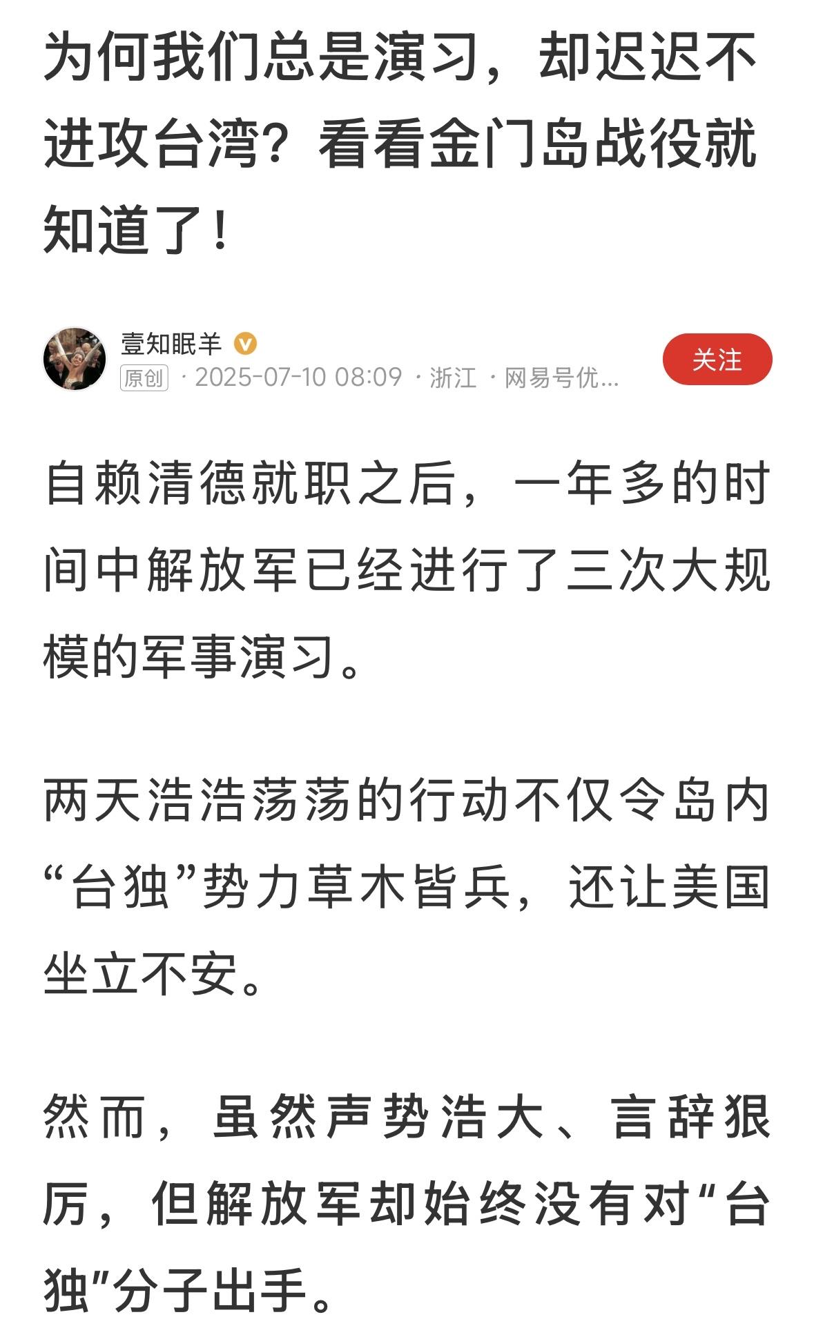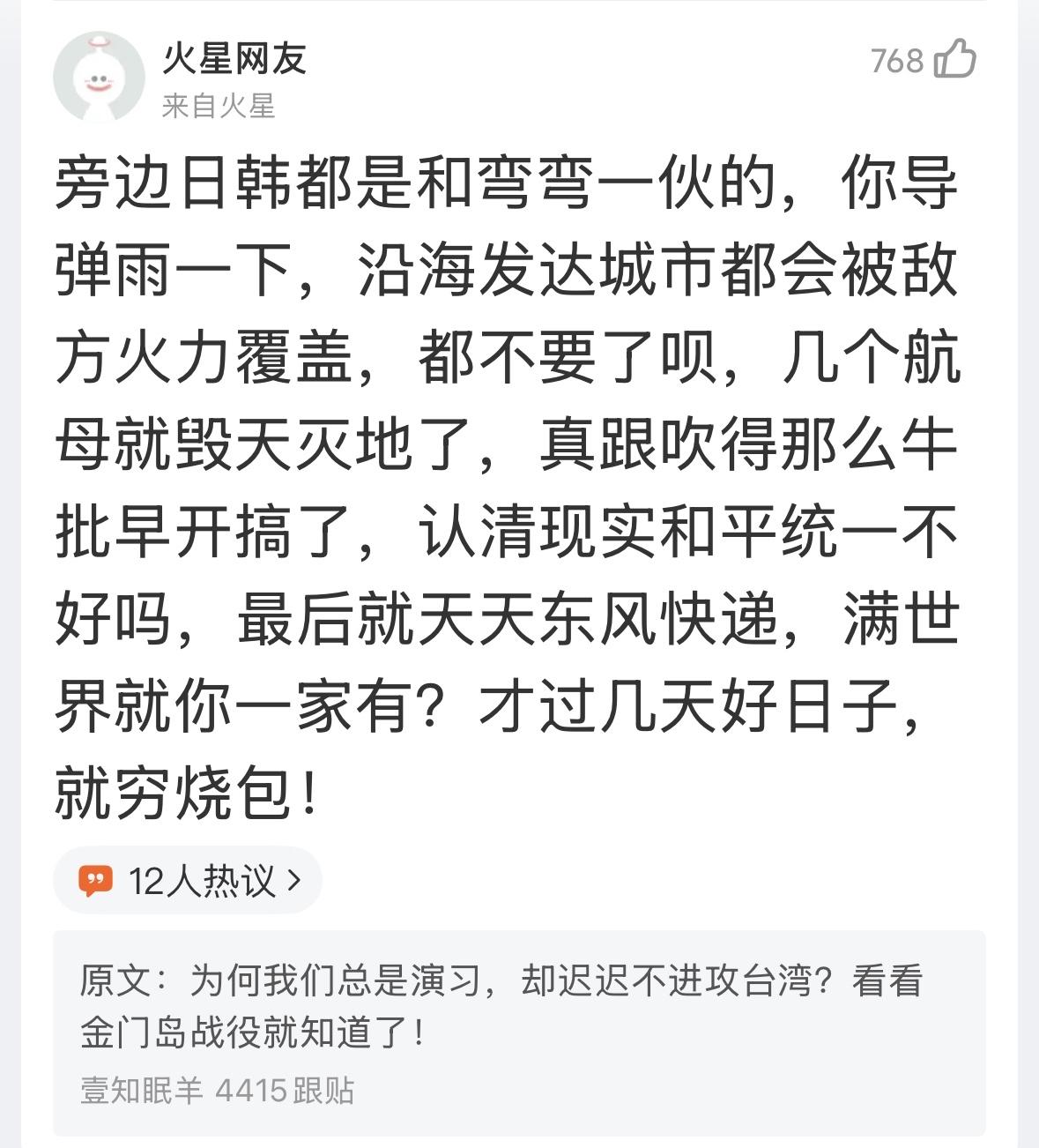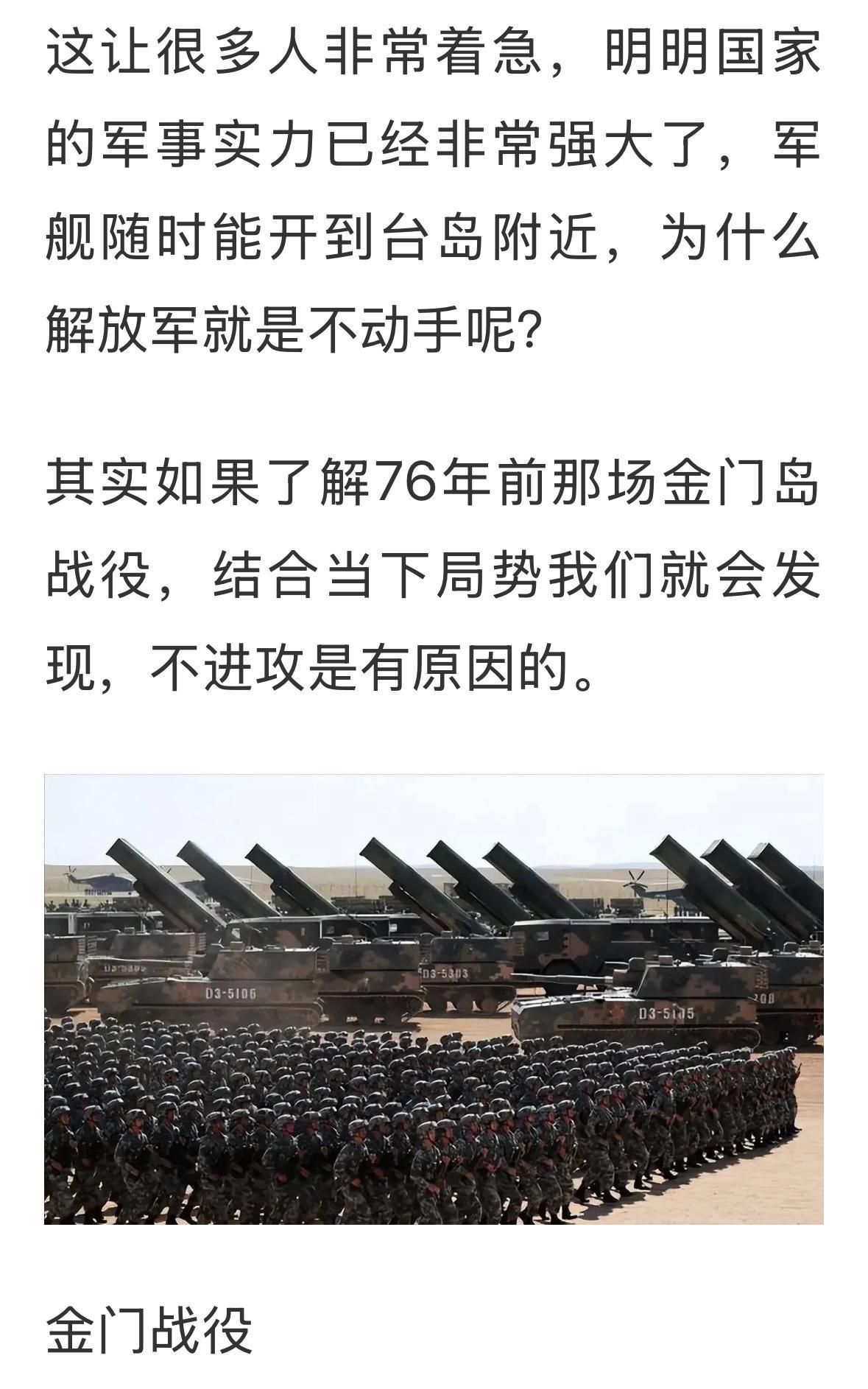 金灿荣说,几分钟就拿下来了,肯定没那么简单,这两个人说的困难太大也不对。根本原因是,我们有一个“反分裂国家法”,划有红线,如果“台独分子”越过红线,那就动手了。解放军在台湾岛周边军事演训和实弹射击