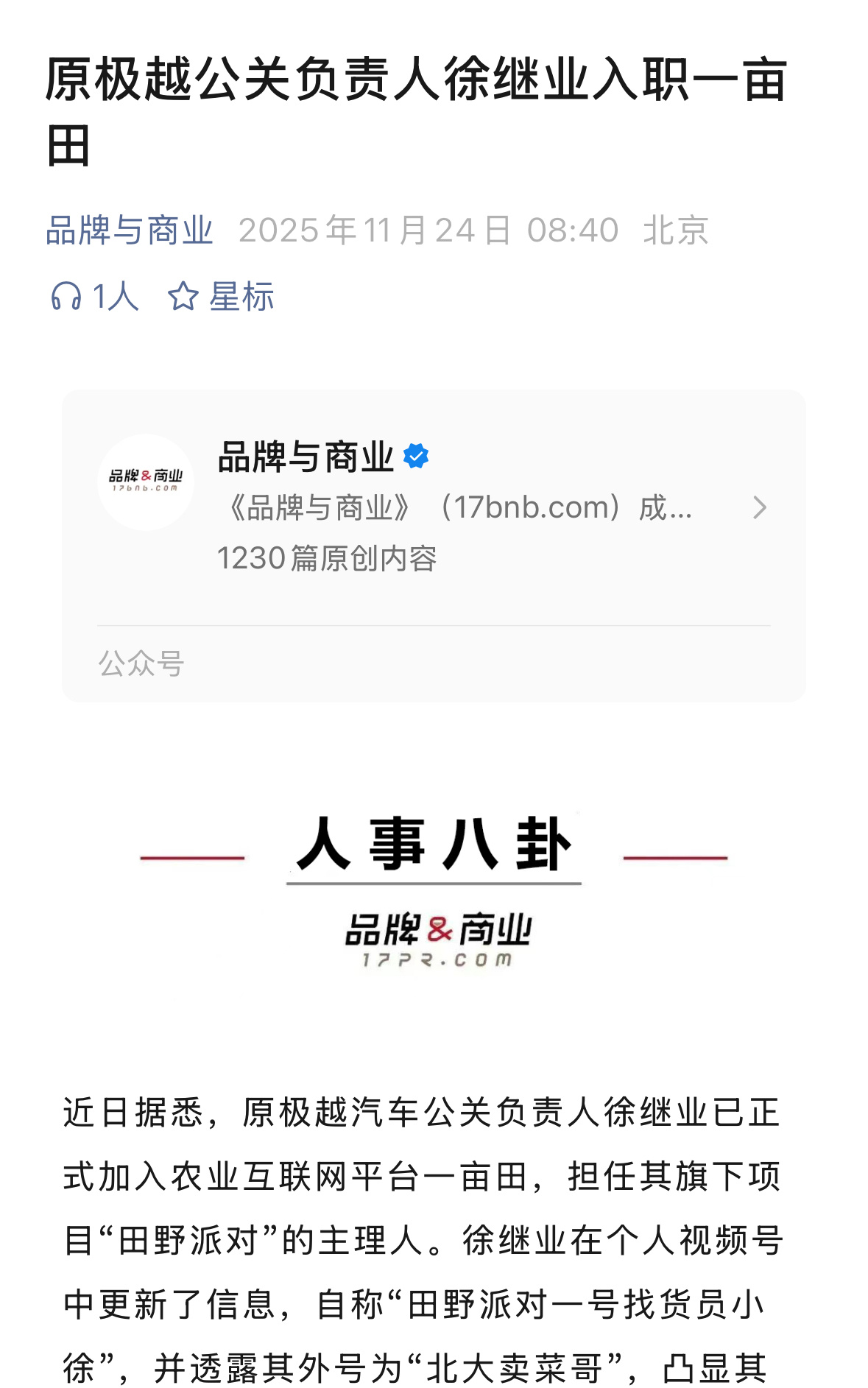 这位大哥又有新的工作了。转眼间不仅这位大哥离职很久,连极越好像也消失了很长时间了