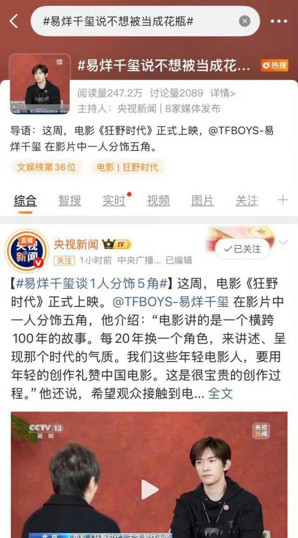 于适、易烊千玺都说过不希望被观众当做花瓶。