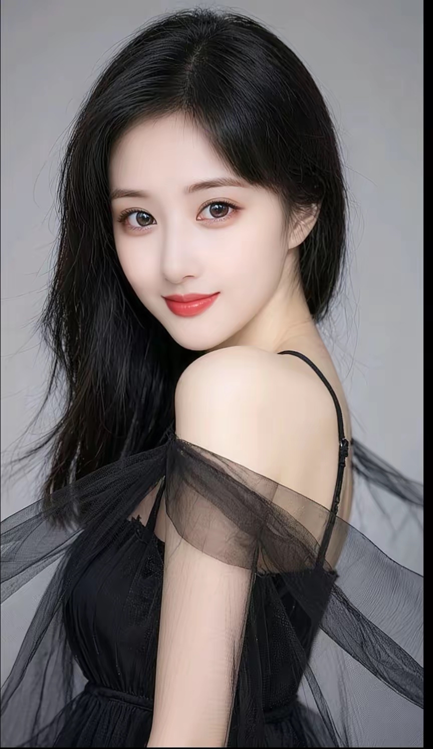 优雅黑裙,精致妆容,沉静气质,都市女性风范。