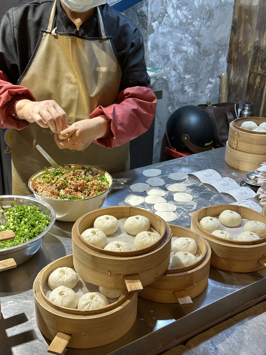 杭州街边的一家小店,很有烟火气,阿姨说她包了一辈子的小笼包了……
