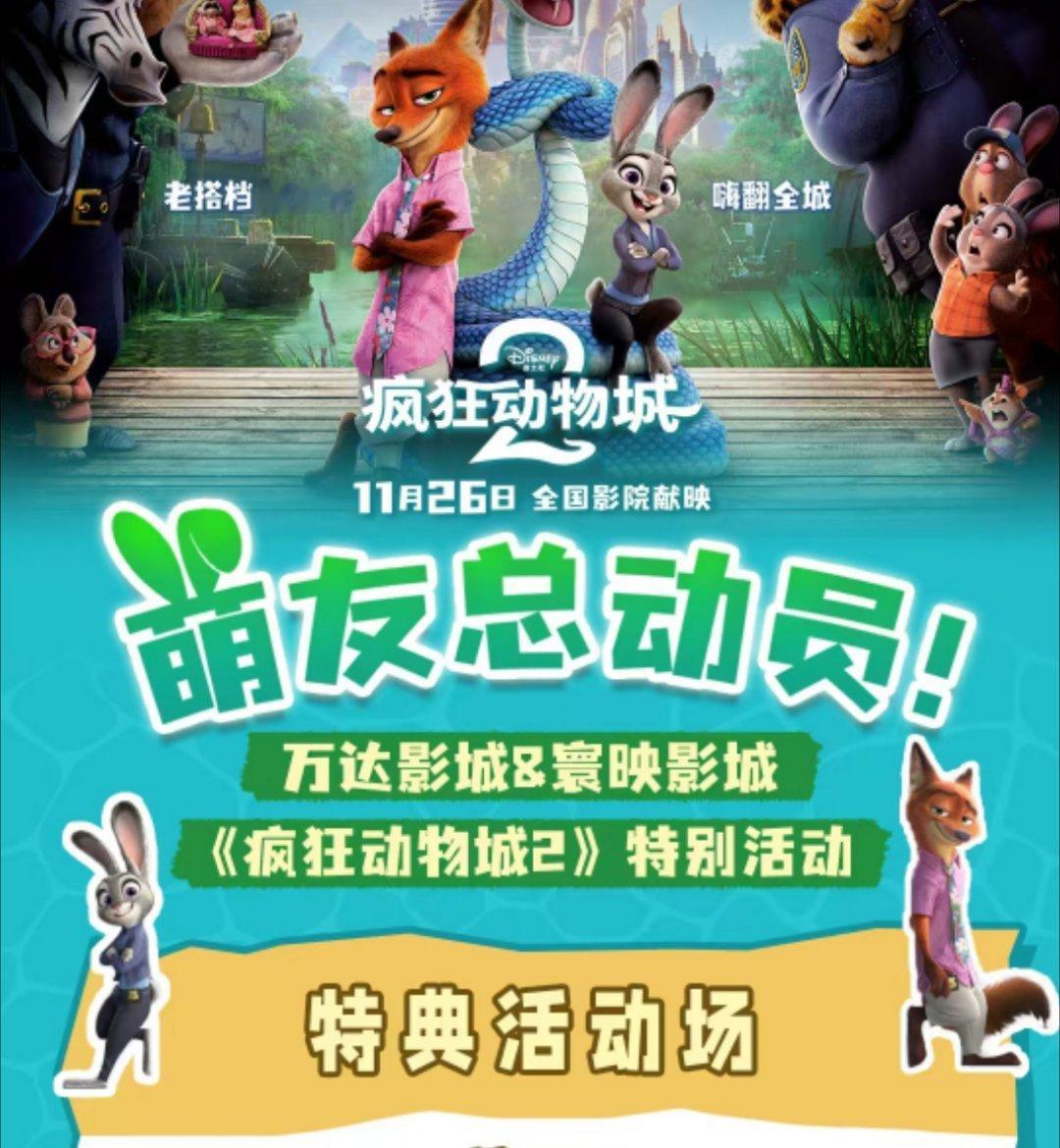 时隔多年,动物城天团强势回归!来万达影城赴《疯狂动物城2》之约,朱迪的勇敢、尼克的狡黠,还有熟悉的热血与治愈,一秒拉回那段充满欢笑与感动的时光。超大银幕沉浸式解锁全新冒险,和喜欢的角色并肩同行,这场奔赴,值得所有期待~