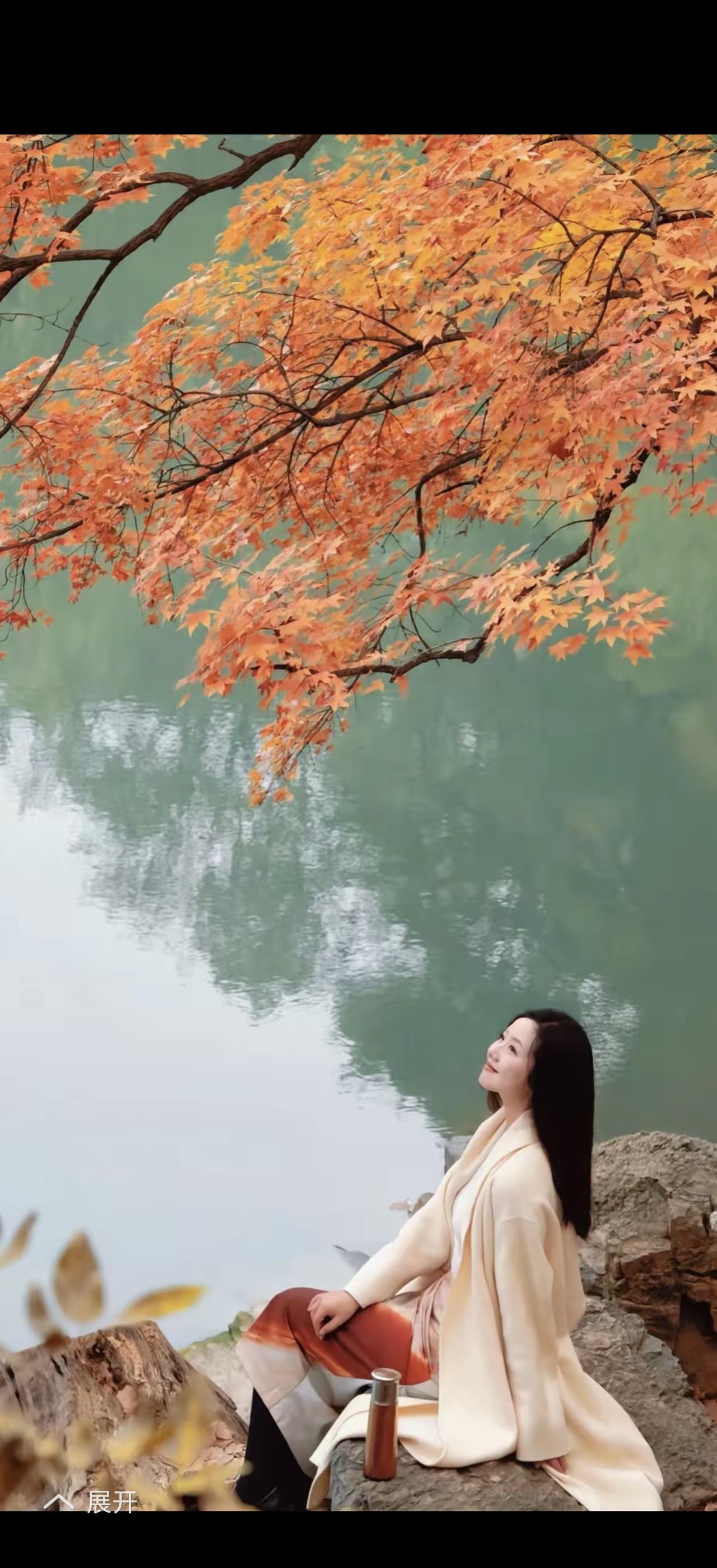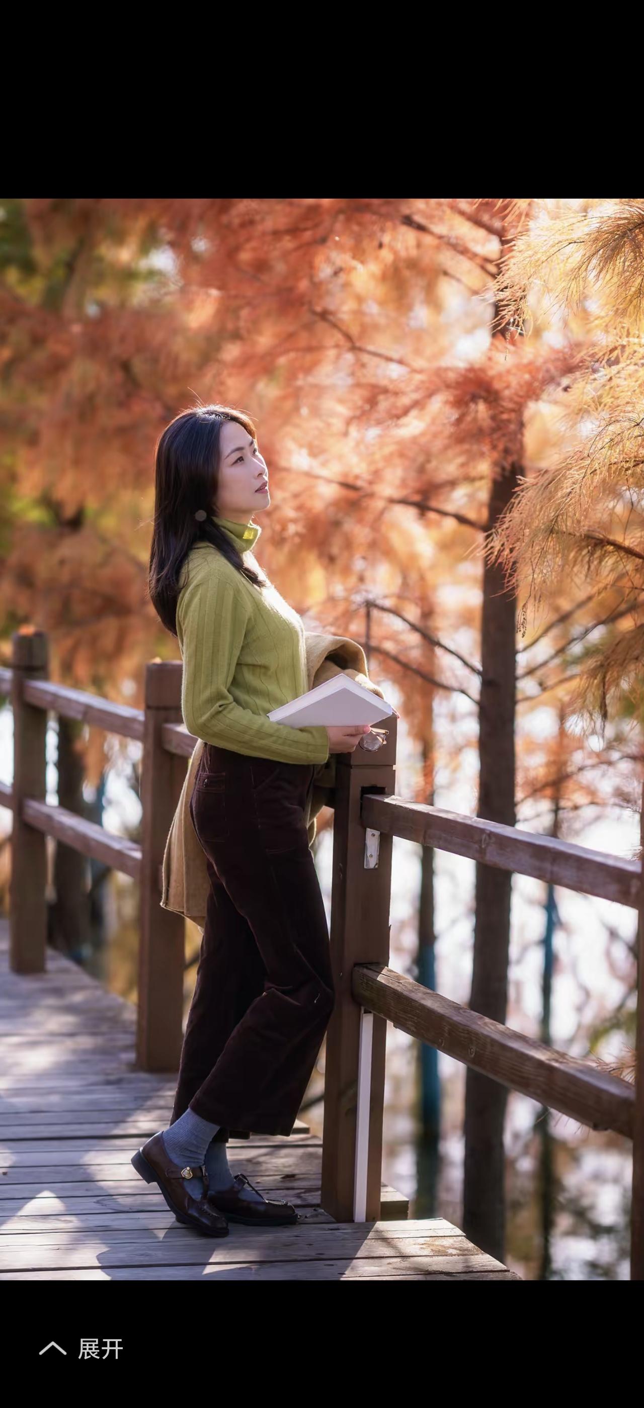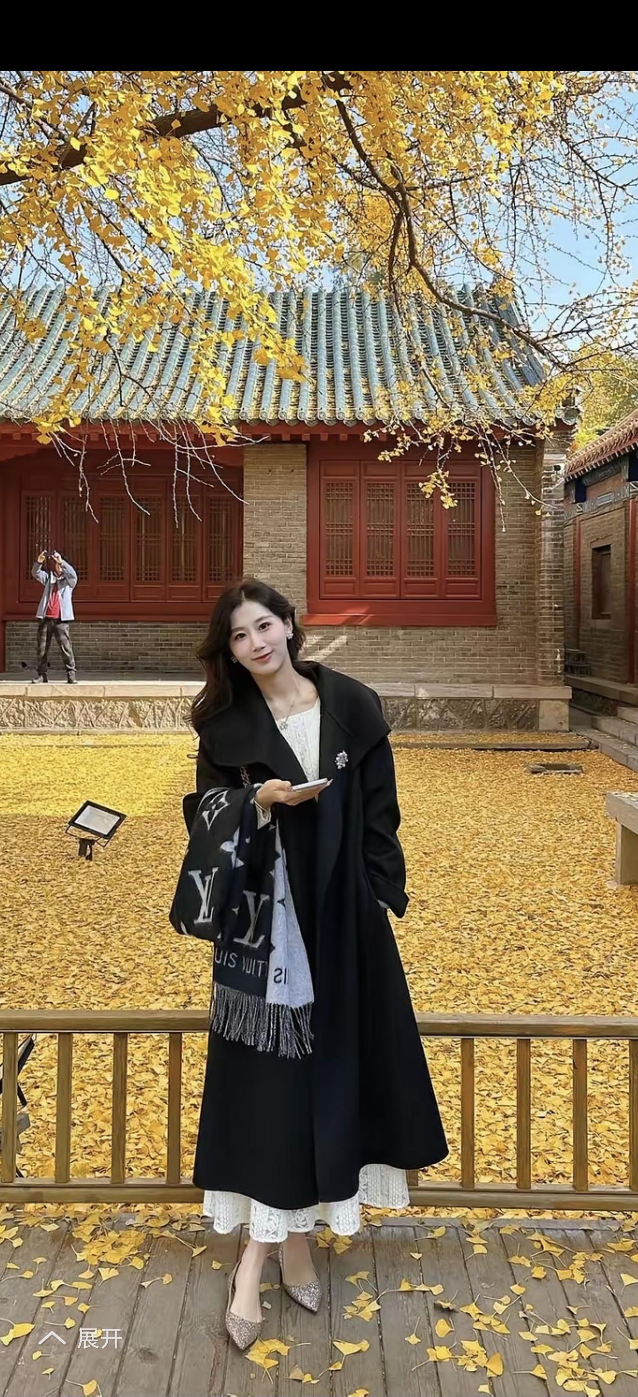 秋日暖阳下,格子围巾与棕色裙摆的完美搭配,尽显优雅与温暖。