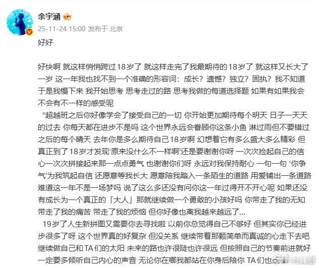 刚逐字看完生日长文,从青涩到闪耀,他一直用温柔传递力量,新一岁也要继续做发光发