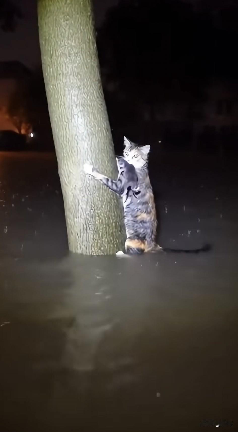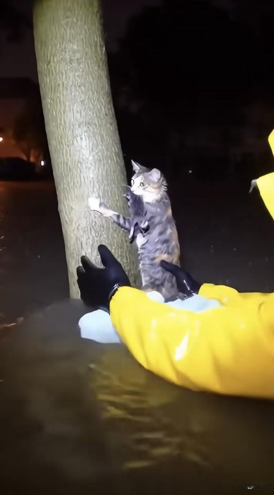 泪目了!一座城市发生了特大洪灾,凶猛的洪水淹没了许多街道和房屋。一只可怜的流浪猫妈妈的也被淹了,它只好拼命叼着它的猫宝宝爬到一棵树上面,这才没有被洪水冲走。 而时间一长加上雨水的袭击,它已经筋疲力尽了,随时都有可能滑落到水里,就在这千钧一发之际,一艘救援艇出现在它们面前,一位小哥哥和小姐姐把它们抱上了船,小姐姐还贴心的给猫宝宝冲了奶粉喂它吃,之后他们还收养了这对猫咪母子,相信在他们的照顾下,它们也会越来越好的。