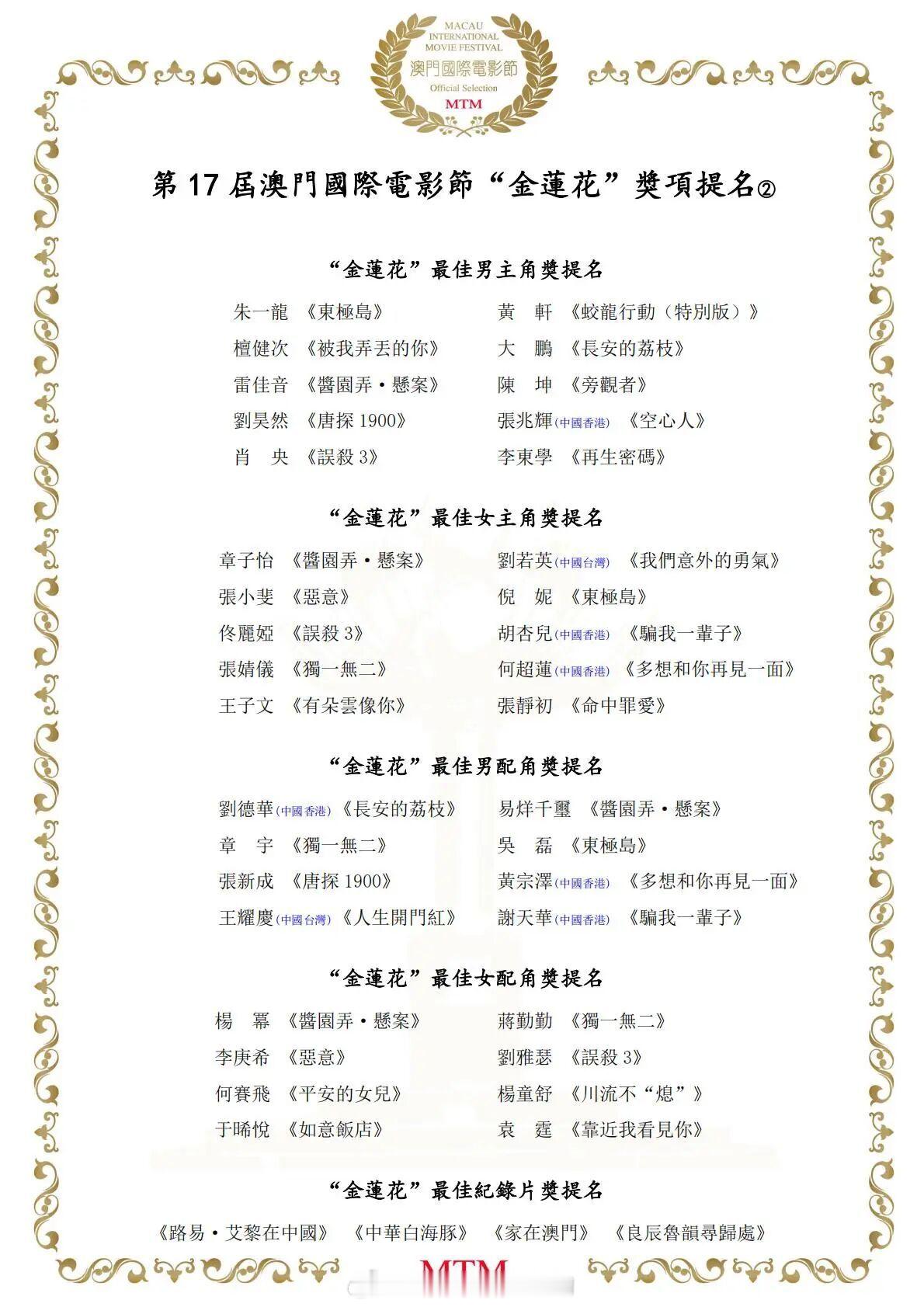 第17届澳门国际电影节“金莲花”奖项提名檀健次《被我弄丢的你》获得“金莲花”最佳男主角提名!