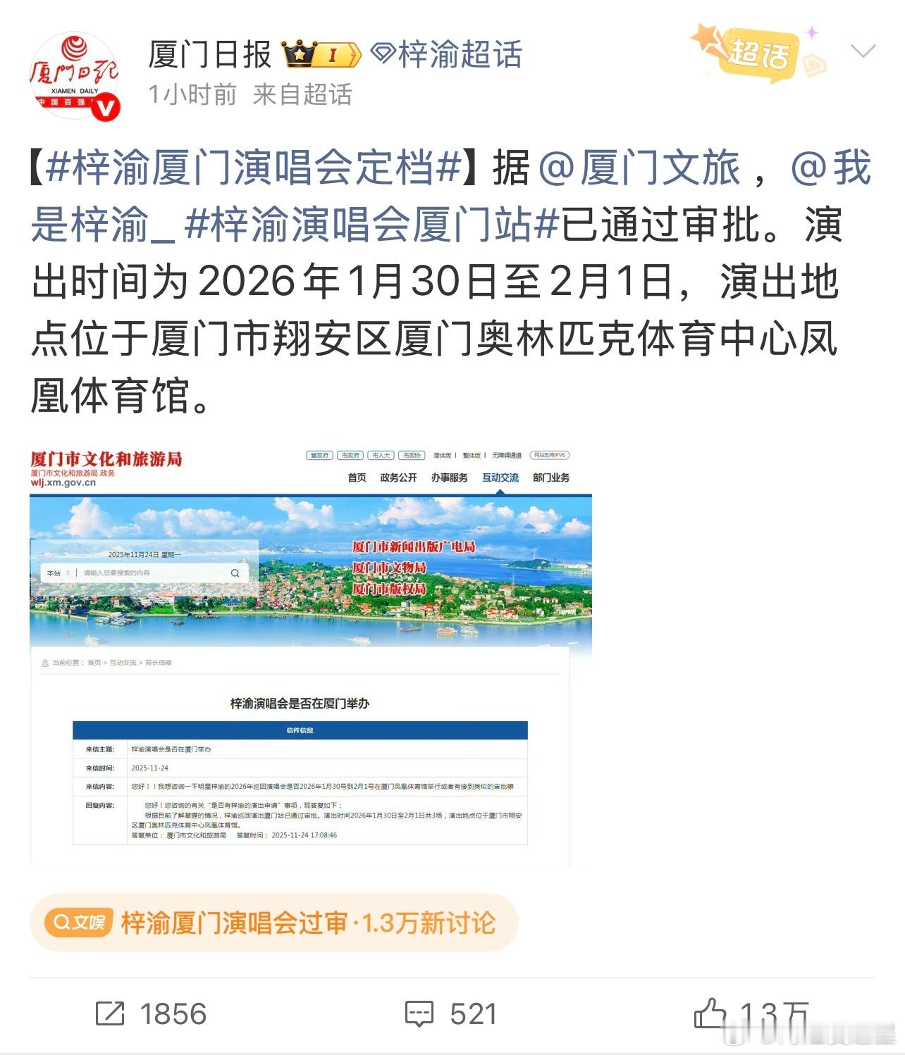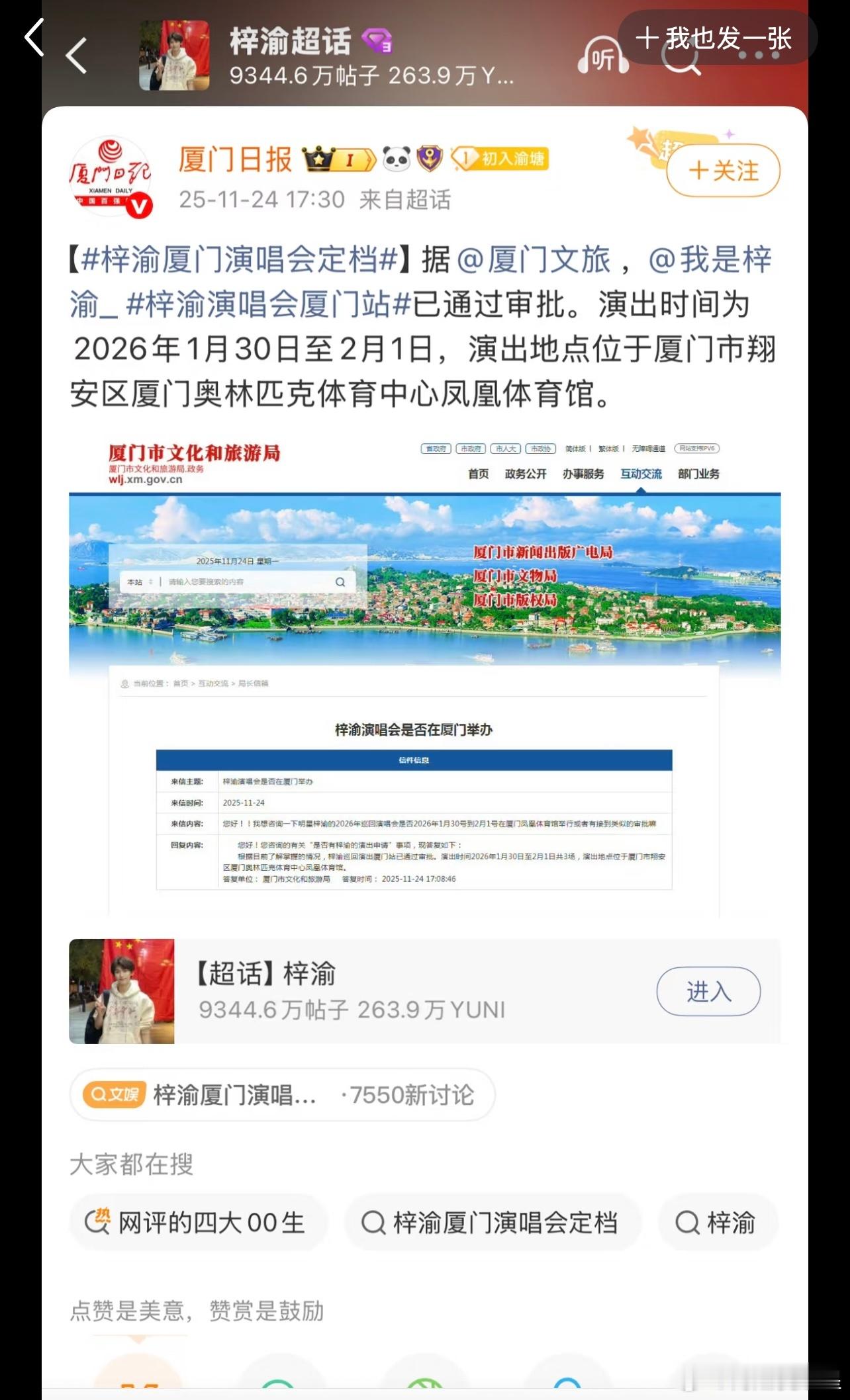 厦门日报偷偷藏不住,跑到梓渝超话来宣布好消息