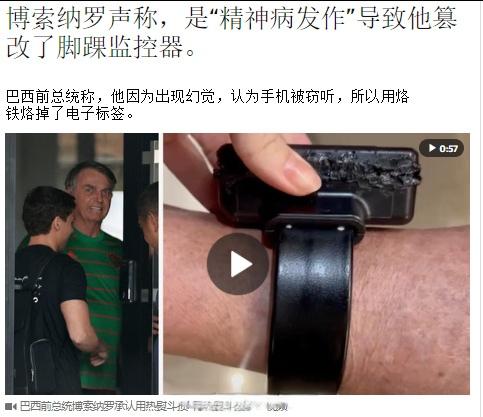被拘捕的巴西前总统雅伊尔·博索纳罗试图使用烙铁暴力破坏电子脚踝监控器,他自己说是吸毒过量后产生幻觉,这是在“精神狂躁”的状态下不受控制的行为,不过媒体怀疑这家伙可能是试图出逃未果。
