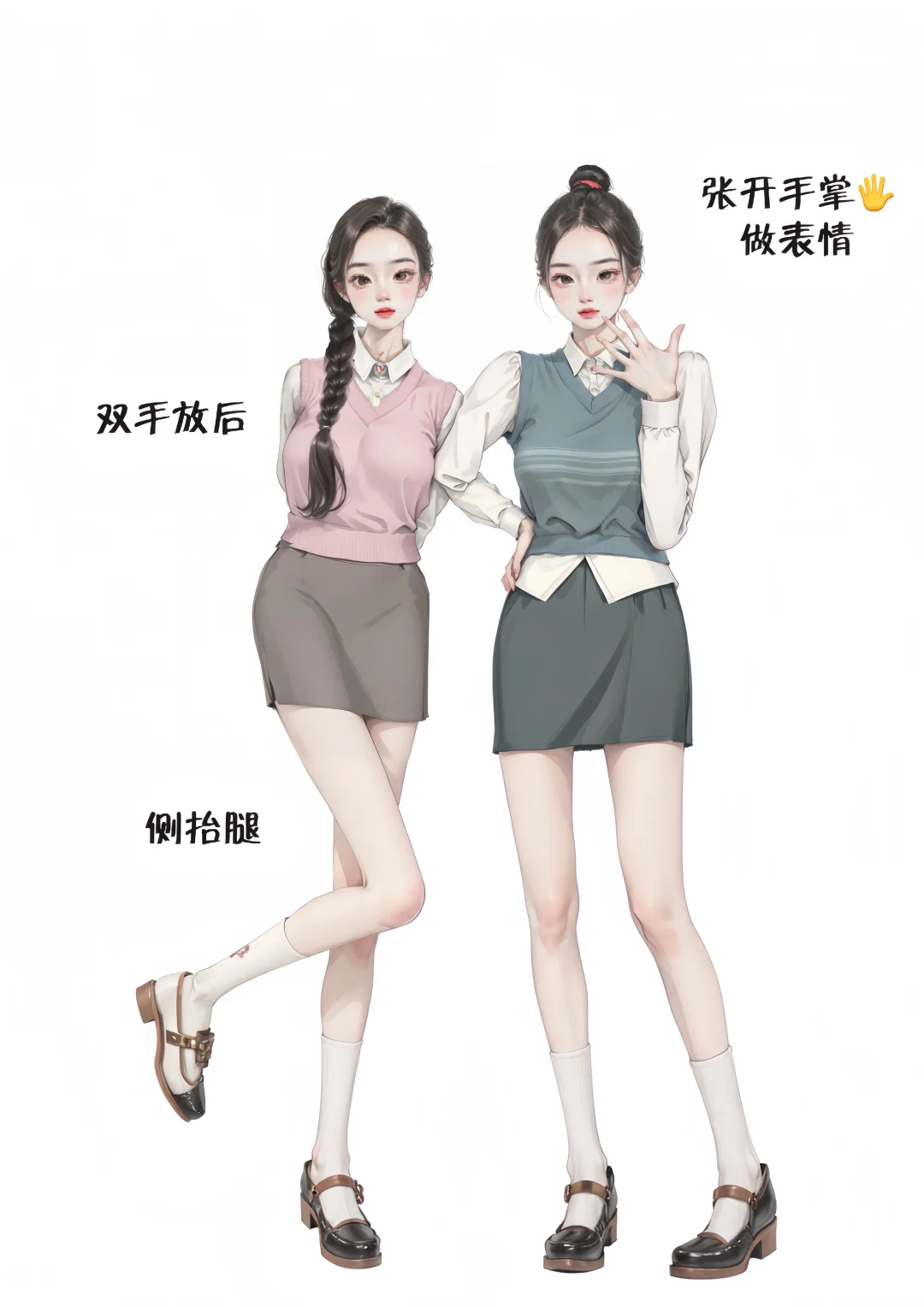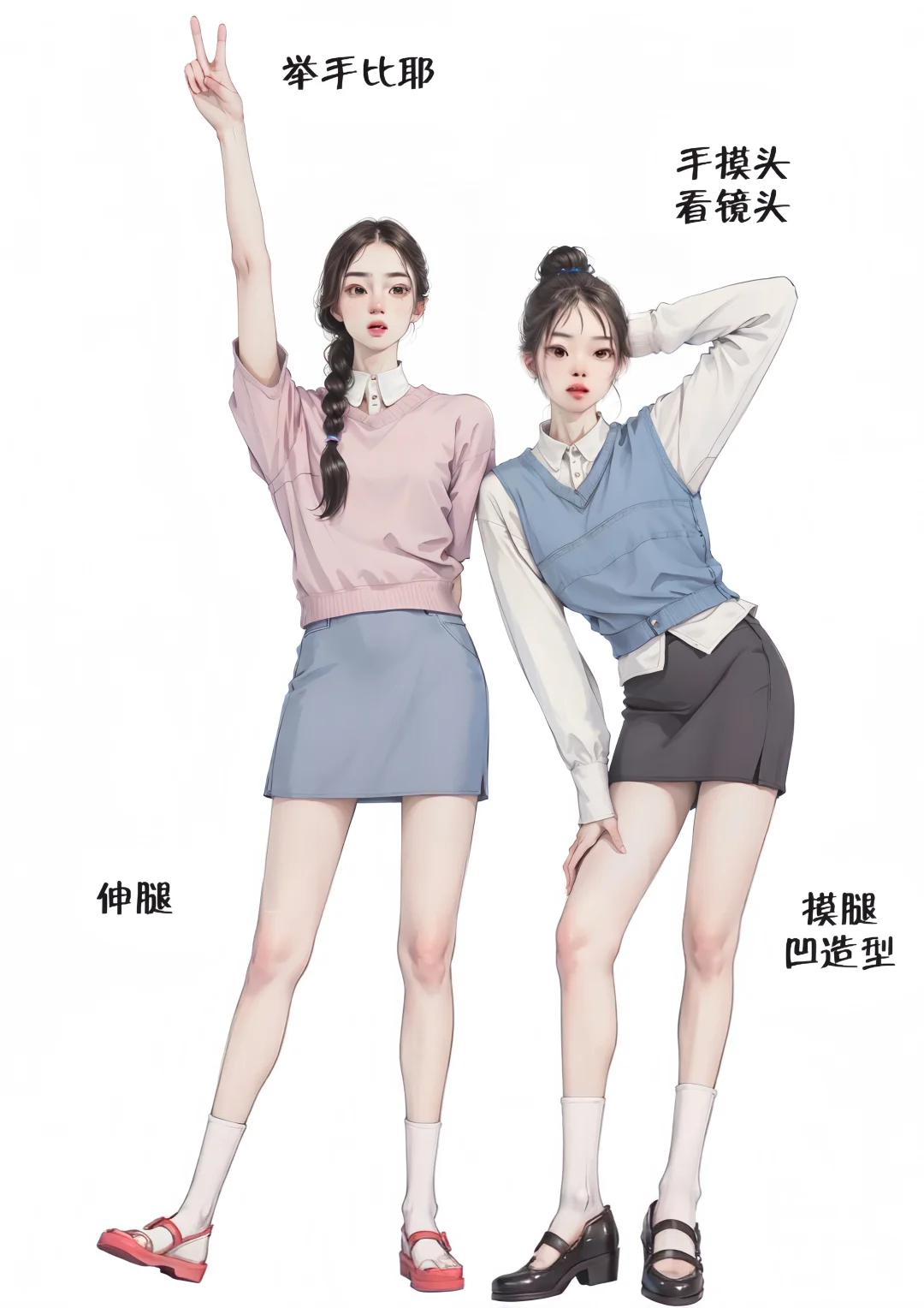 女明星感站姿拍照巨显腿长|姐妹双人合照