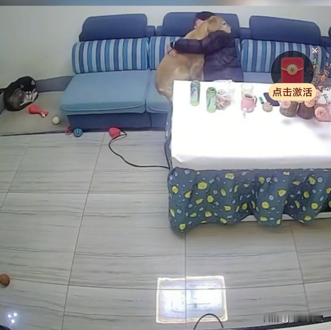 主人下班归来,悲从中来,不禁大哭起来。狗狗见状,赶忙上前,用身躯紧紧拥抱着主人,给予他温暖的慰藉。它的前脚在主人的背后轻轻而又不停地拍着,宛如抱着一个三岁的孩童,仿佛在轻声呢喃:“别哭,主人,有我在,我会永远陪着你。”随后,一人一狗便在沙发上沉沉睡去。小狗治愈 小狗欲哭无泪